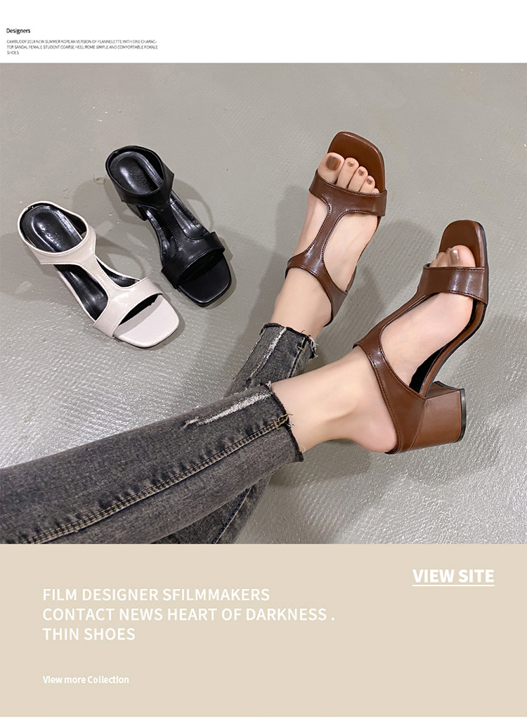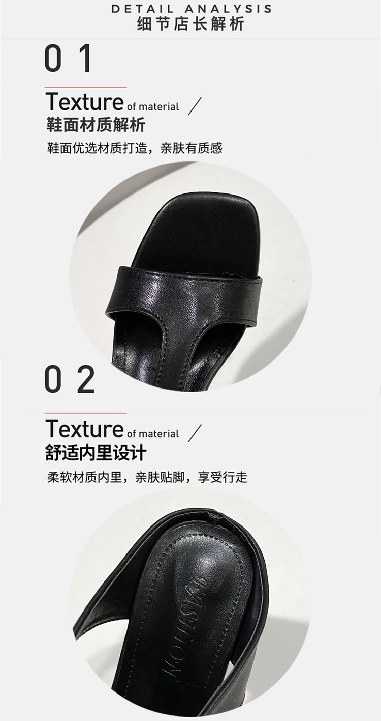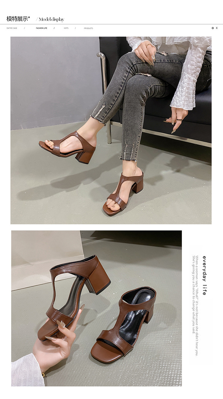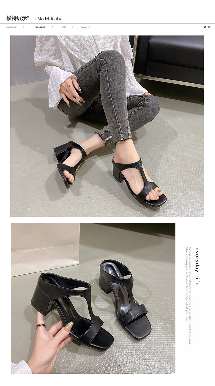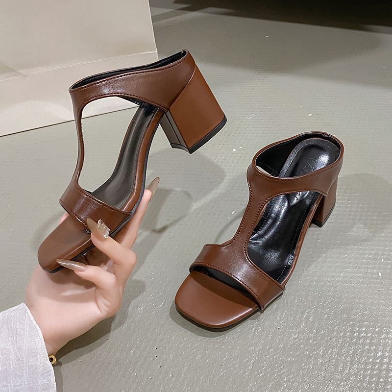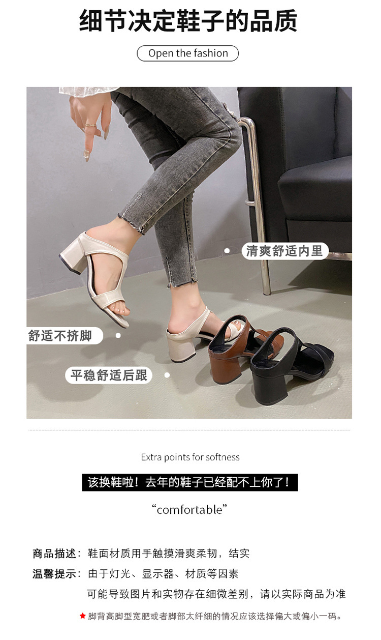 2024 여름 새로운 두툼한 힐 슬리퍼 여성 사각 발가락 샌들 대외 무역 플러스 사이즈 하이힐 도매스토어 가기