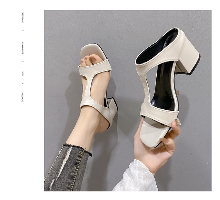 2024 여름 새로운 두툼한 힐 슬리퍼 여성 사각 발가락 샌들 대외 무역 플러스 사이즈 하이힐 도매