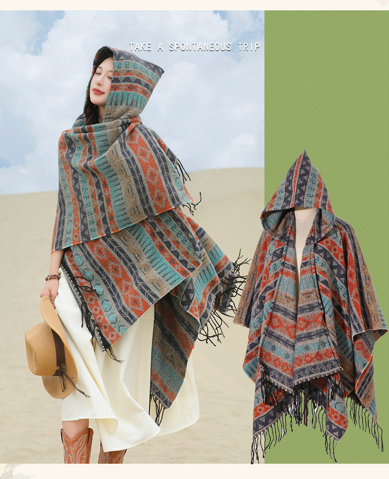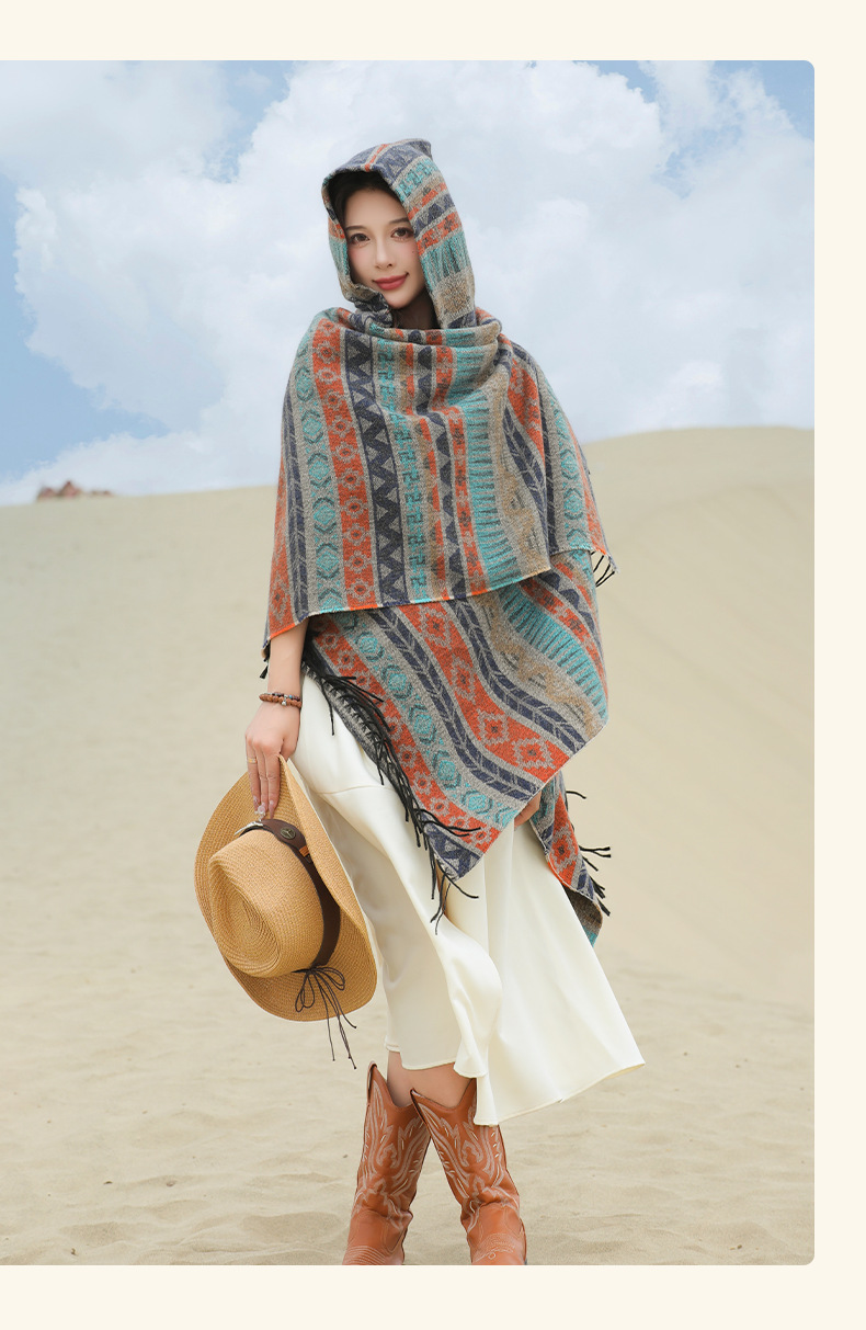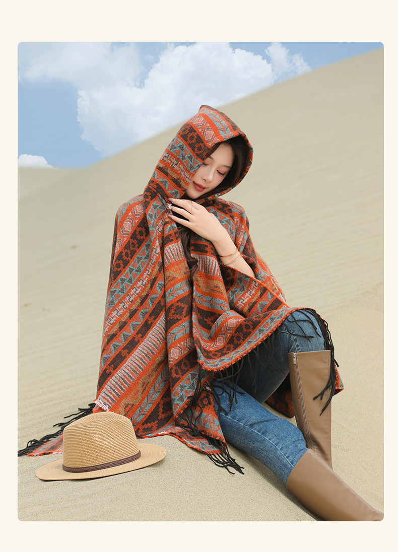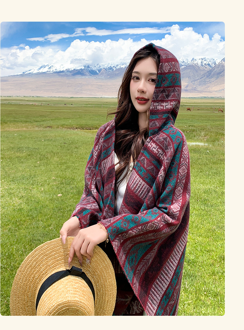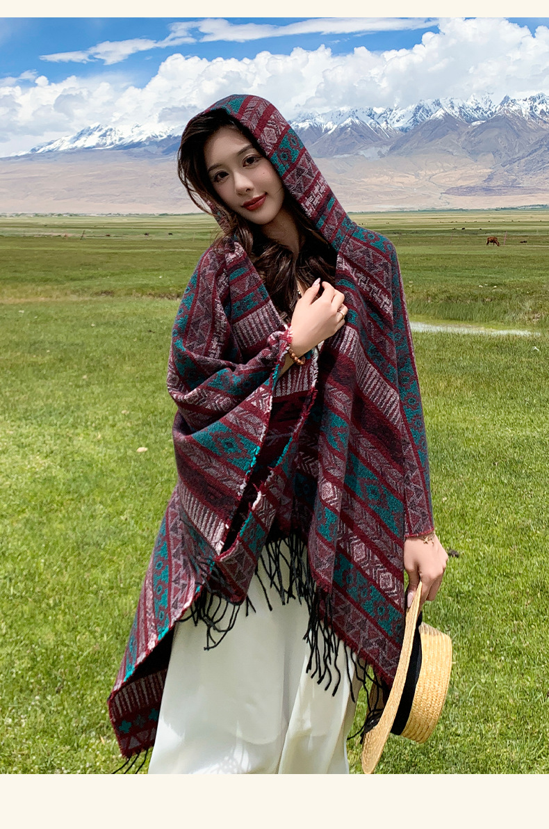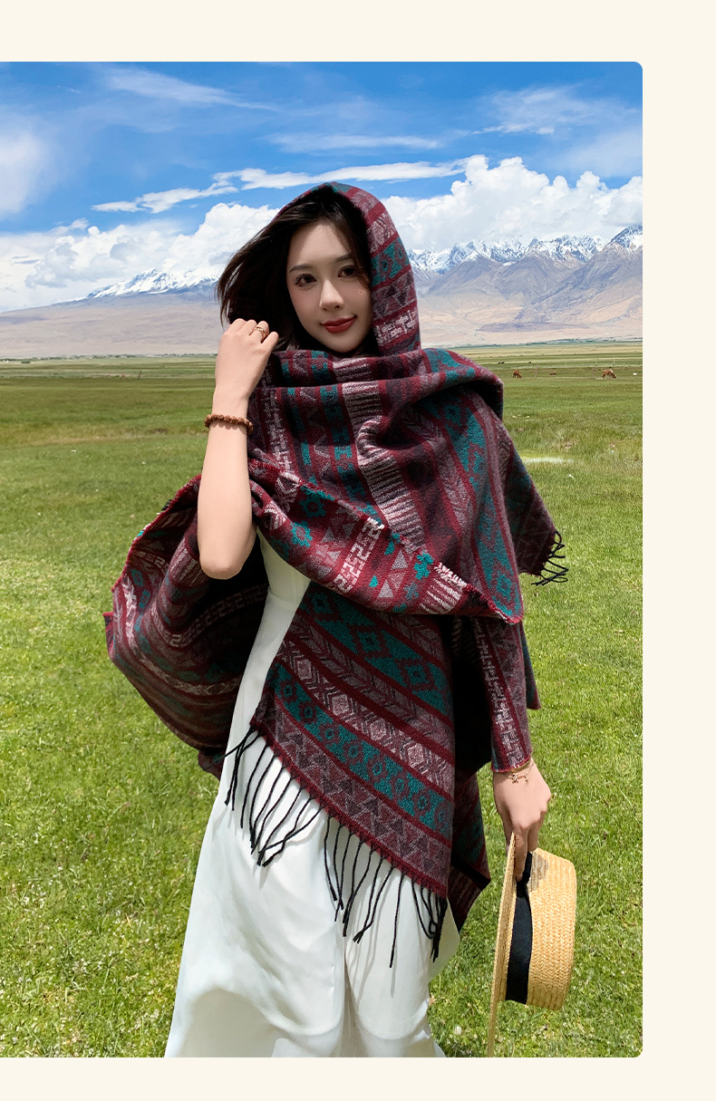 빈티지 민족 스타일 스카프 여성 노스 웨스트 여행복 겨울 두꺼운 따뜻한 목 담요 케이프 목도리 착용스토어 가기