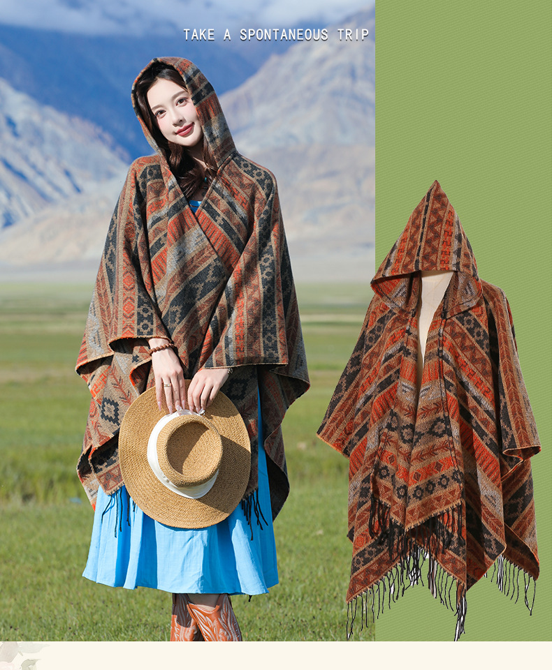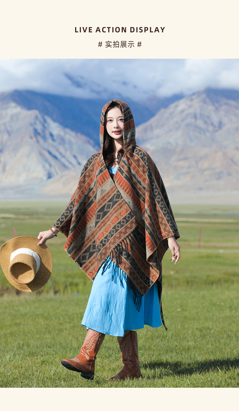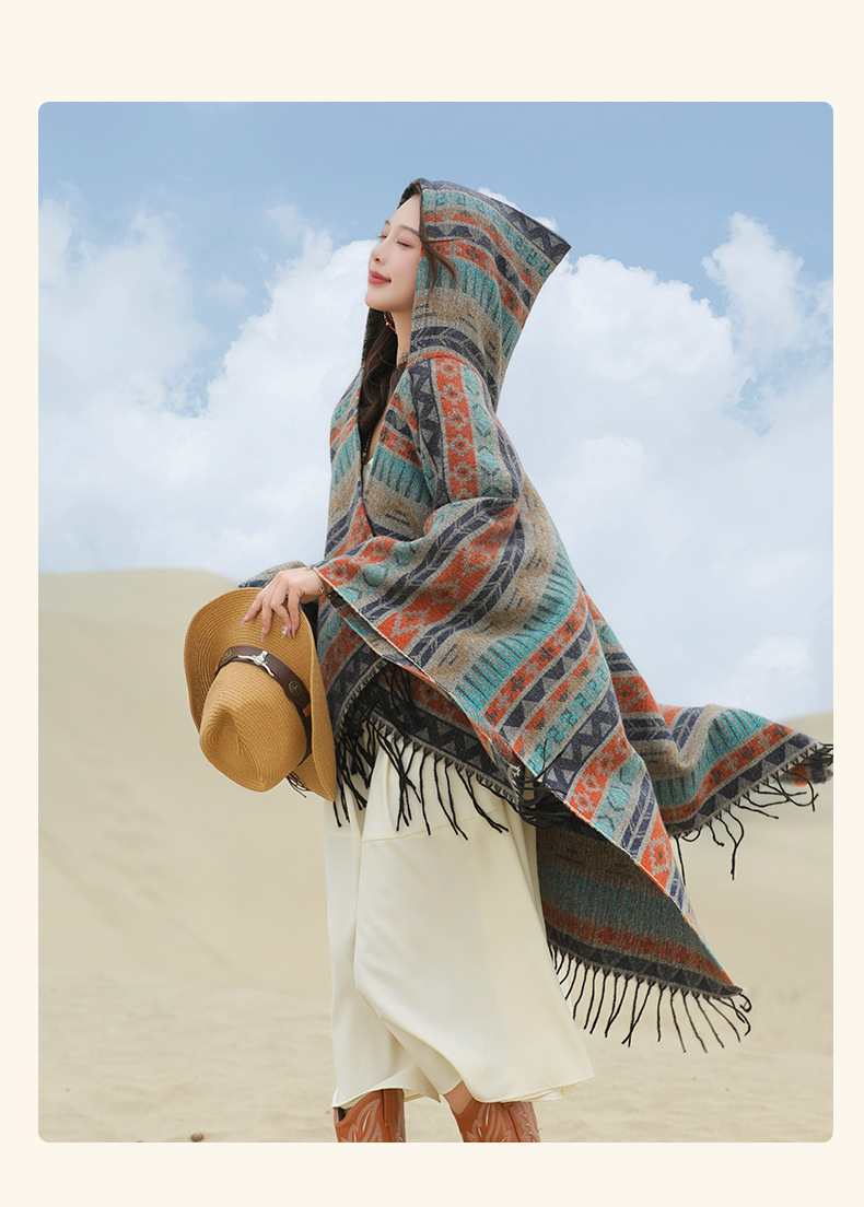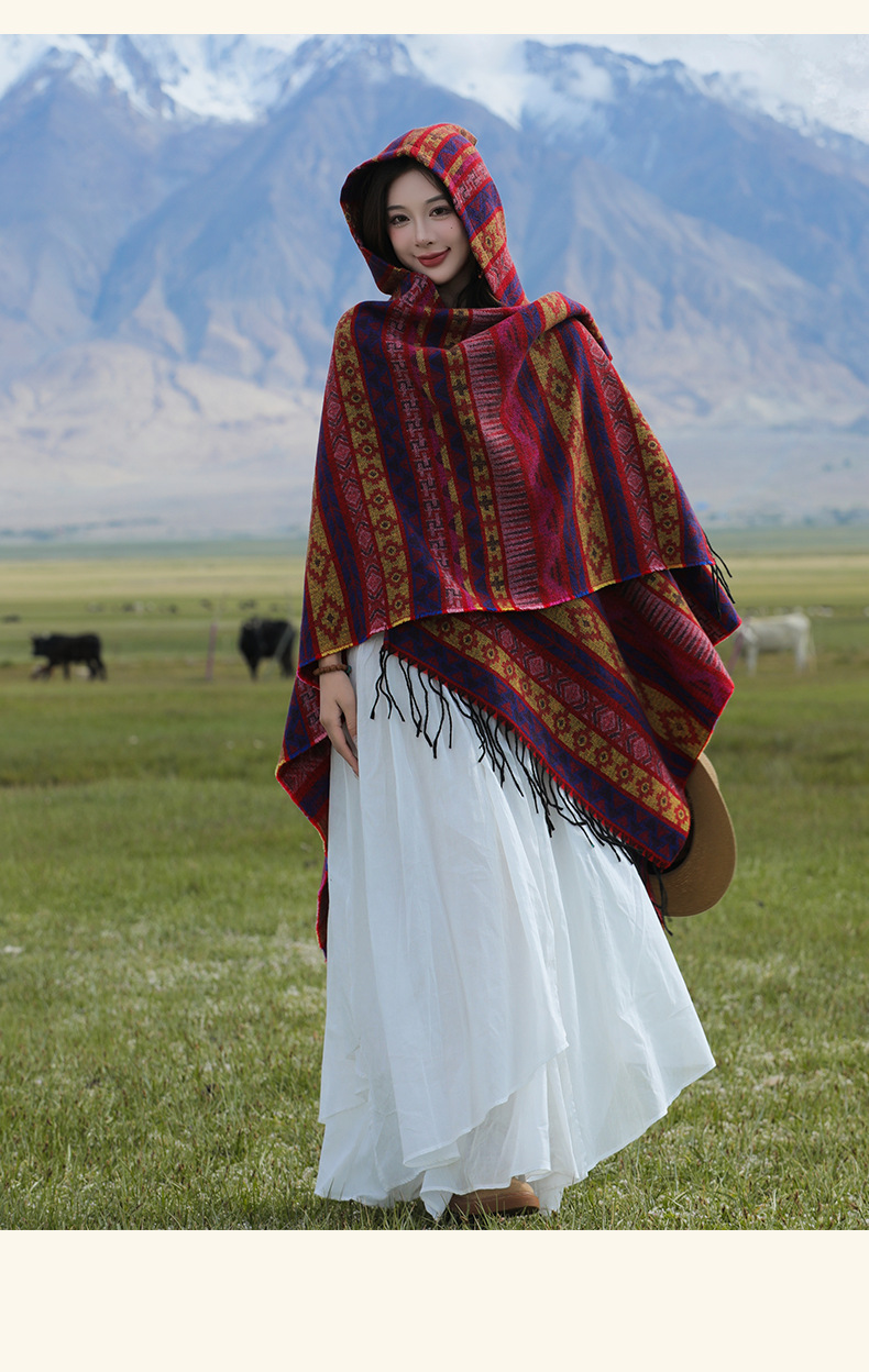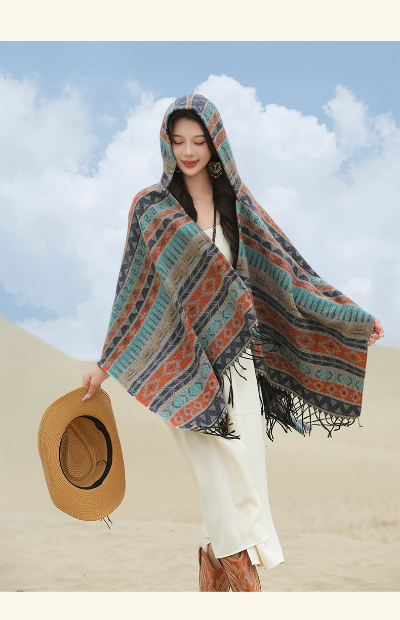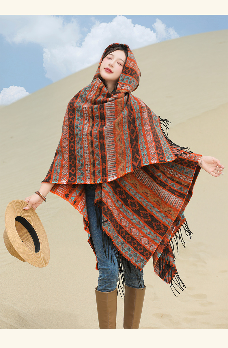 빈티지 민족 스타일 스카프 여성 노스 웨스트 여행복 겨울 두꺼운 따뜻한 목 담요 케이프 목도리 착용스토어 가기