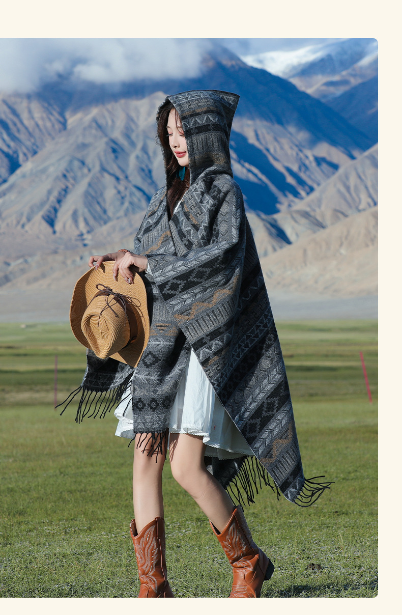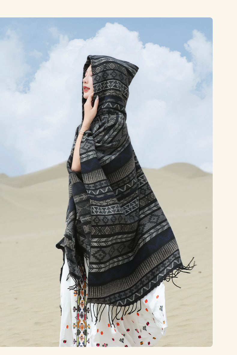 빈티지 민족 스타일 스카프 여성 노스 웨스트 여행복 겨울 두꺼운 따뜻한 목 담요 케이프 목도리 착용