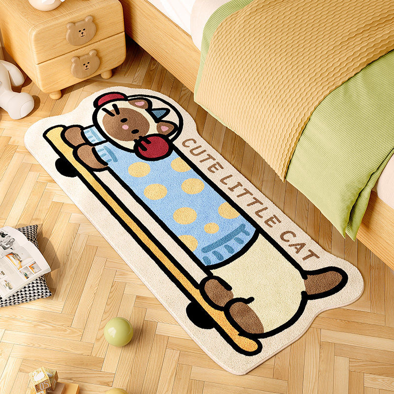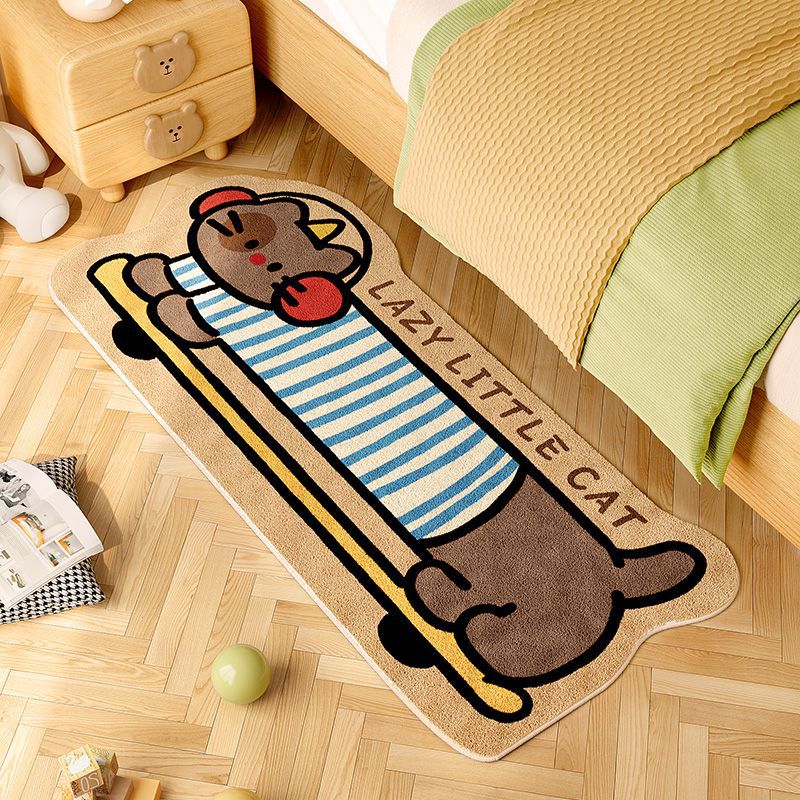 만화 외계인 강아지 캐시미어 침대 옆 카펫 베이 창 패드 편안한 부드러운 튼튼한 거실 카펫 관리