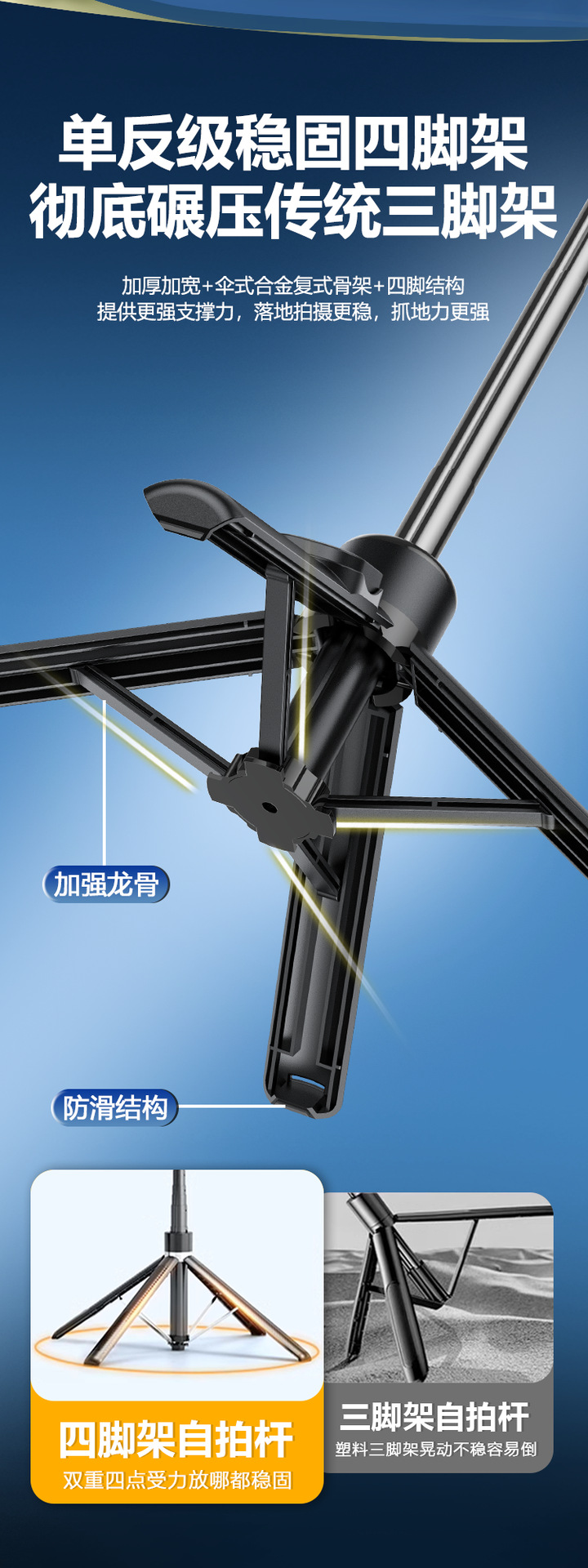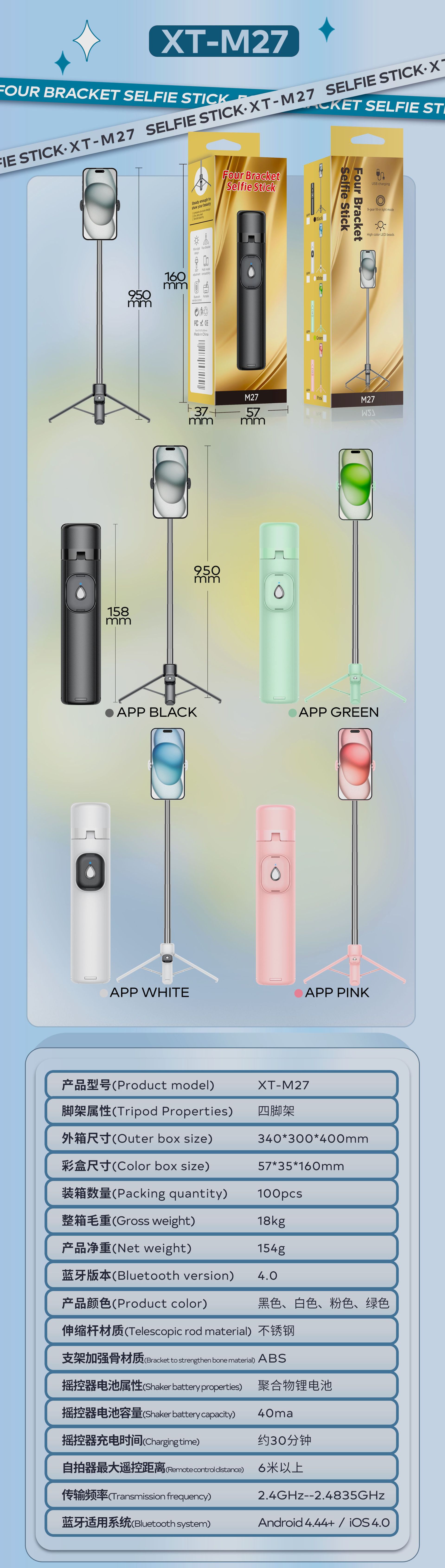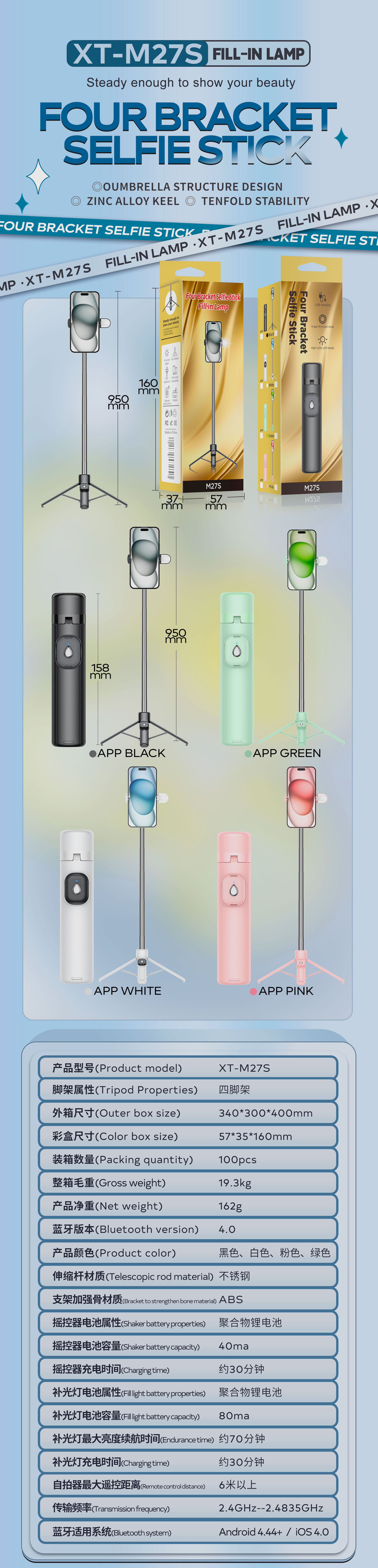 M27 휴대 전화 블루투스 셀카 스틱 4 다리 셀카 스탠드 필 라이트 미니 개폐식 접이식 휴대용 다기능스토어 가기