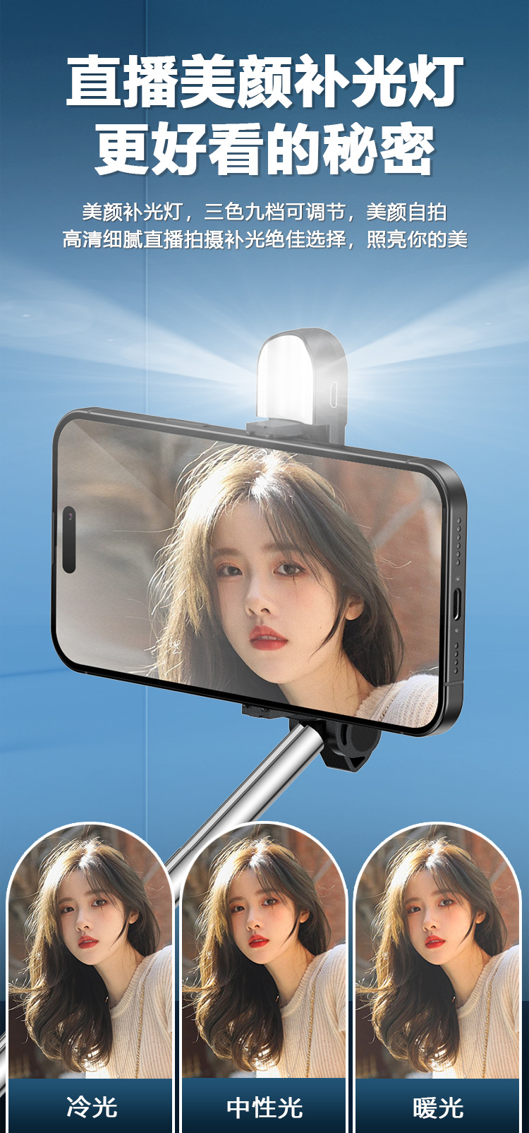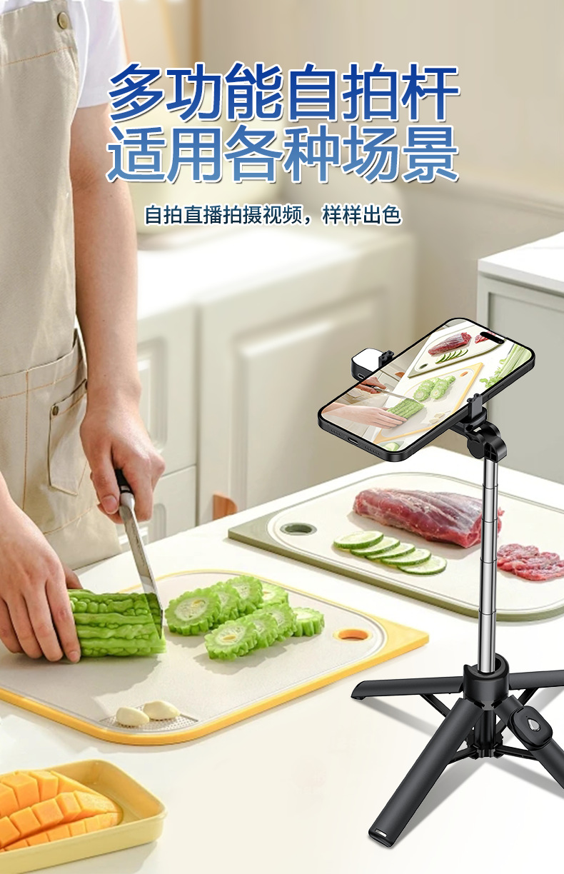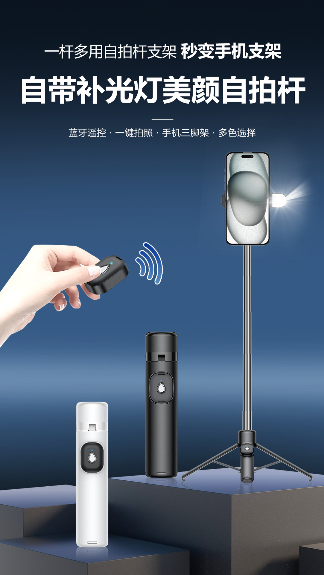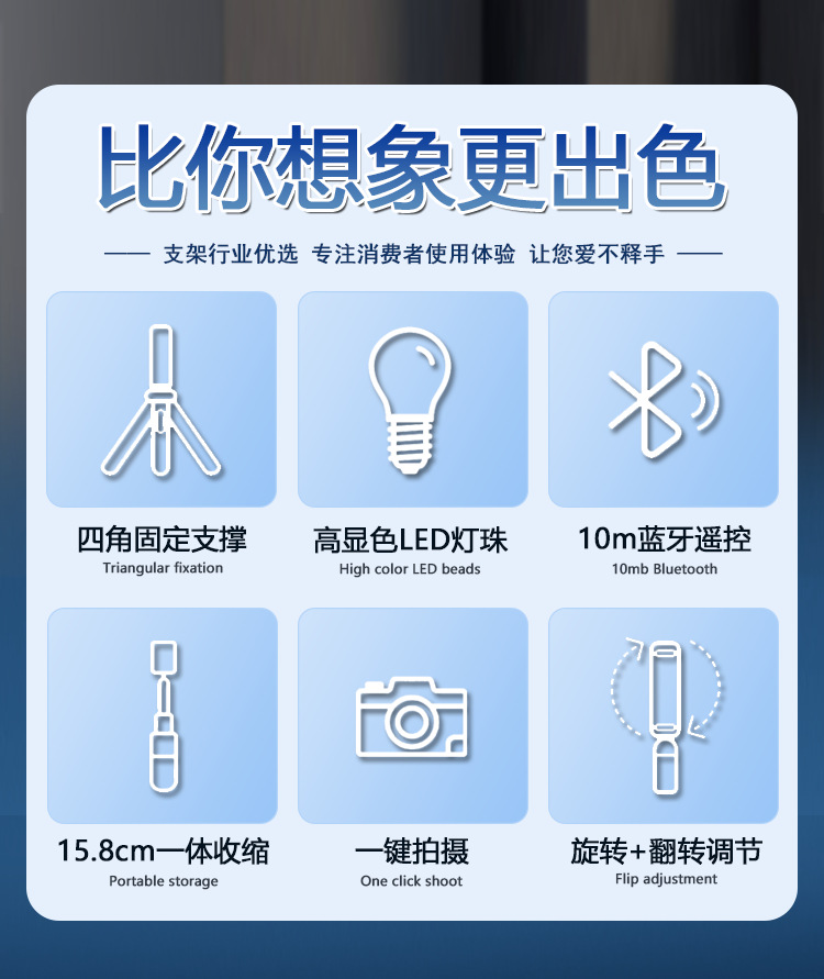 M27 휴대 전화 블루투스 셀카 스틱 4 다리 셀카 스탠드 필 라이트 미니 개폐식 접이식 휴대용 다기능스토어 가기