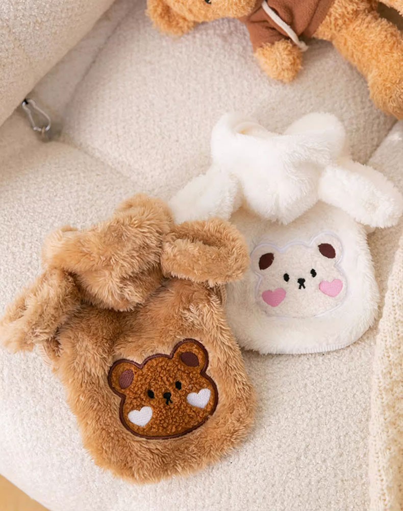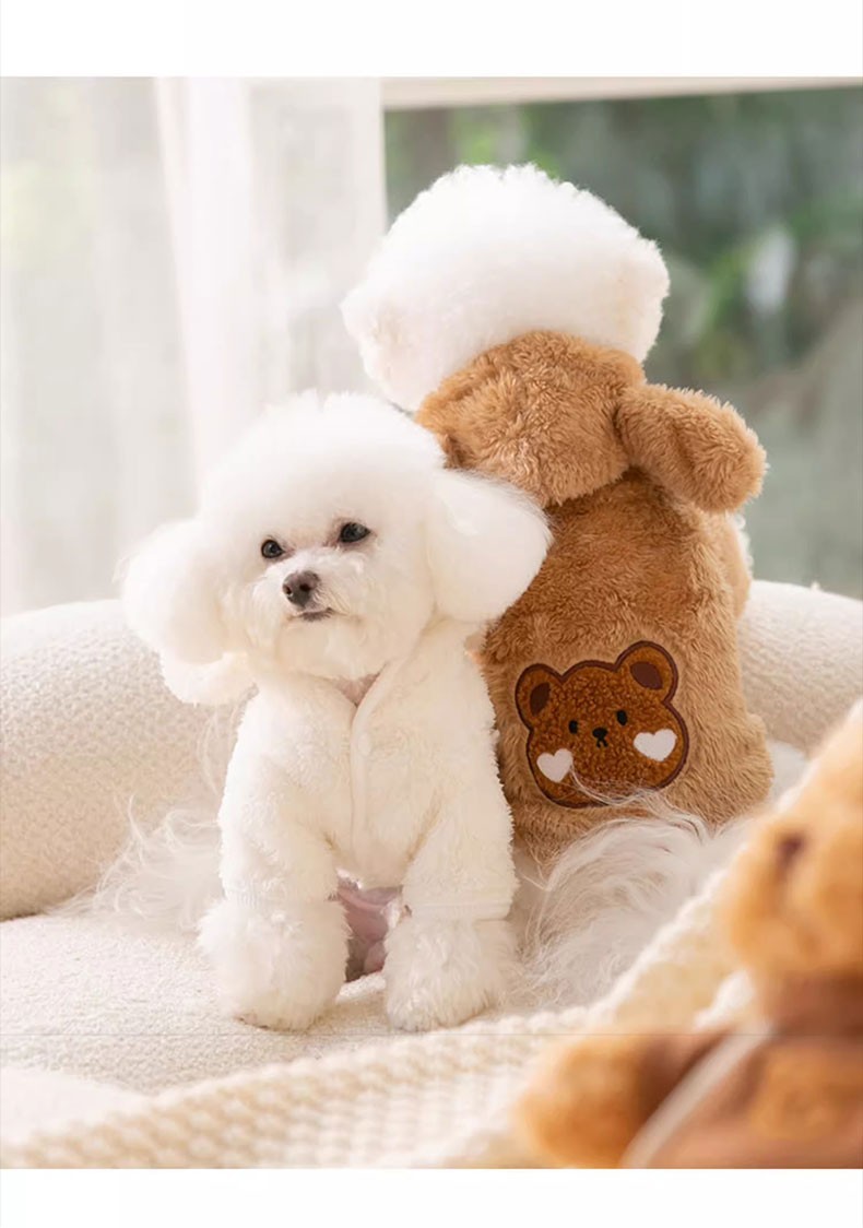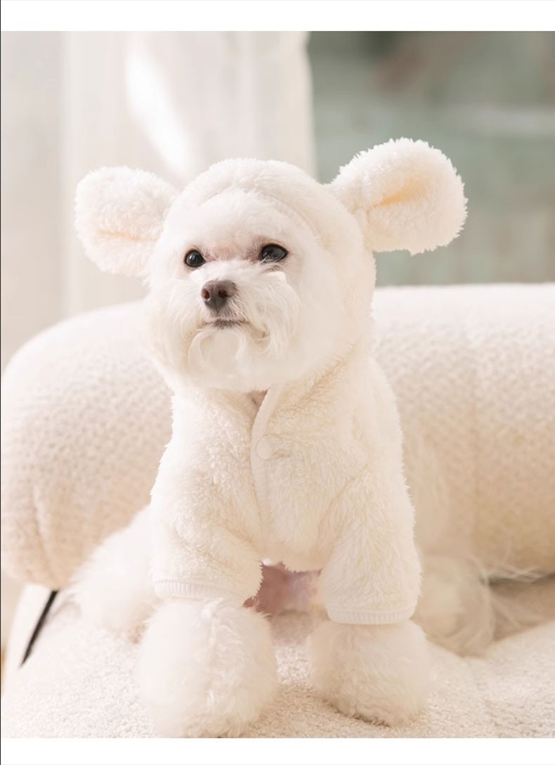 봄과 가을 개 곰 후드 옷 고양이 따뜻한 양털 강아지 미디어와 작은 개 두 다리 옷 애완 동물 옷