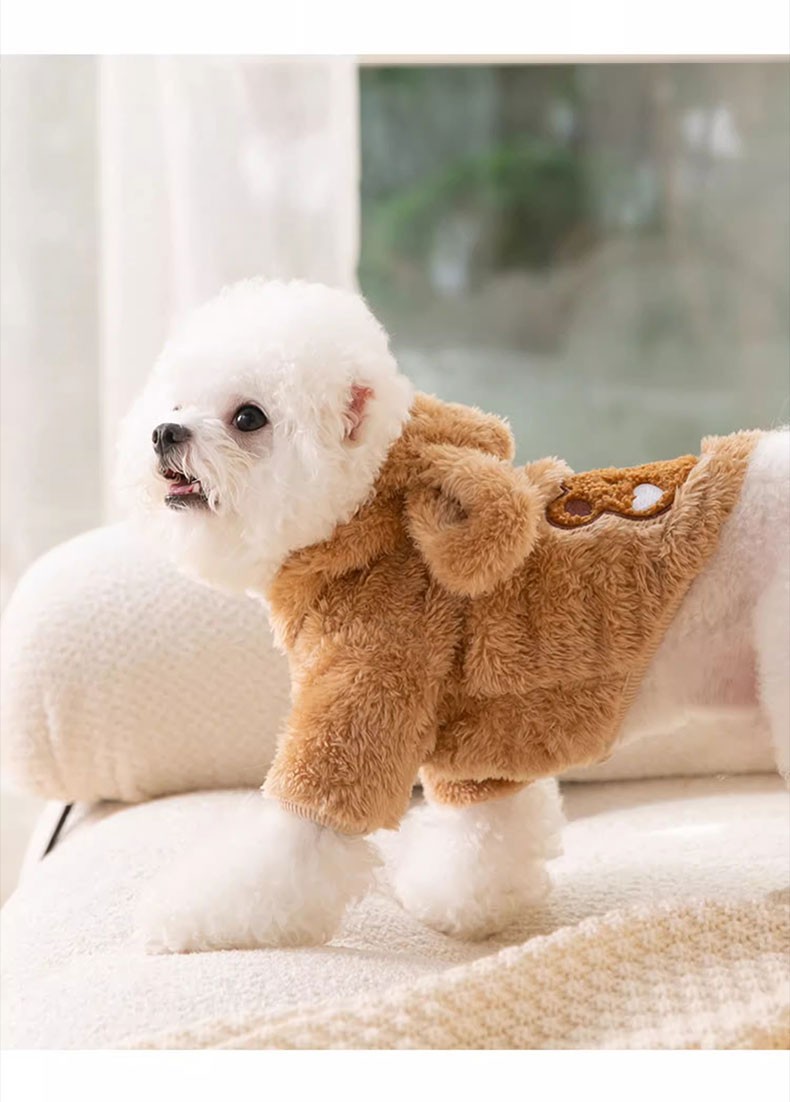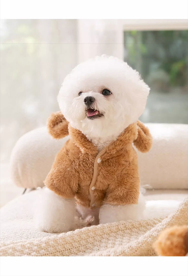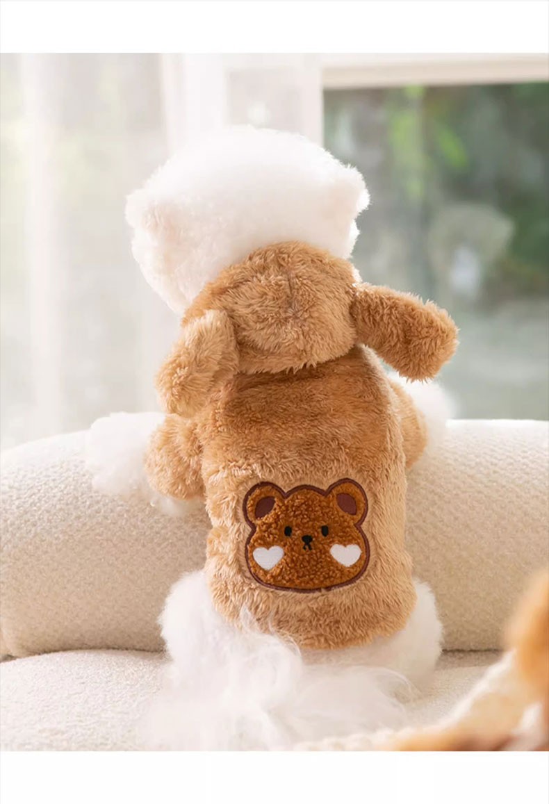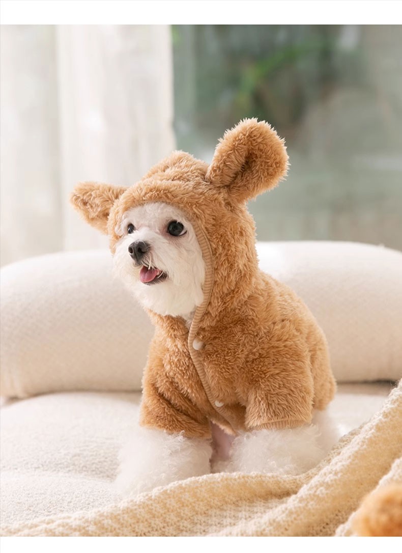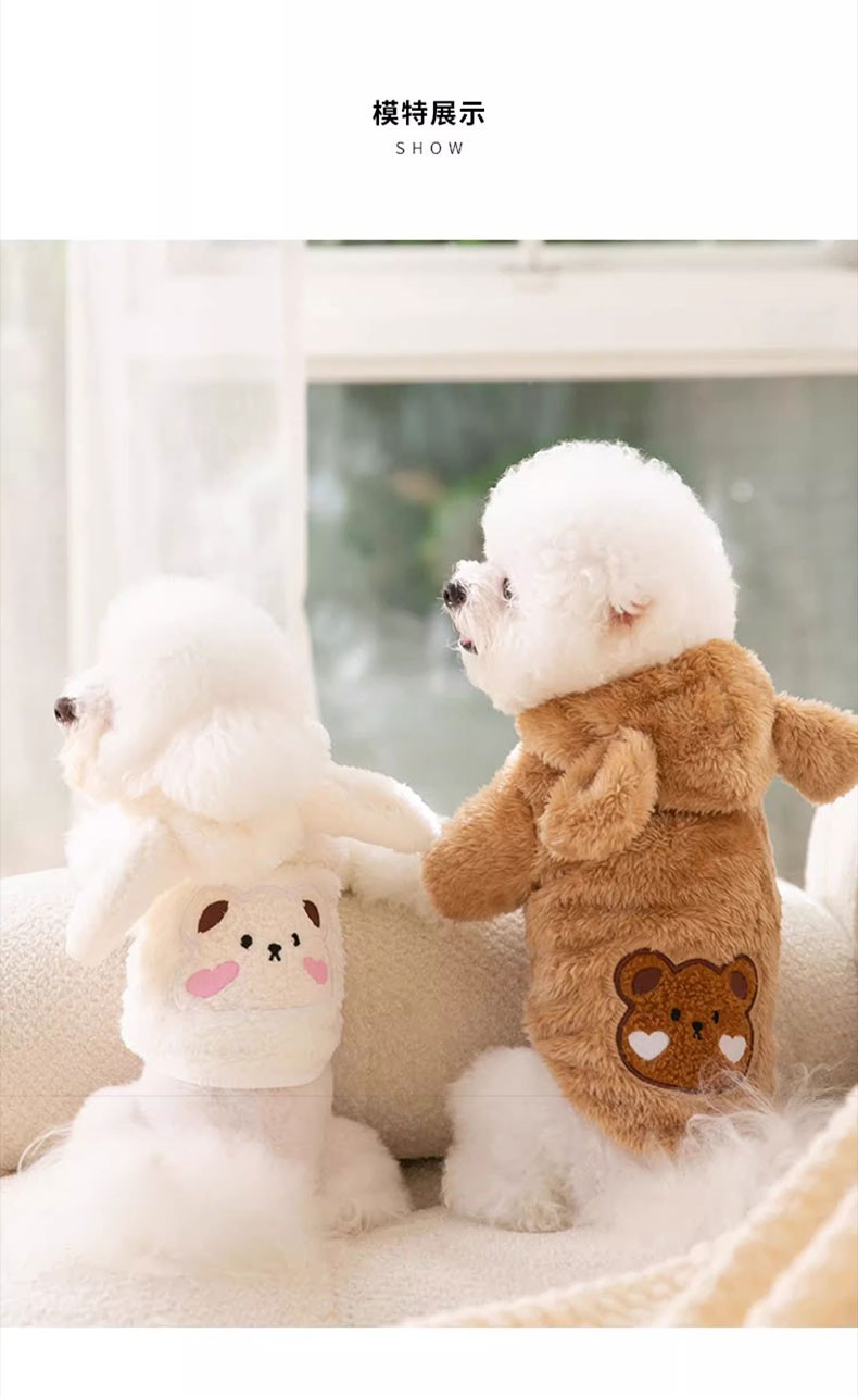 봄과 가을 개 곰 후드 옷 고양이 따뜻한 양털 강아지 미디어와 작은 개 두 다리 옷 애완 동물 옷스토어 가기