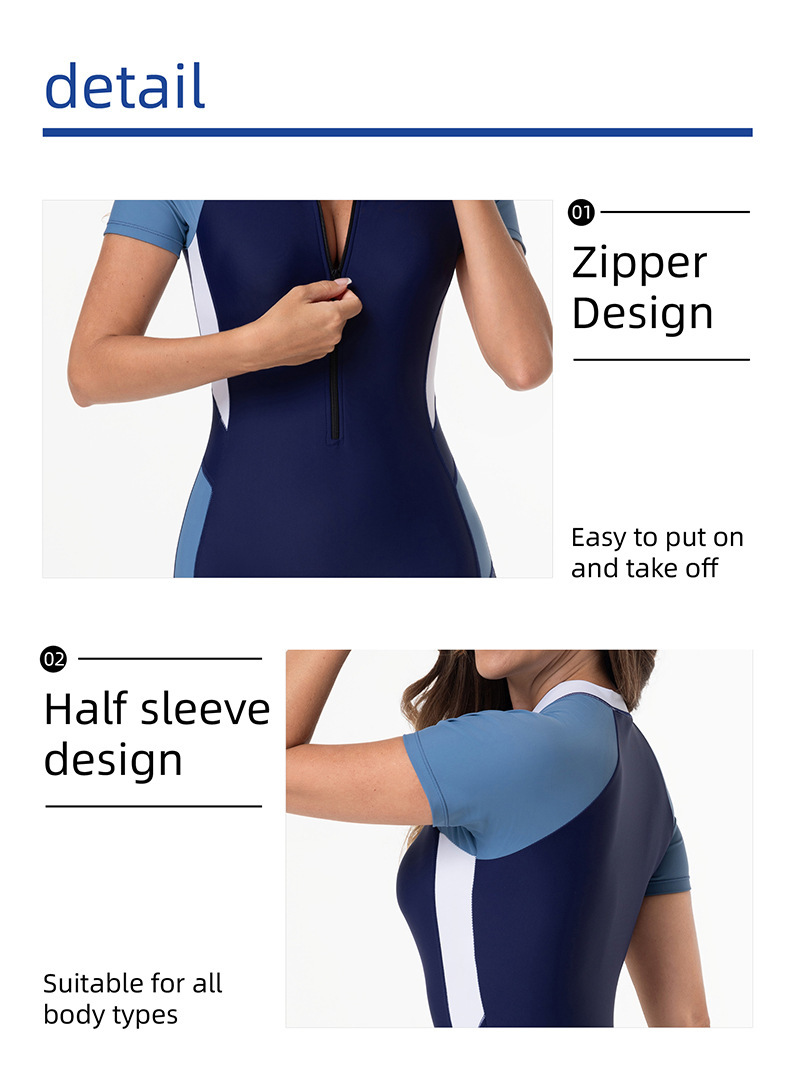 2025 새로운 원피스 수영복 허리 슬리밍 슬림 빠른 건조 유럽과 미국의 반팔 선 스크린 스포츠 수영복 여성 아마존