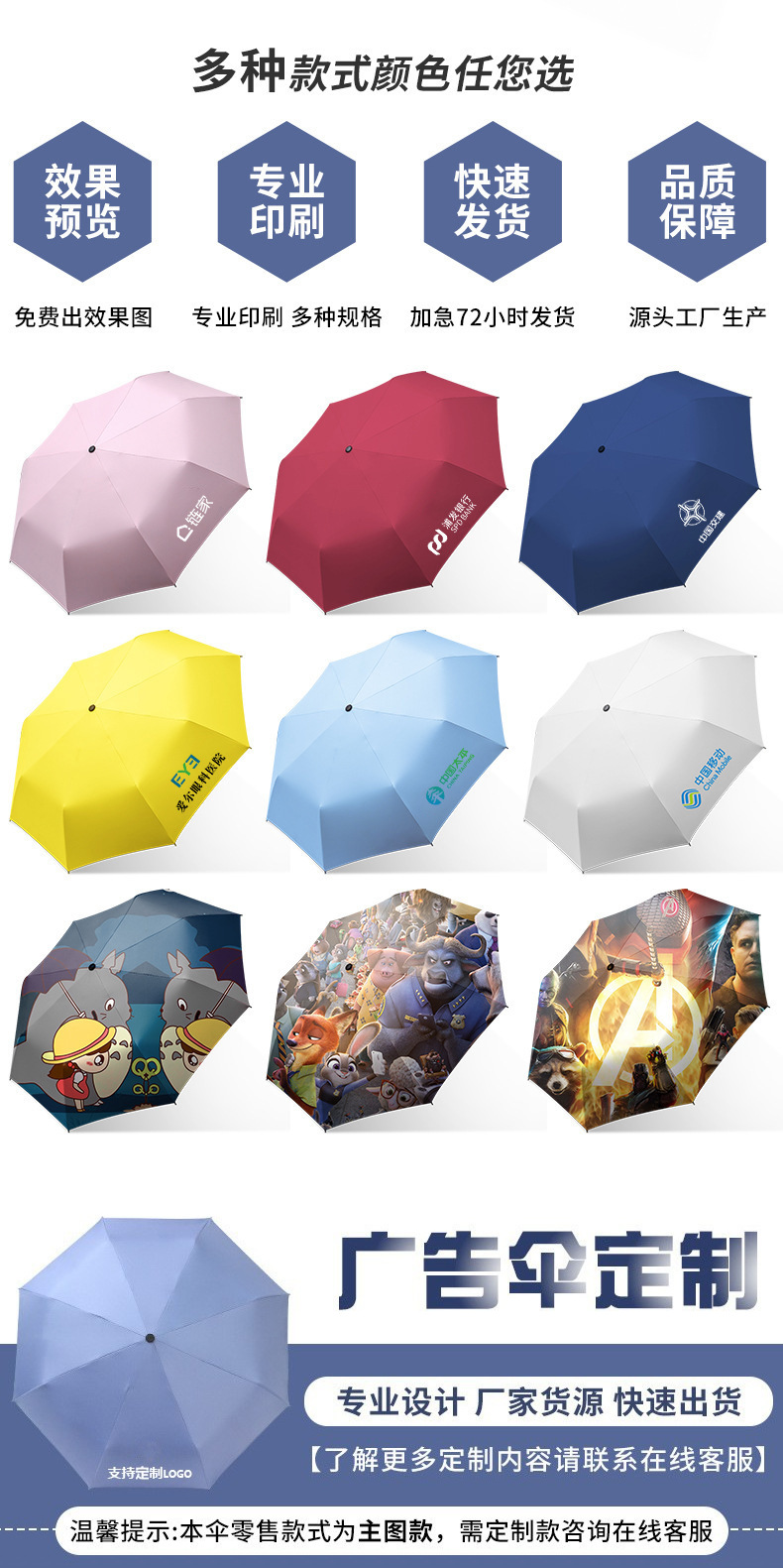 8단 우산 UV 블랙코팅 자외선 차단 접이식 양산 로고 인쇄 광고 우산 UPF40+ 방수
