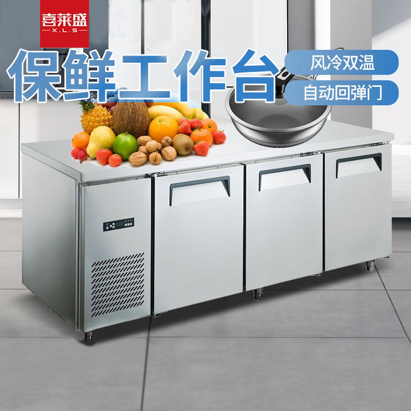 Xilaisheng 상업용 주방 냉동 작업대 공랭식 서리가없는 스테인레스 스틸 평면 냉각 콘솔 냉장고스토어 가기