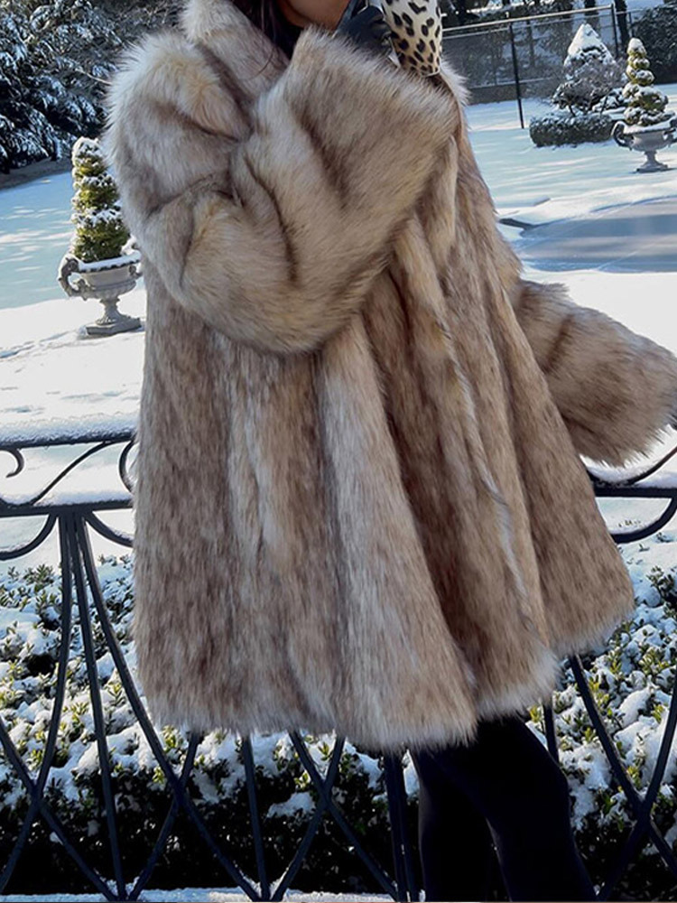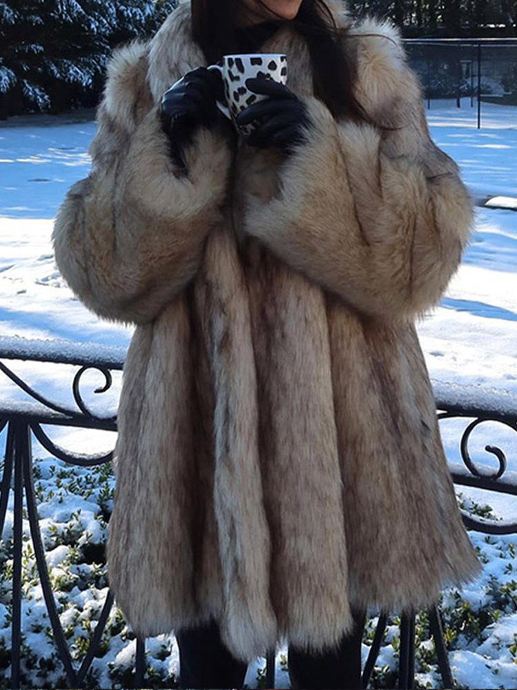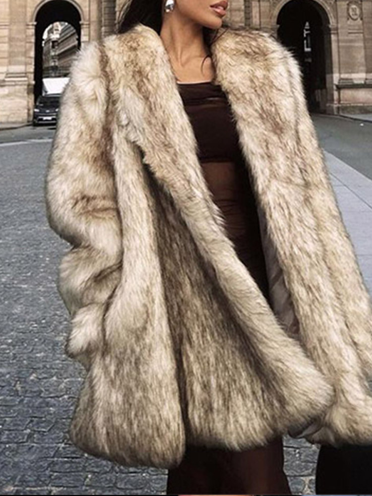 2024 유럽과 미국의 국경 옷깃 긴 소매 모피 가을과 겨울 패션 캐주얼 느슨한 포켓 따뜻한 코트