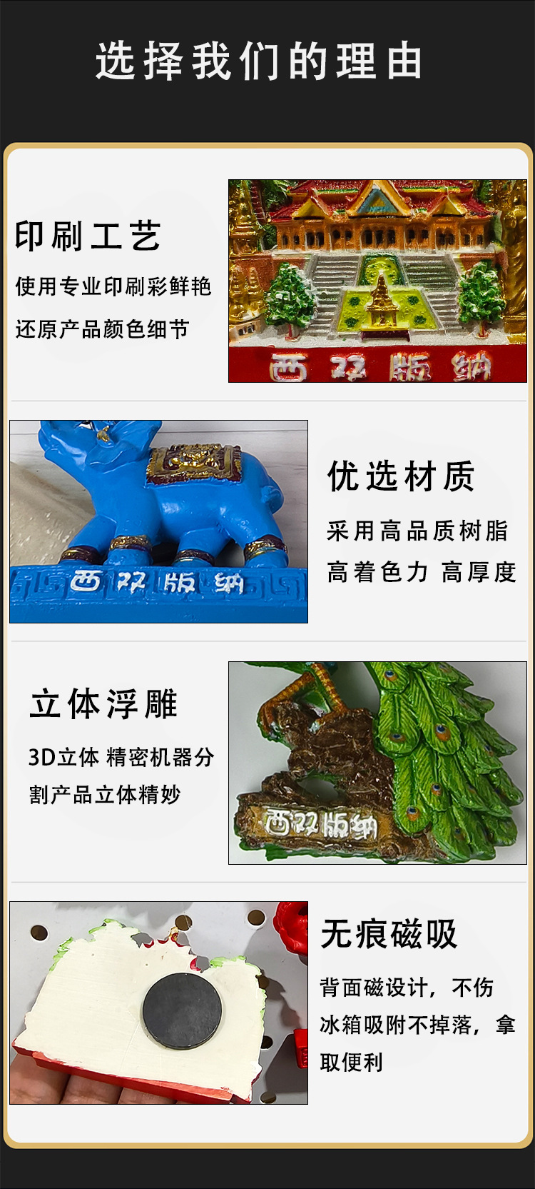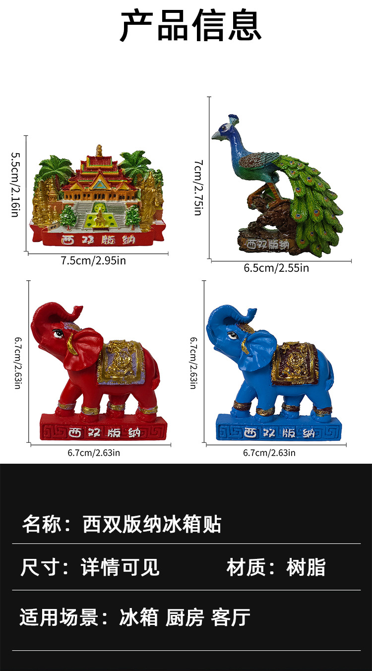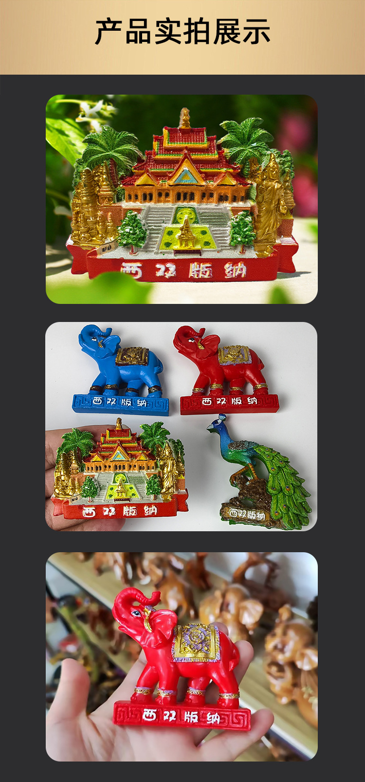 뜨거운 판매 Wenchuang 관광 도시 Xishuangbanna 수지 마그네틱 스테레오 냉장고 스티커 동물 관광 기념품 도매스토어 가기