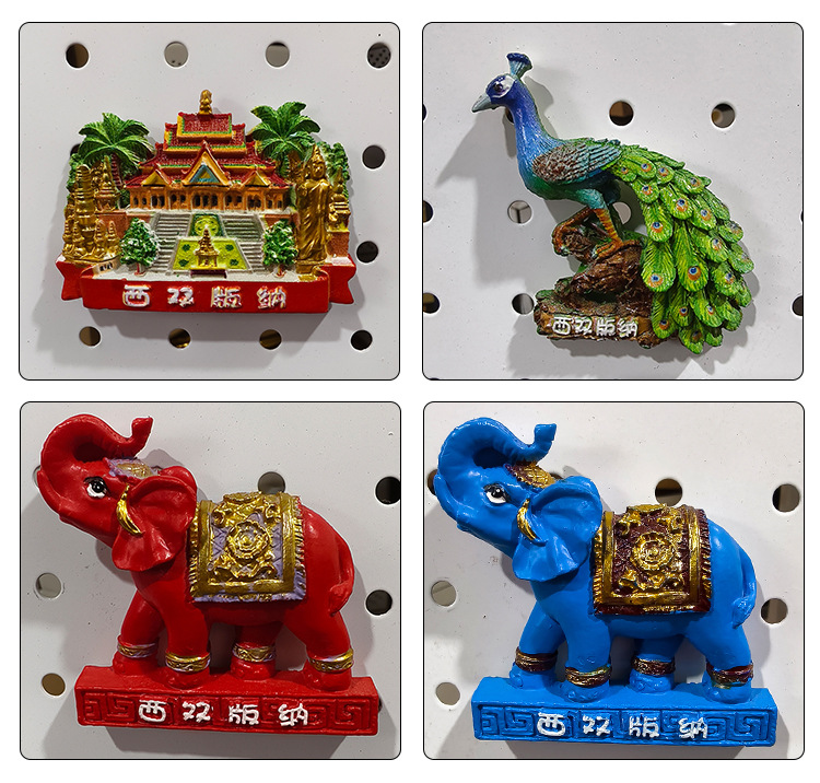 뜨거운 판매 Wenchuang 관광 도시 Xishuangbanna 수지 마그네틱 스테레오 냉장고 스티커 동물 관광 기념품 도매