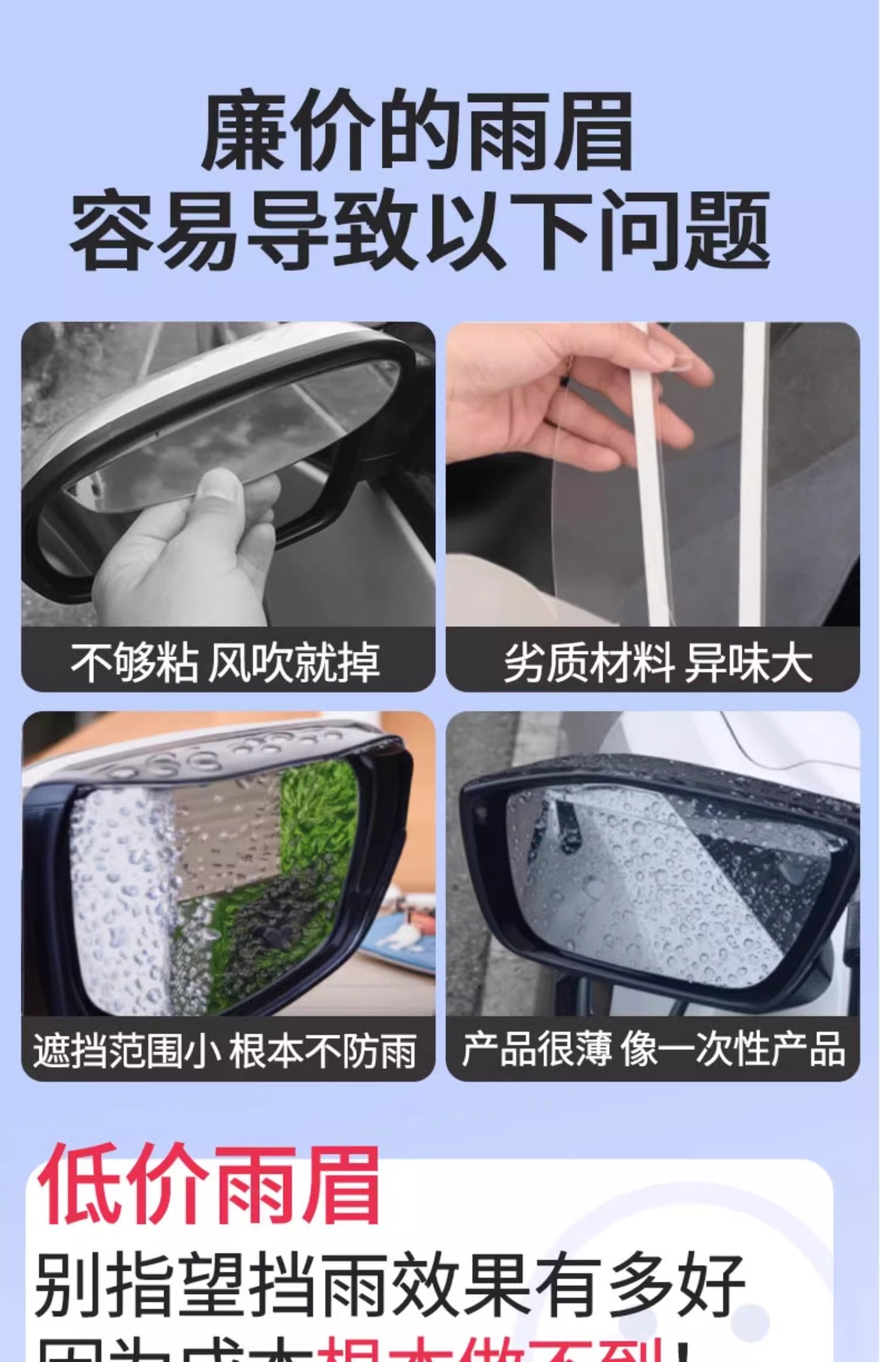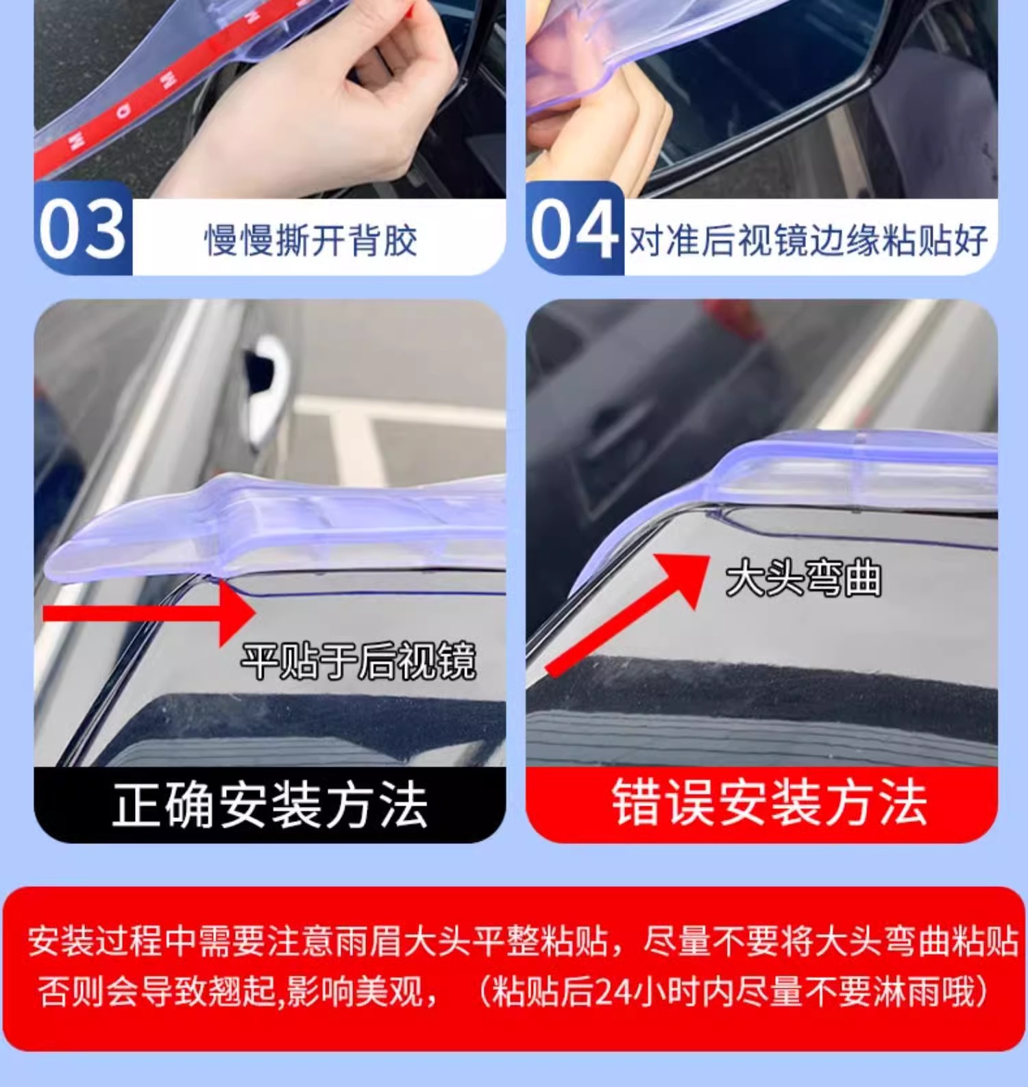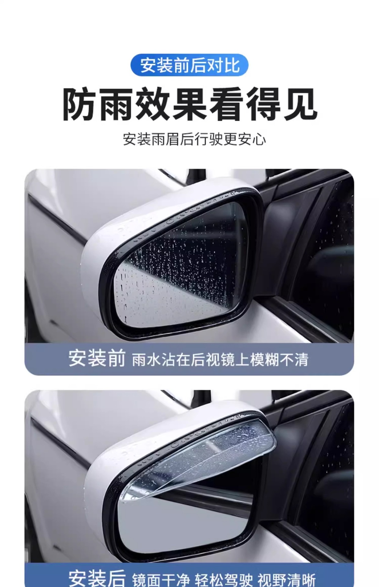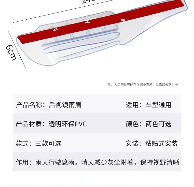 • 효과적인 비 방지/시선을 가리지 않음/백미러 접힘에 영향을 주지 않음/고온 및 저온에 강한 자동차 용품/일반 장식 모델