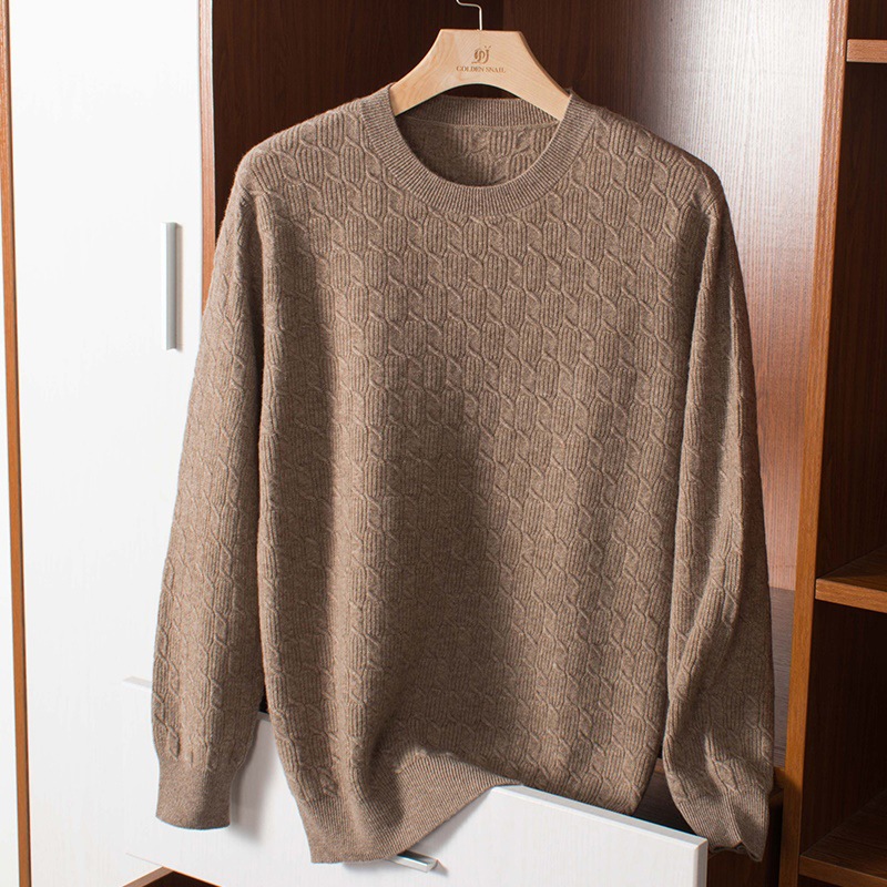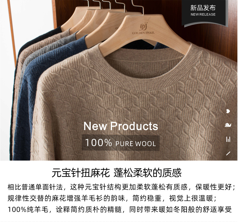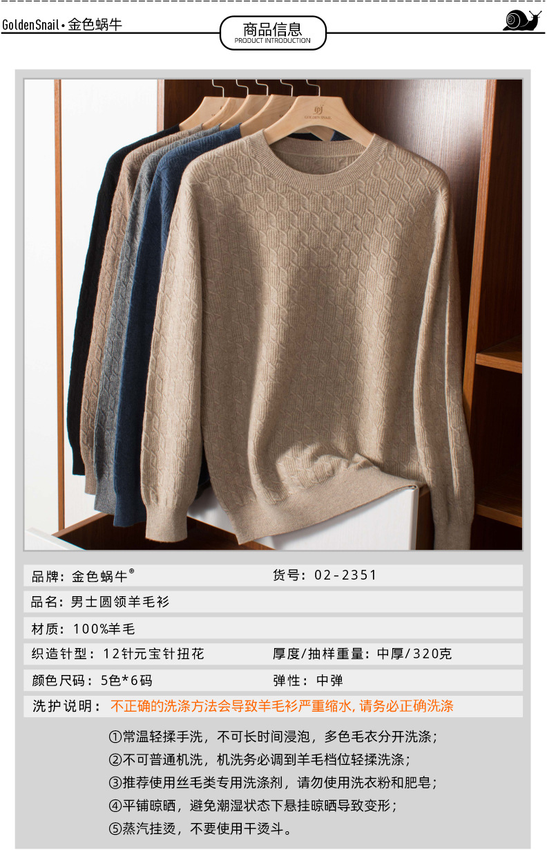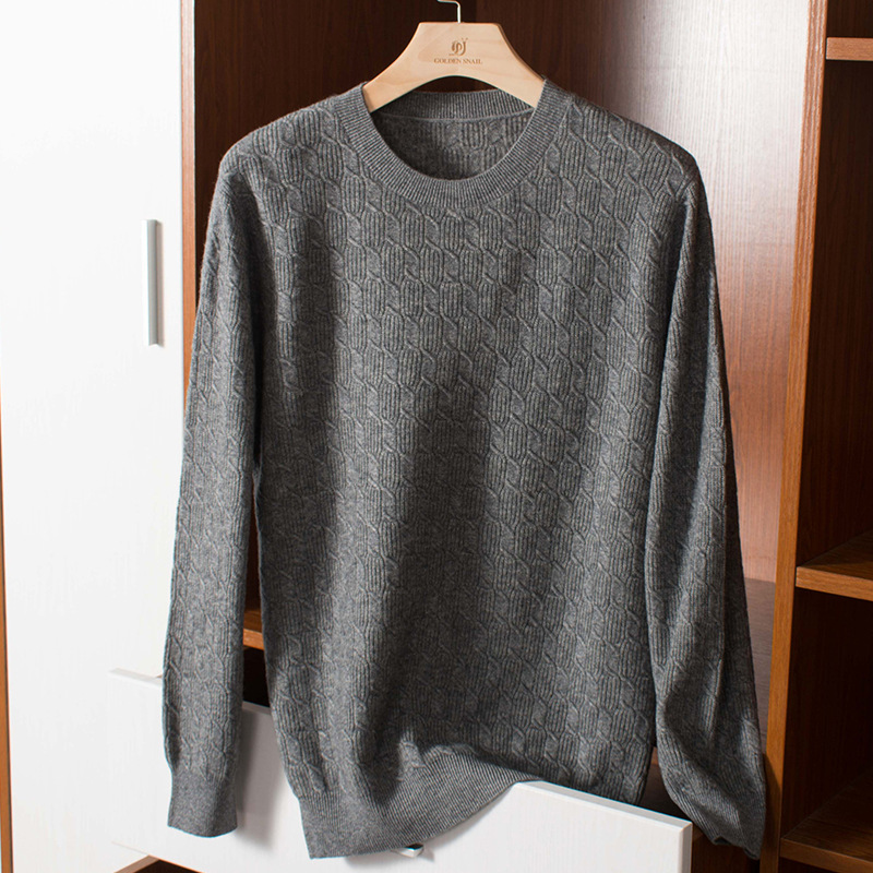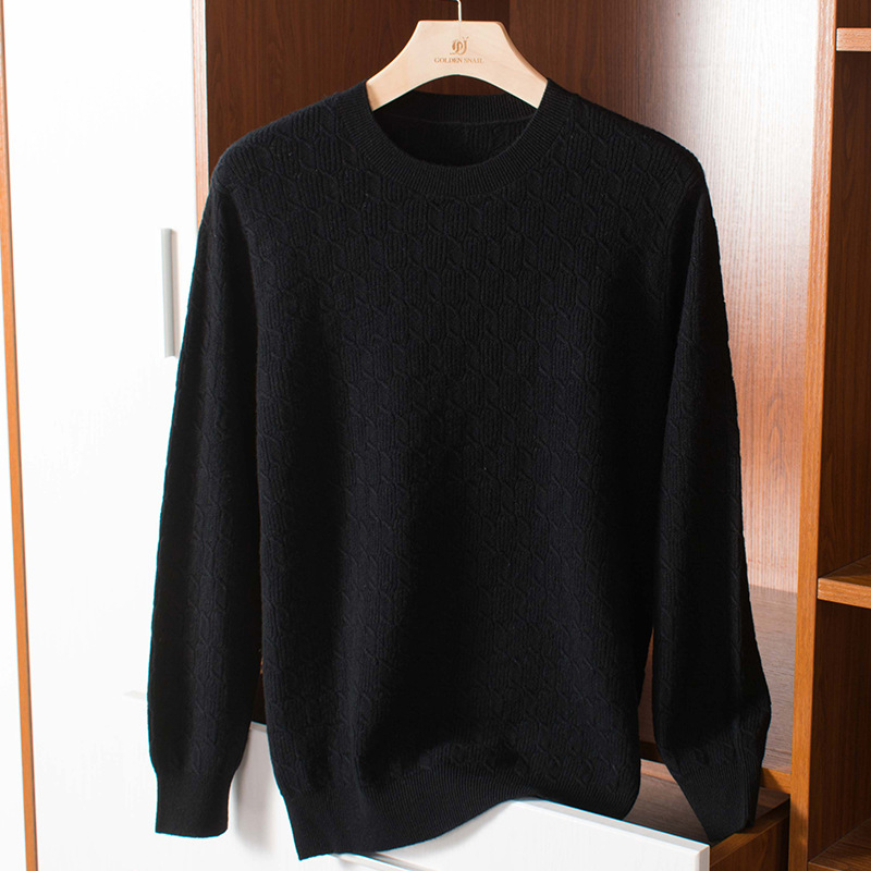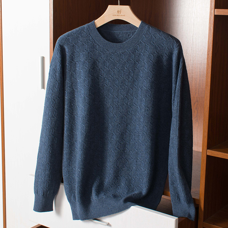 02B2351 울 스웨터 남자 겨울 새 크루 넥 자카드 순수 울 내부 니트 풀오버 따뜻한 스웨터