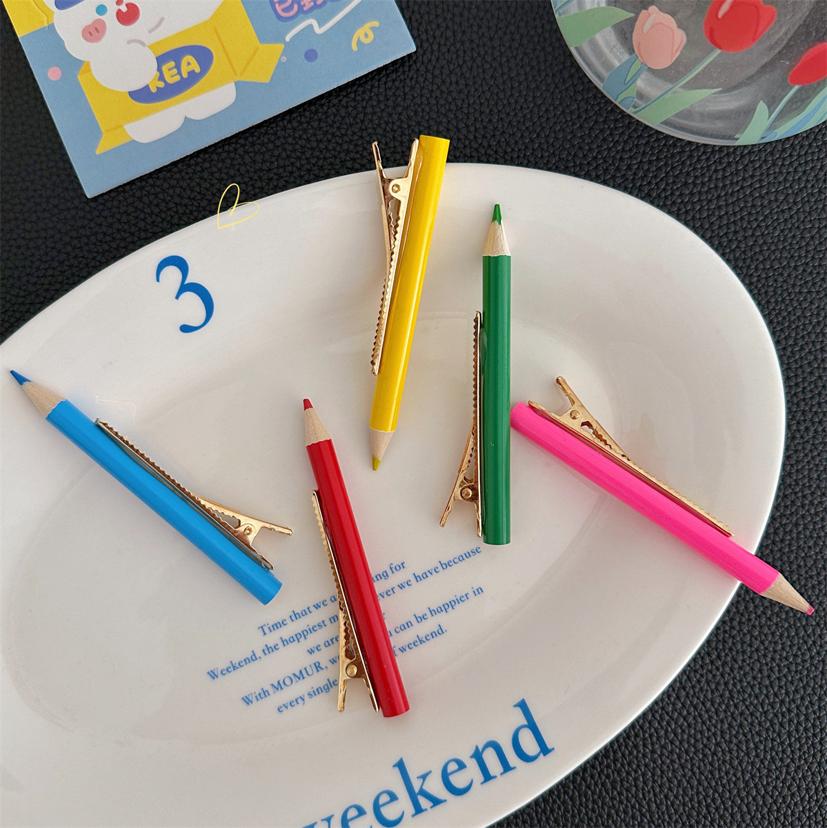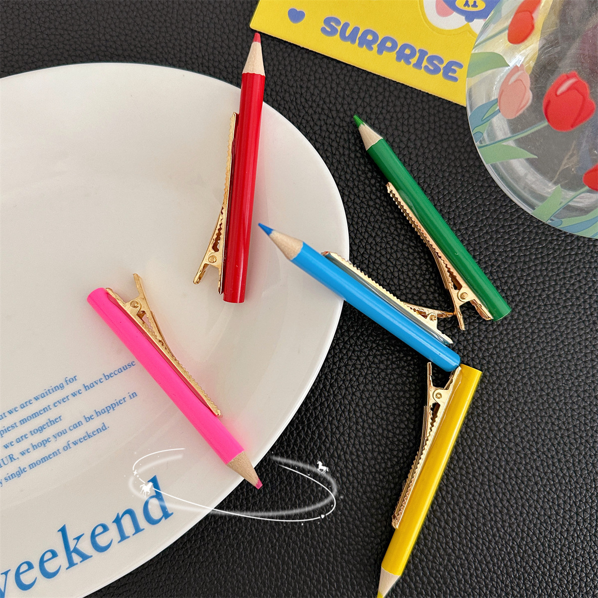 컬러 연필 머리핀 유니섹스 덕빌 클립 학생 앞머리 연주 쓰기 깨진 머리핀 헤어 액세서리 도매
