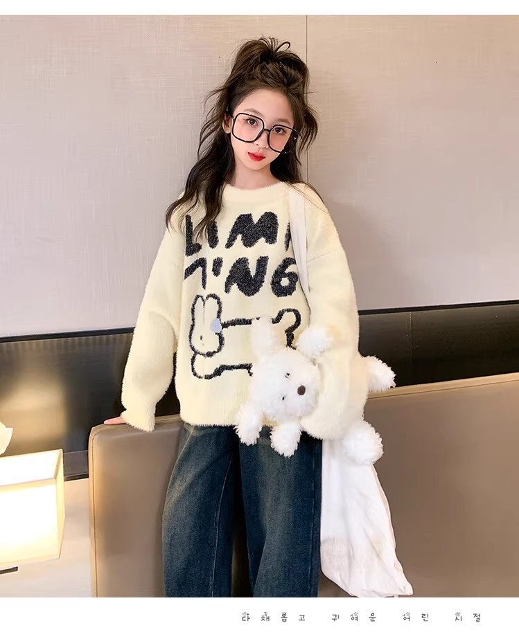 여자 기모 스웨터 2024 가을/겨울 새로운 어린이 겨울베이스 셔츠 큰 아동복 소녀 겨울 두꺼운 탑스토어 가기