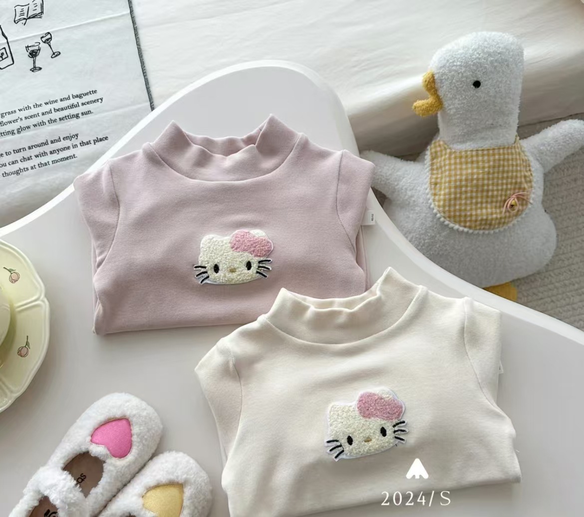 소녀들의 따뜻한 바닥 셔츠 가을과 겨울 티셔츠 2024 어린이 올 매치 KT 만화 새끼 고양이 타월 쇼 벨벳 탑스토어 가기