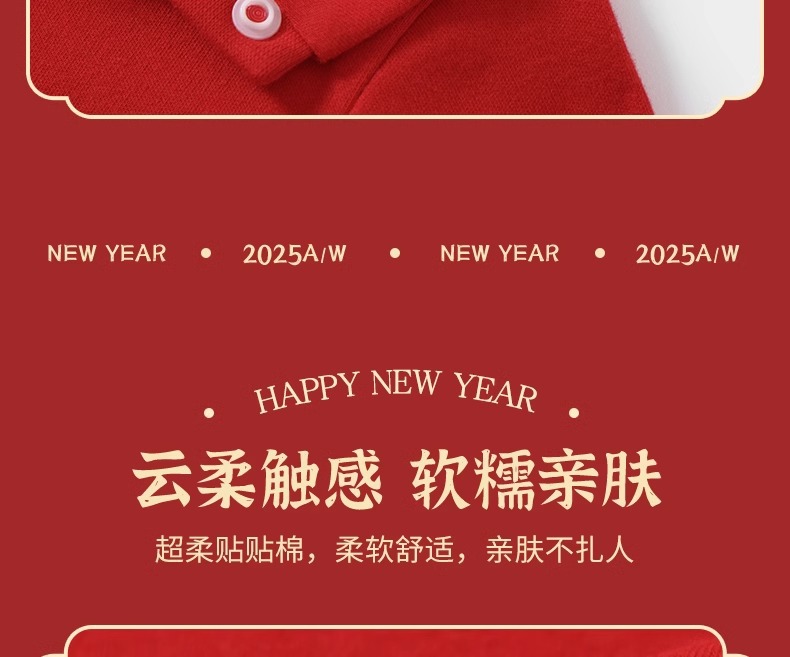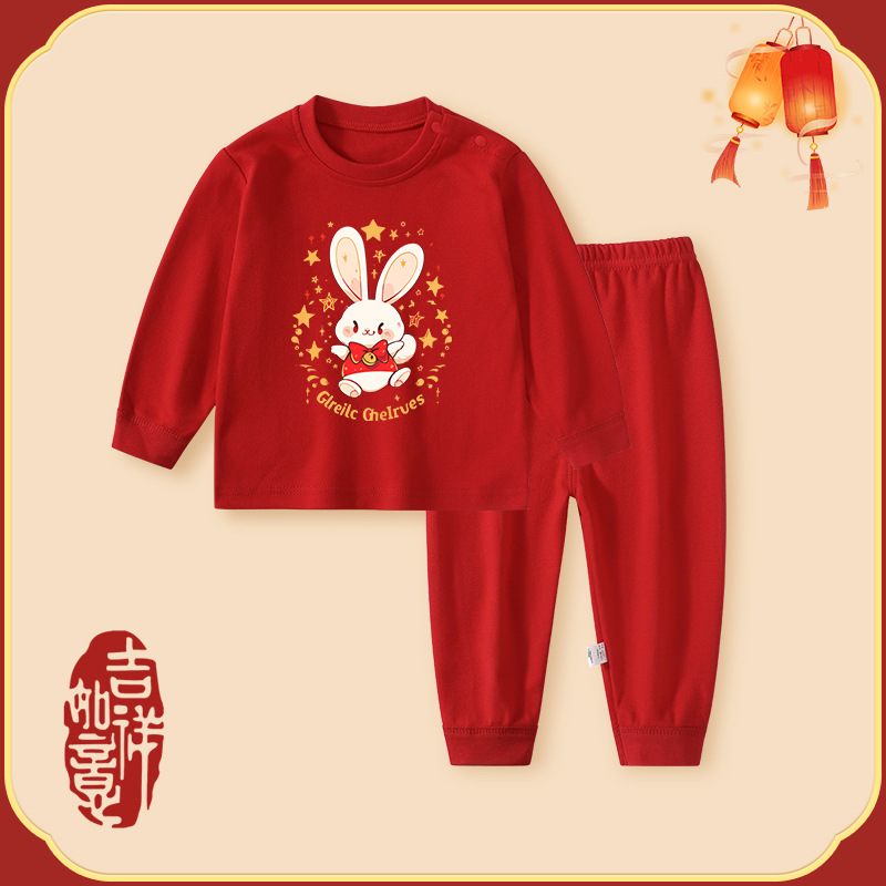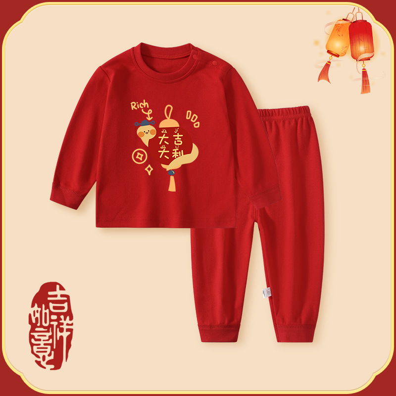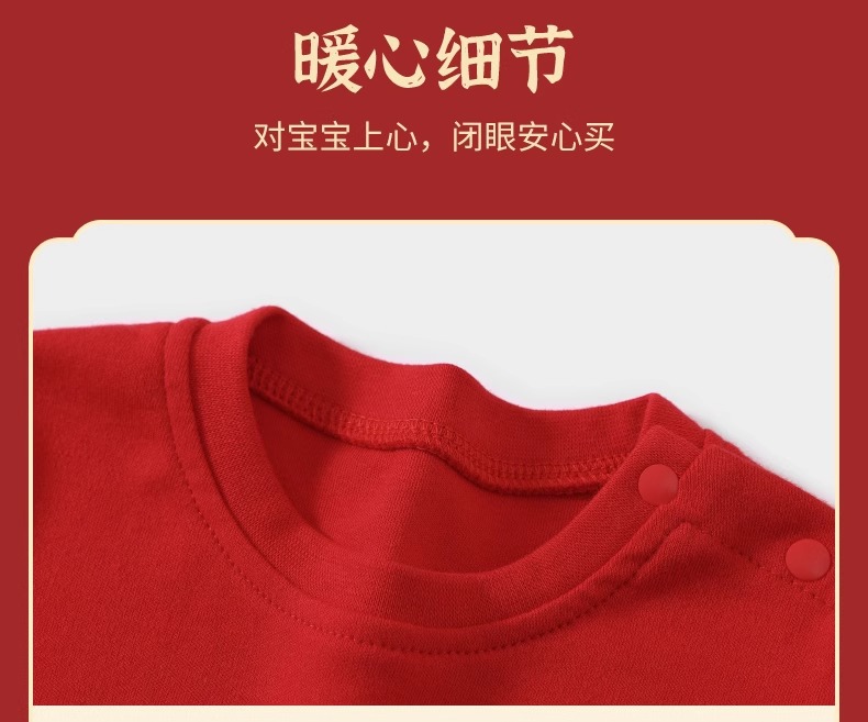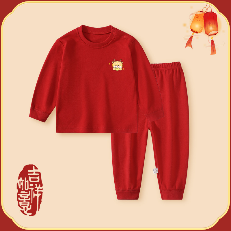 새해 새 도착 소년과 소녀 가을 옷 긴 존스 레드 퓨어 코튼 따뜻한 땀 흡수 통기성 새해 옷 홈 옷