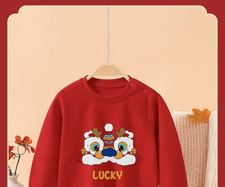 새해 새 도착 소년과 소녀 가을 옷 긴 존스 레드 퓨어 코튼 따뜻한 땀 흡수 통기성 새해 옷 홈 옷스토어 가기