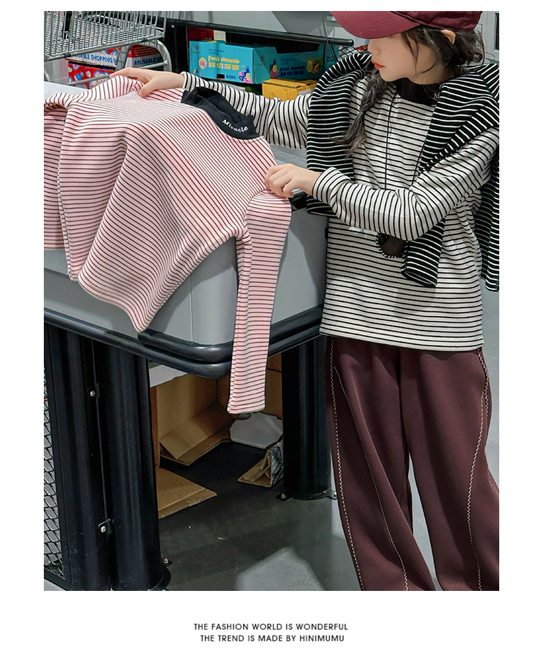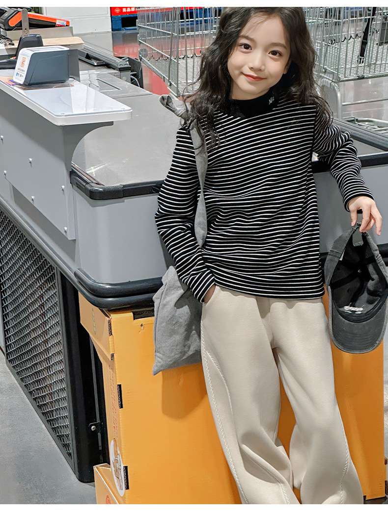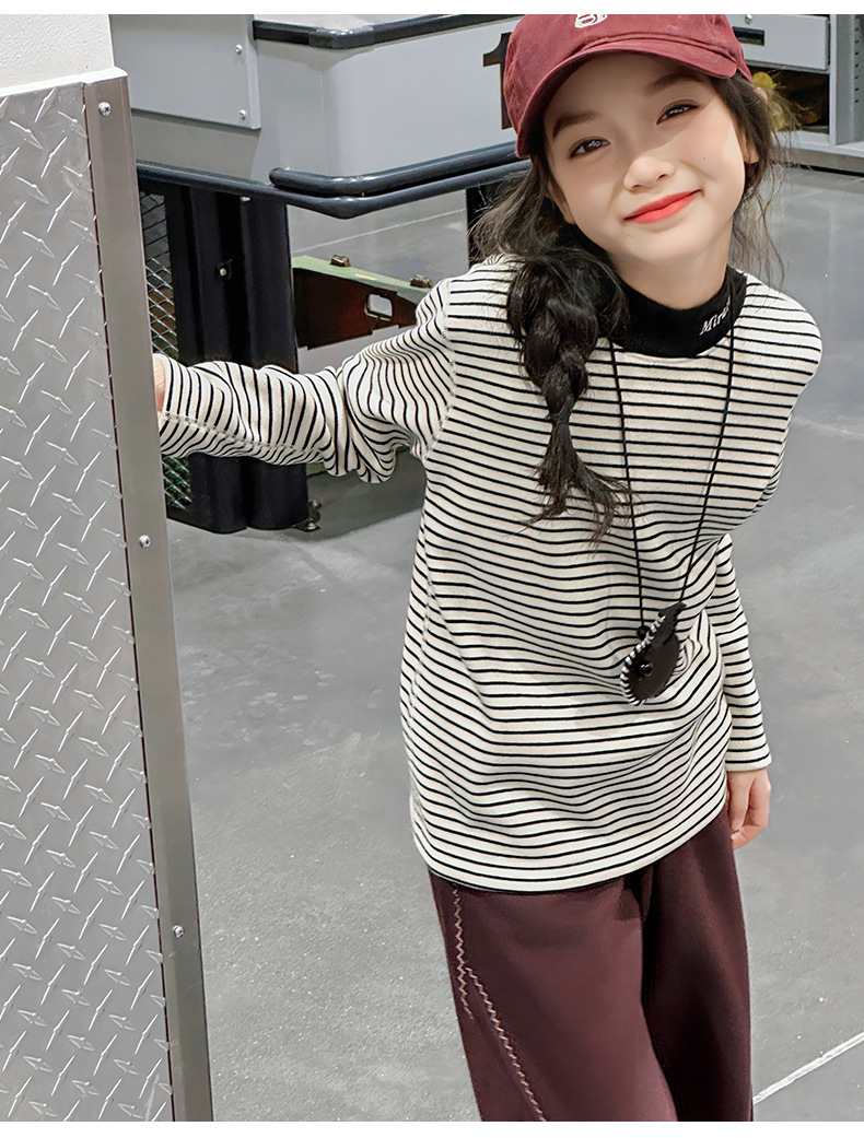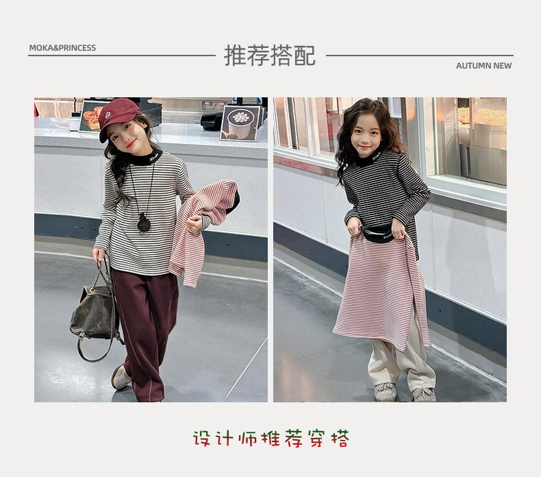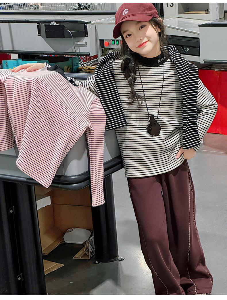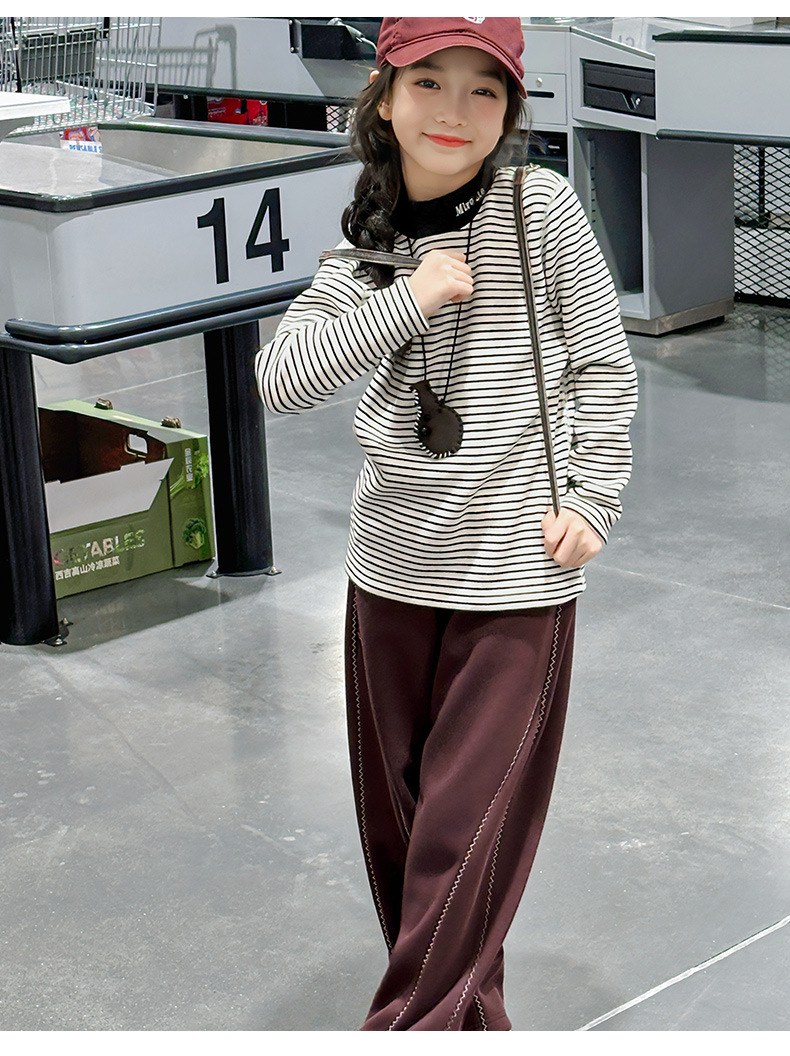 여아용 겨울 2025 신상품 아동용 줄무늬 기모 두꺼운 상의 반목 스웨트셔츠 세트스토어 가기