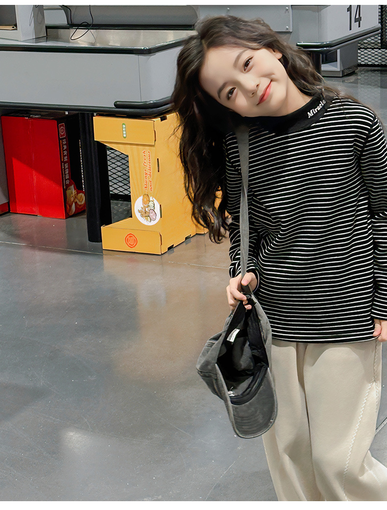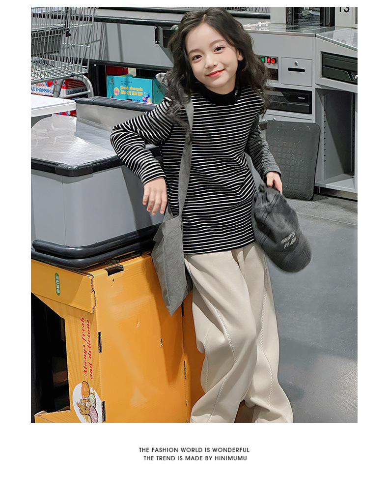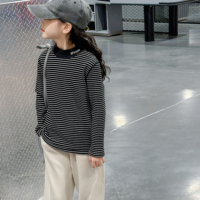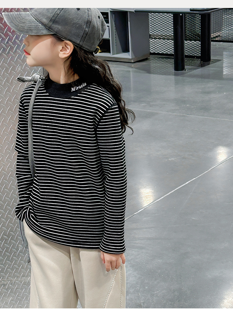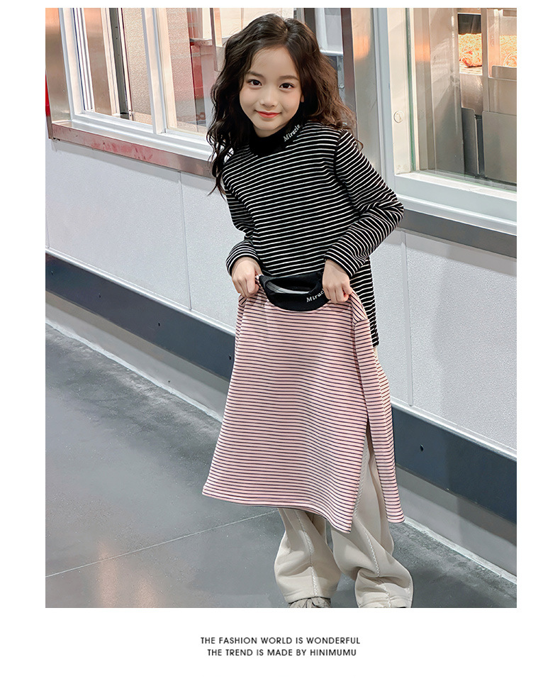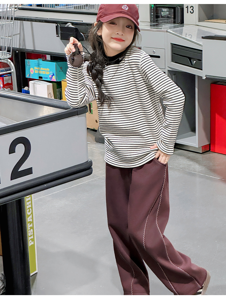 여아용 겨울 2025 신상품 아동용 줄무늬 기모 두꺼운 상의 반목 스웨트셔츠 세트스토어 가기