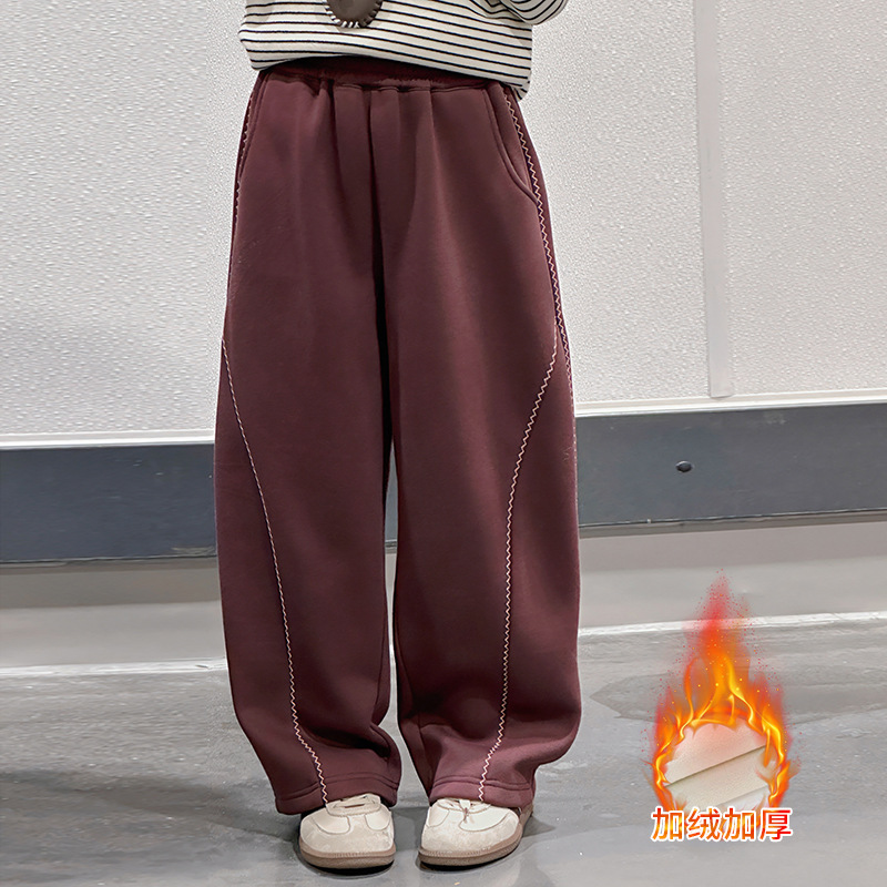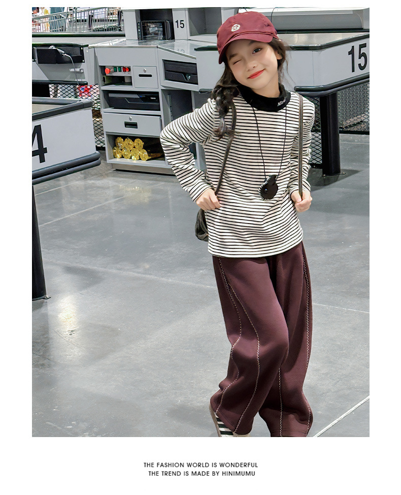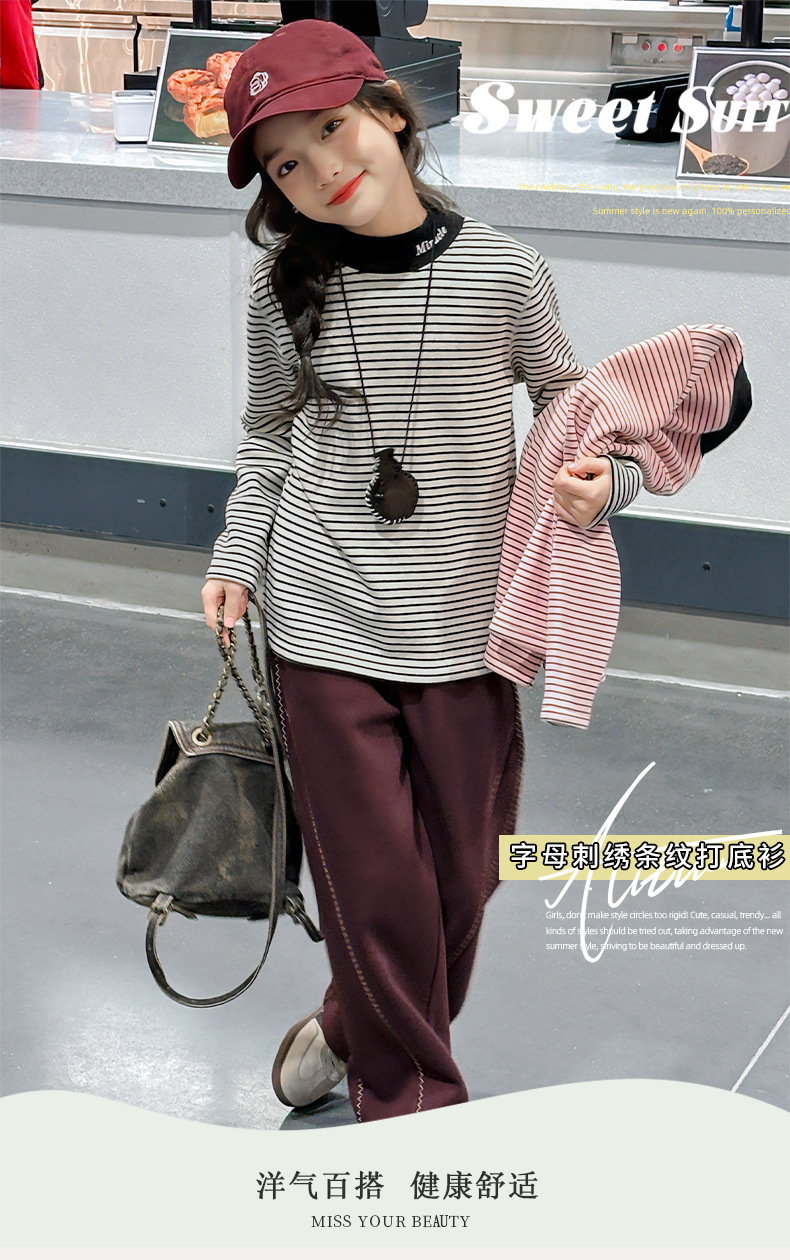여아용 겨울 2025 신상품 아동용 줄무늬 기모 두꺼운 상의 반목 스웨트셔츠 세트