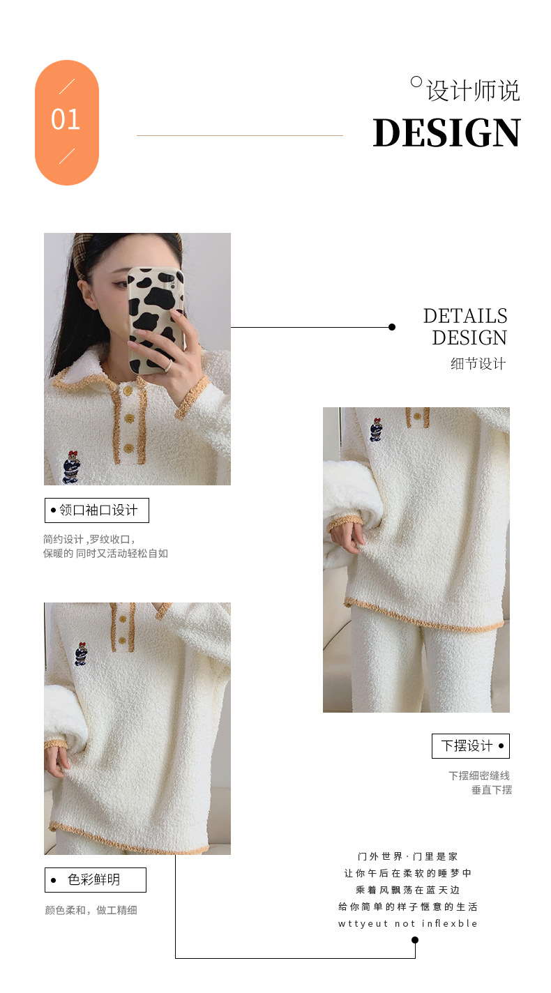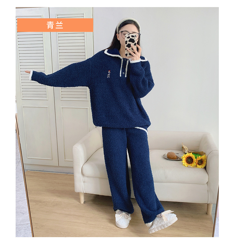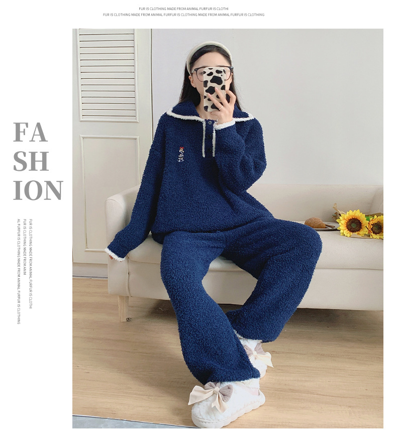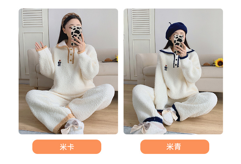 겨울 귀여운 부드러운 반쪽 벨벳 파자마 세트 여성 기모 두꺼운 캐주얼 따뜻한 가정 겉옷스토어 가기