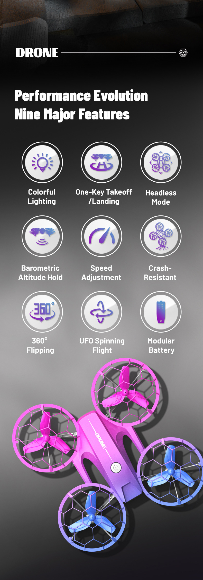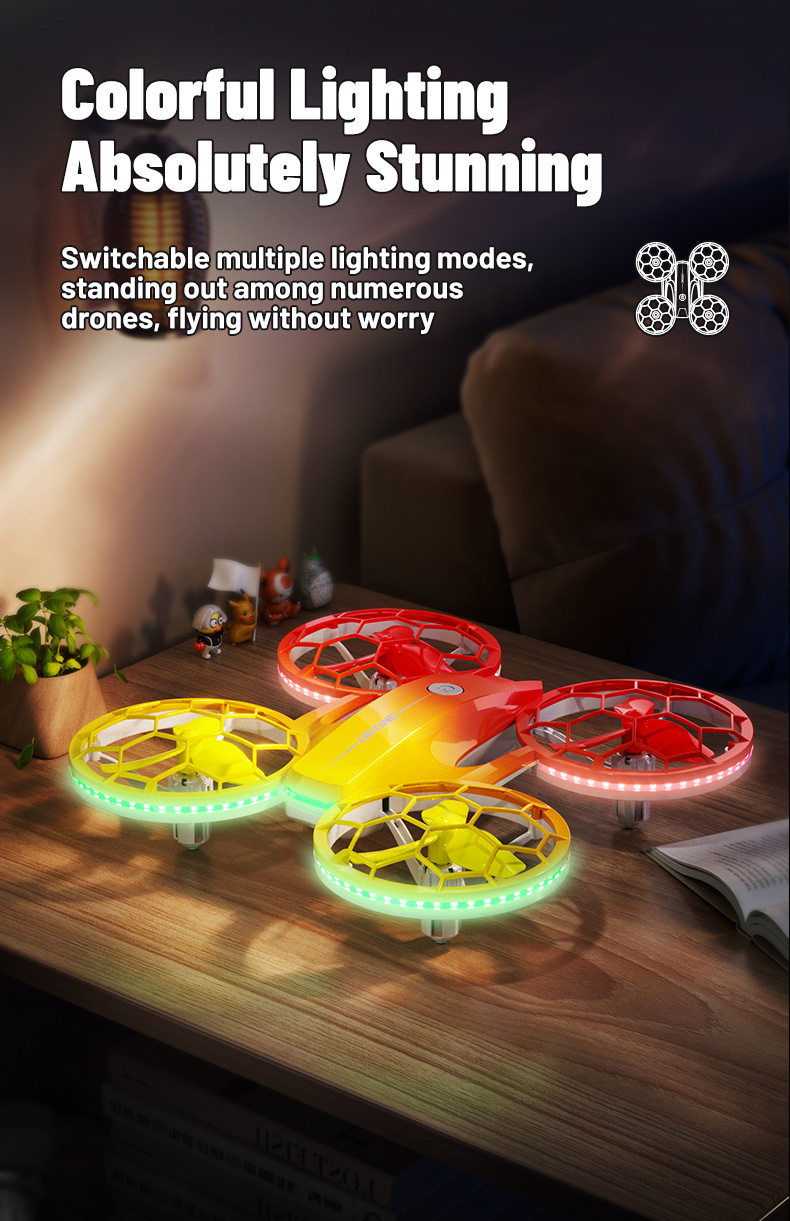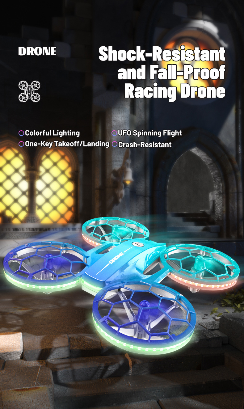 JJRC 국경 간 새로운 원 버튼 이륙 및 착륙 스턴트 드론 다채로운 조명 안전 낙하 방지 초보자 원격 제어 항공기