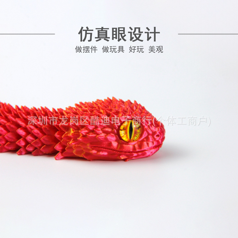 국경 간 뜨거운 판매 3D 인쇄 독사 장난감 독사 장식품 공예 인쇄 3D 시뮬레이션 뱀 동물 장식품 장식