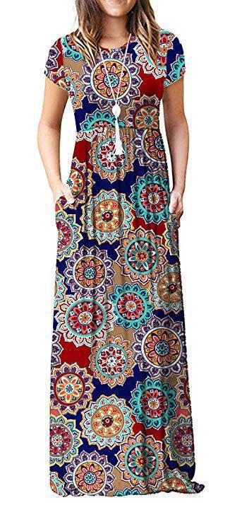 아마존 폭발 2023 봄 새로운 인쇄 짧은 소매 포켓 원피스 원피스 국경 간 재고 원피스