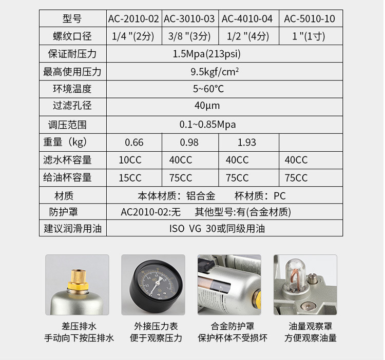 공기 압축기 공기 소스 오일-물 분리 필터 A/B/S/GFC2/3/4000 공압 2 피스 처리 요소스토어 가기