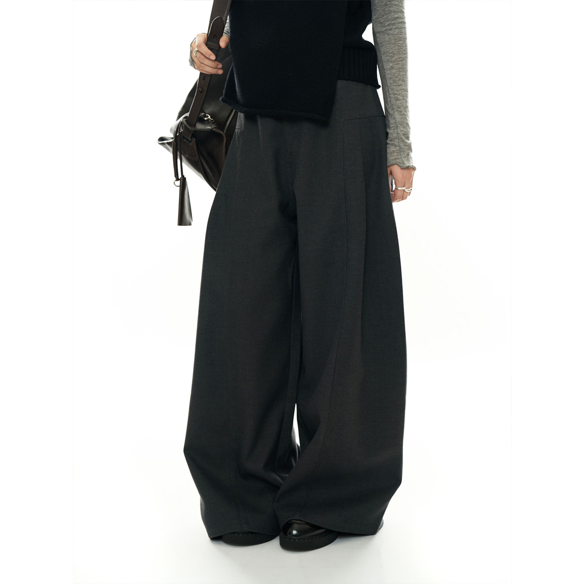 루푸 겨울 새로운 한국 스타일 블로거 스타일 유행 와이드 레그 팬츠 두꺼운 슬림 룩 캐주얼 바지 여성