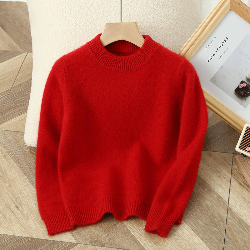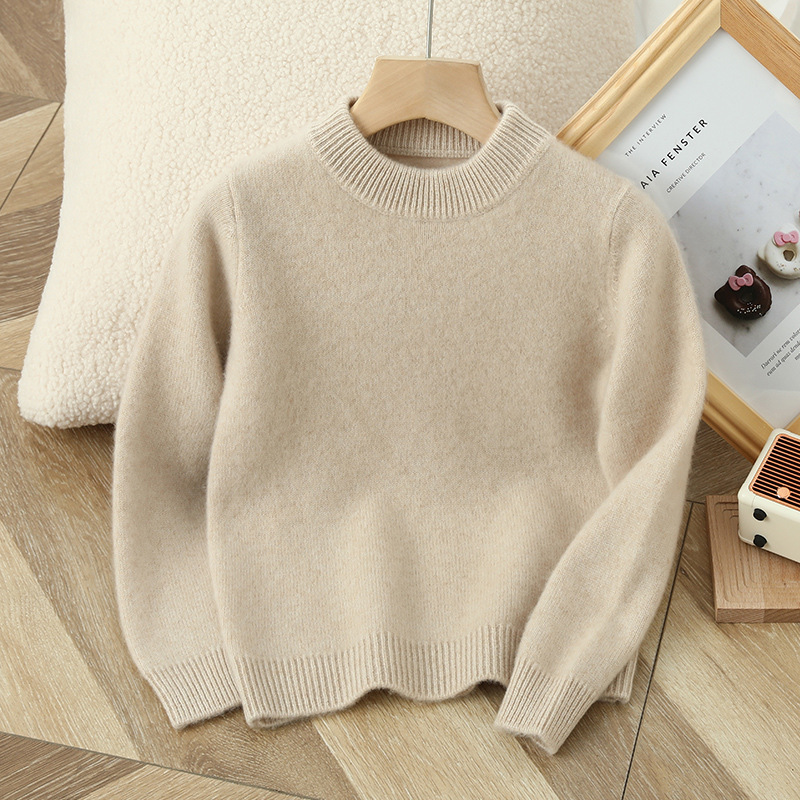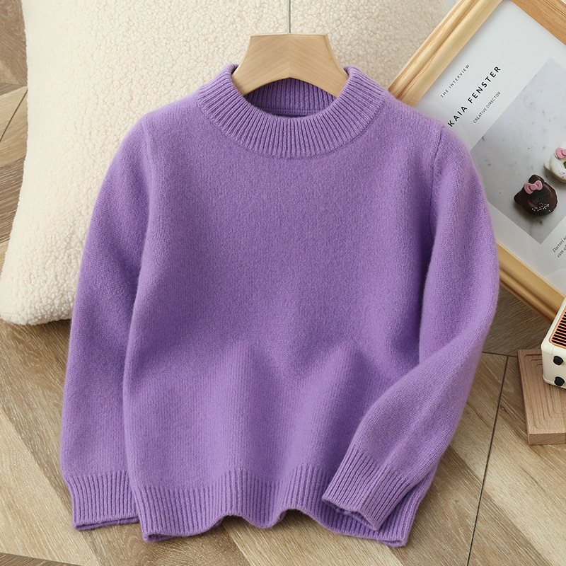남학생과 여학생을위한 반 높이 어린이 순수 울 스웨터 두꺼운 니트 가을 및 겨울 큰 어린이 양모 봉제 아기 내베이스 스웨터
