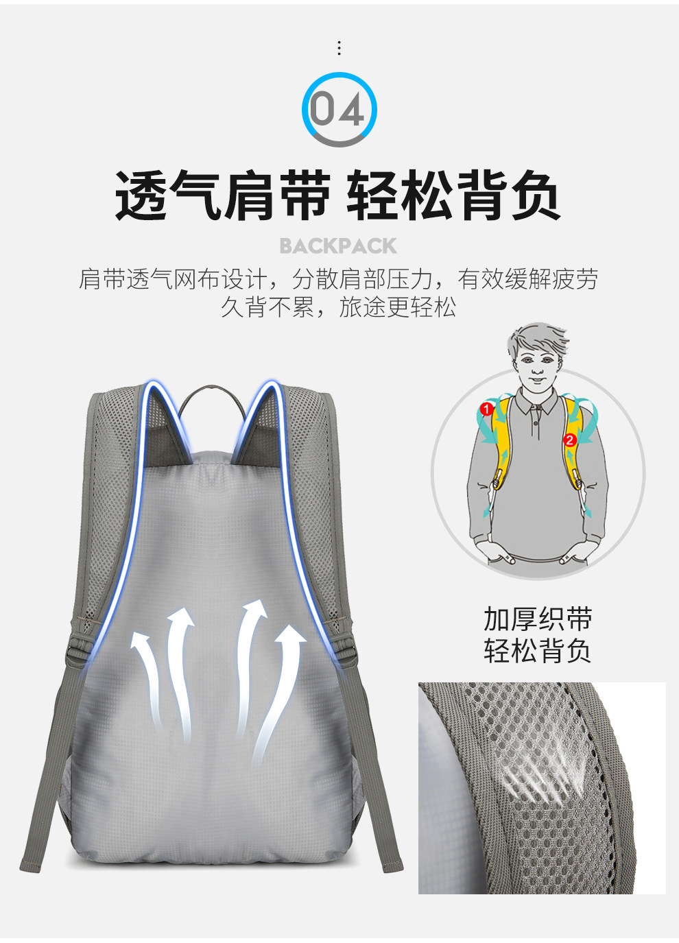 야외 초경량 배낭 남성과 여성의 초박형 접이식 스킨 백 휴대용 여행 배낭 경량 방수 소형 등산 가방