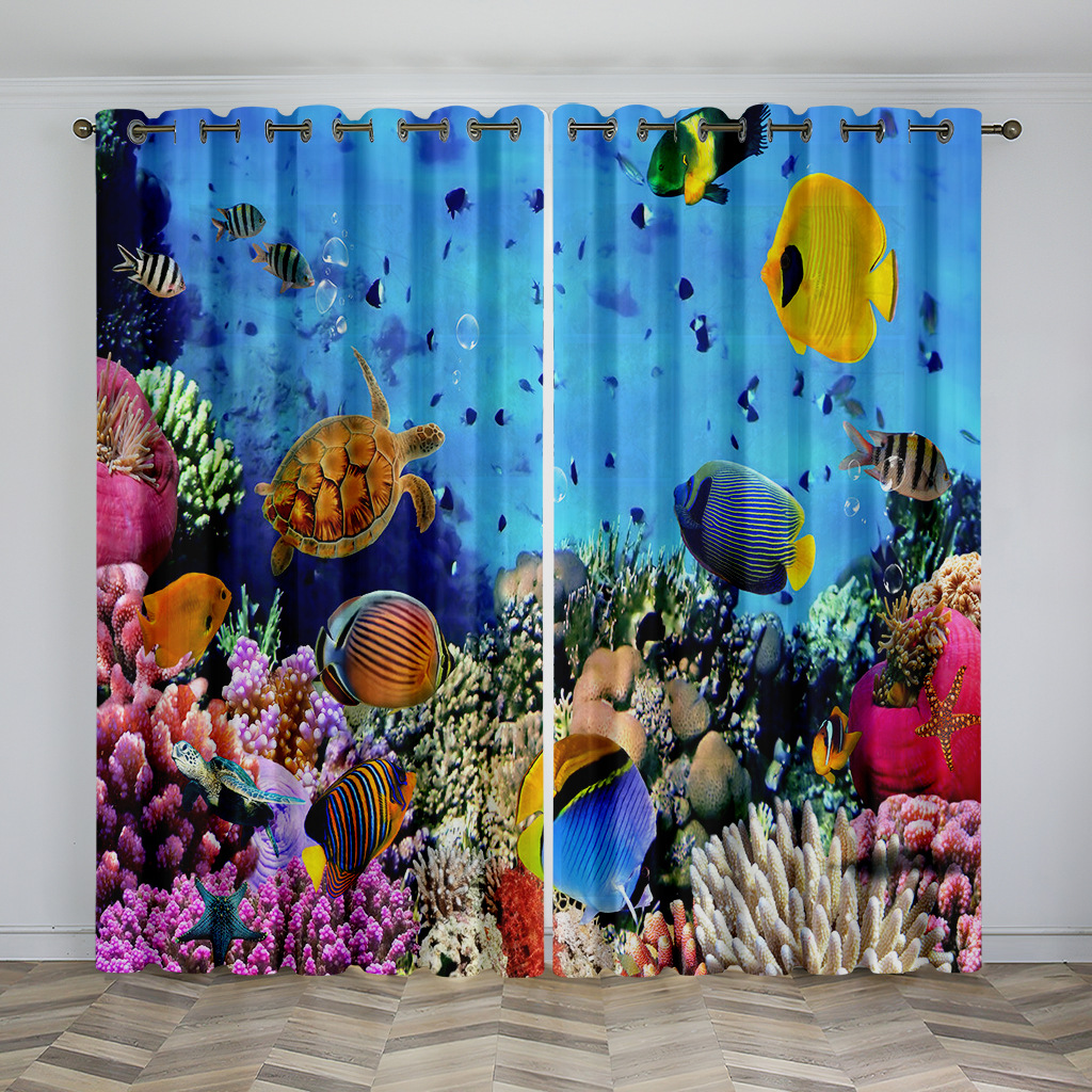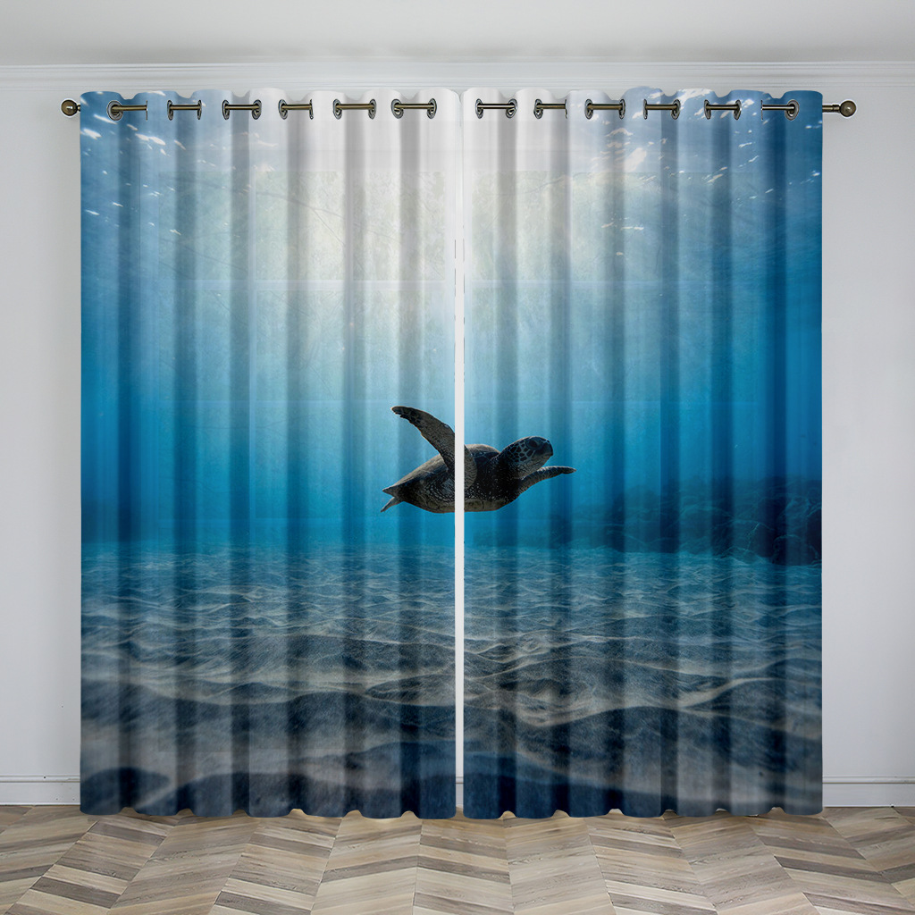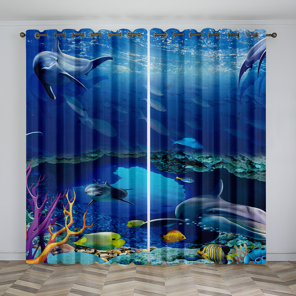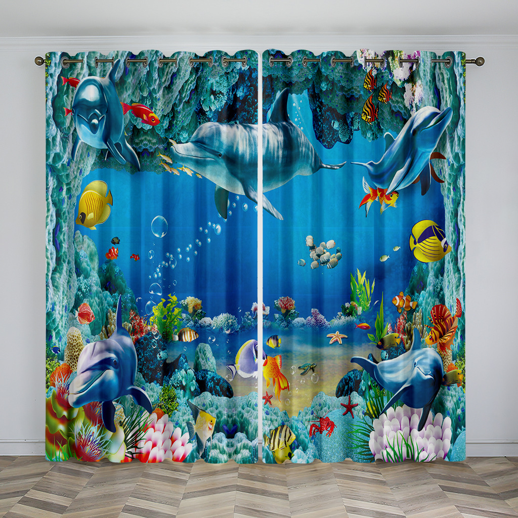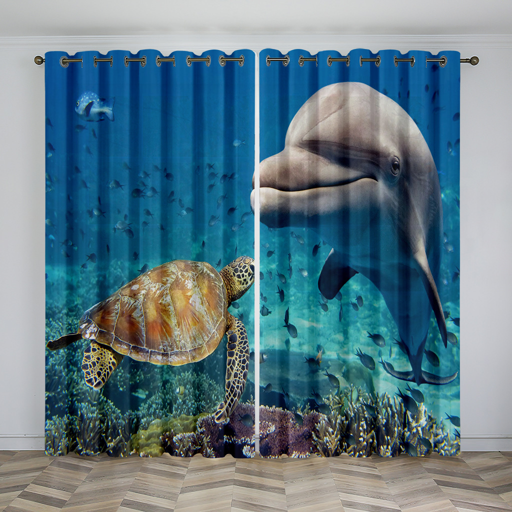 마법의 수중 세계 돌고래 거북이 산호 디지털 인쇄 패턴 커튼 거실 발코니 국경 간 배송 사용자 정의