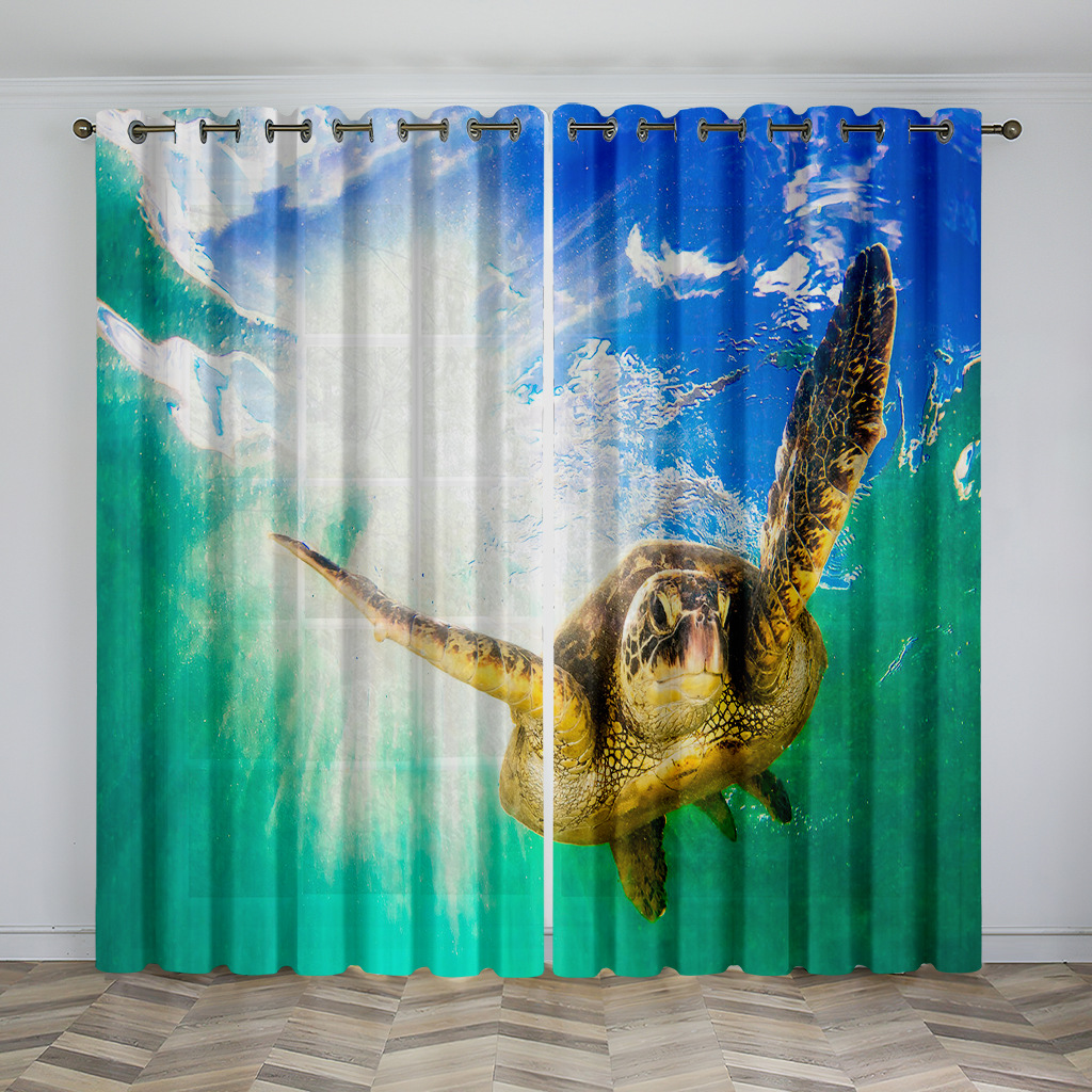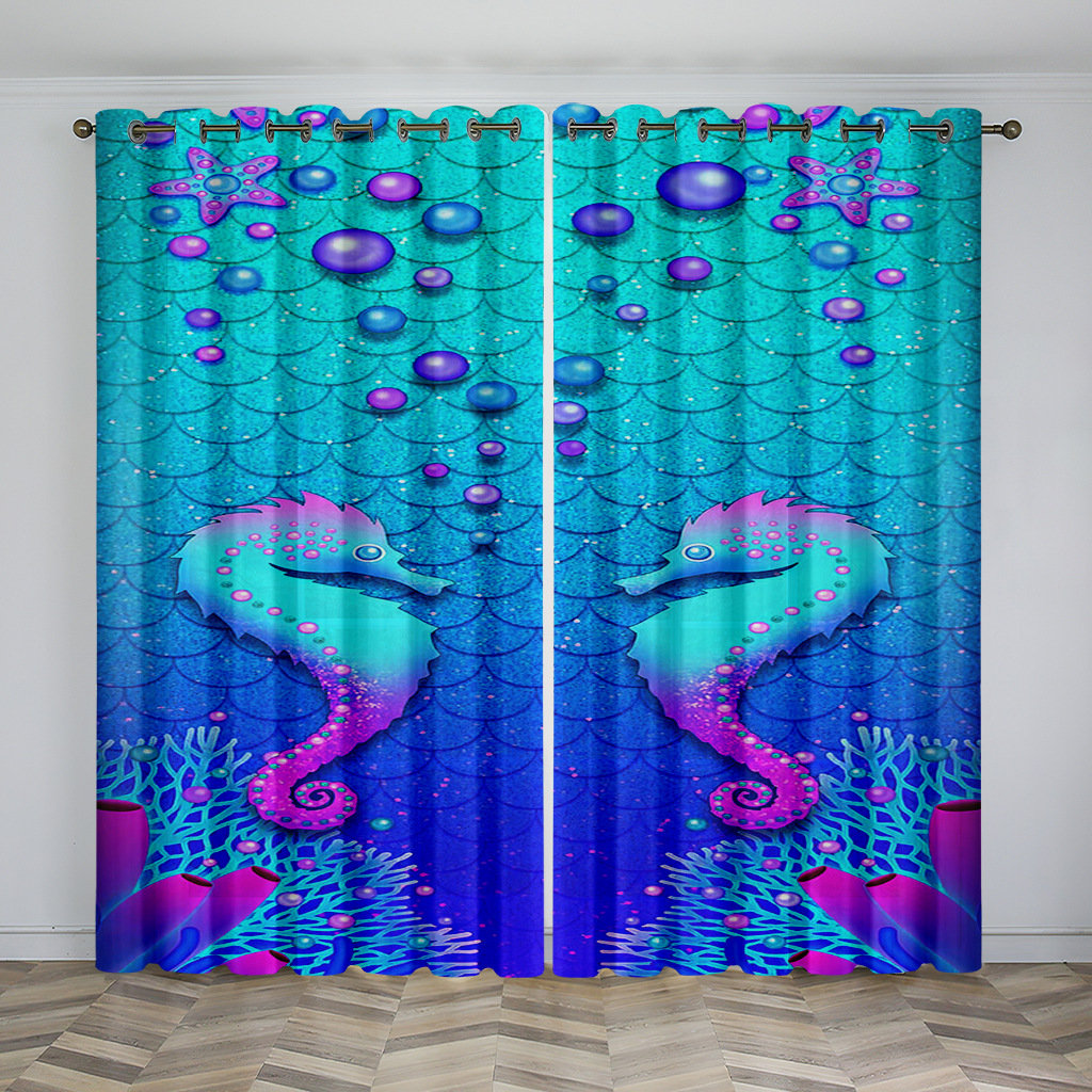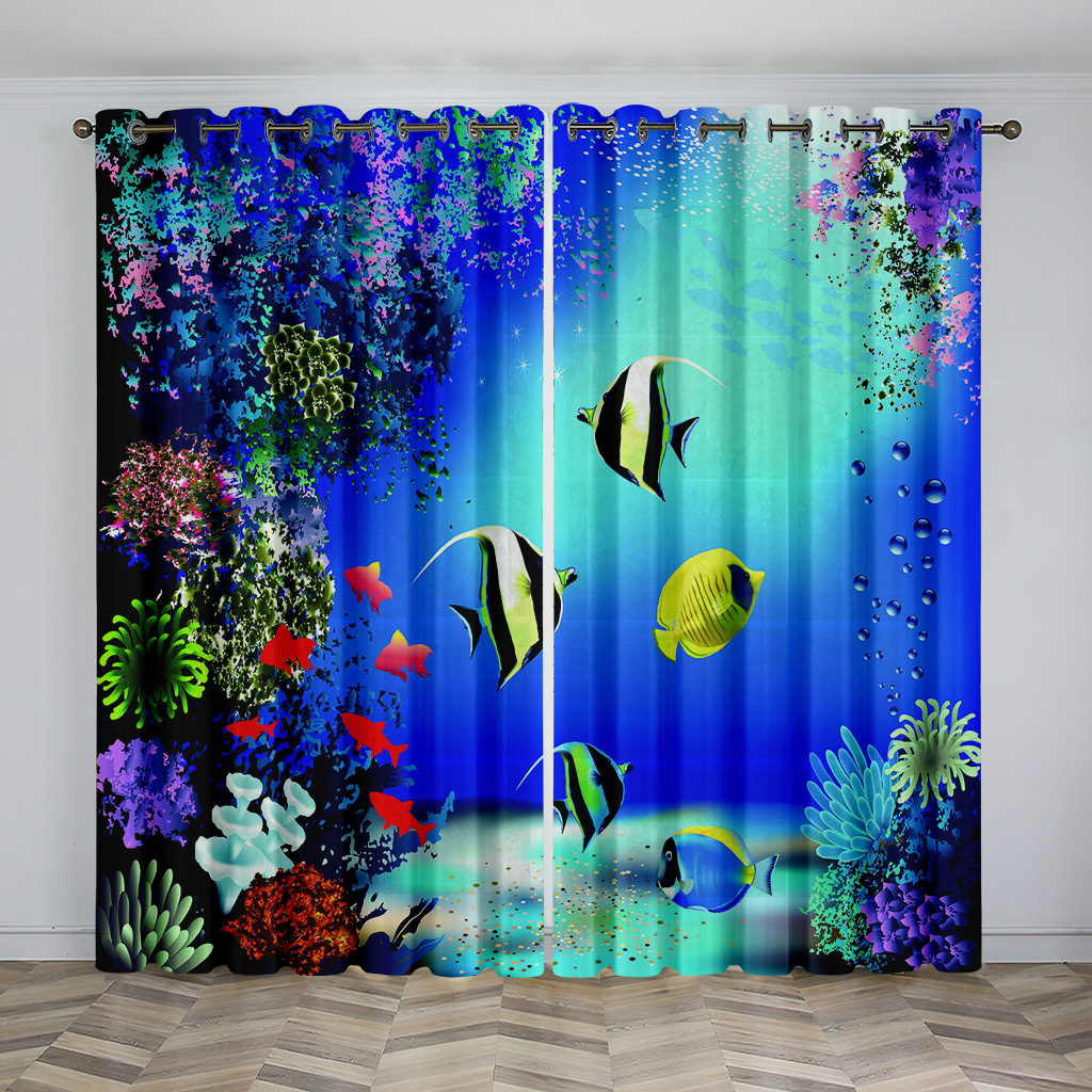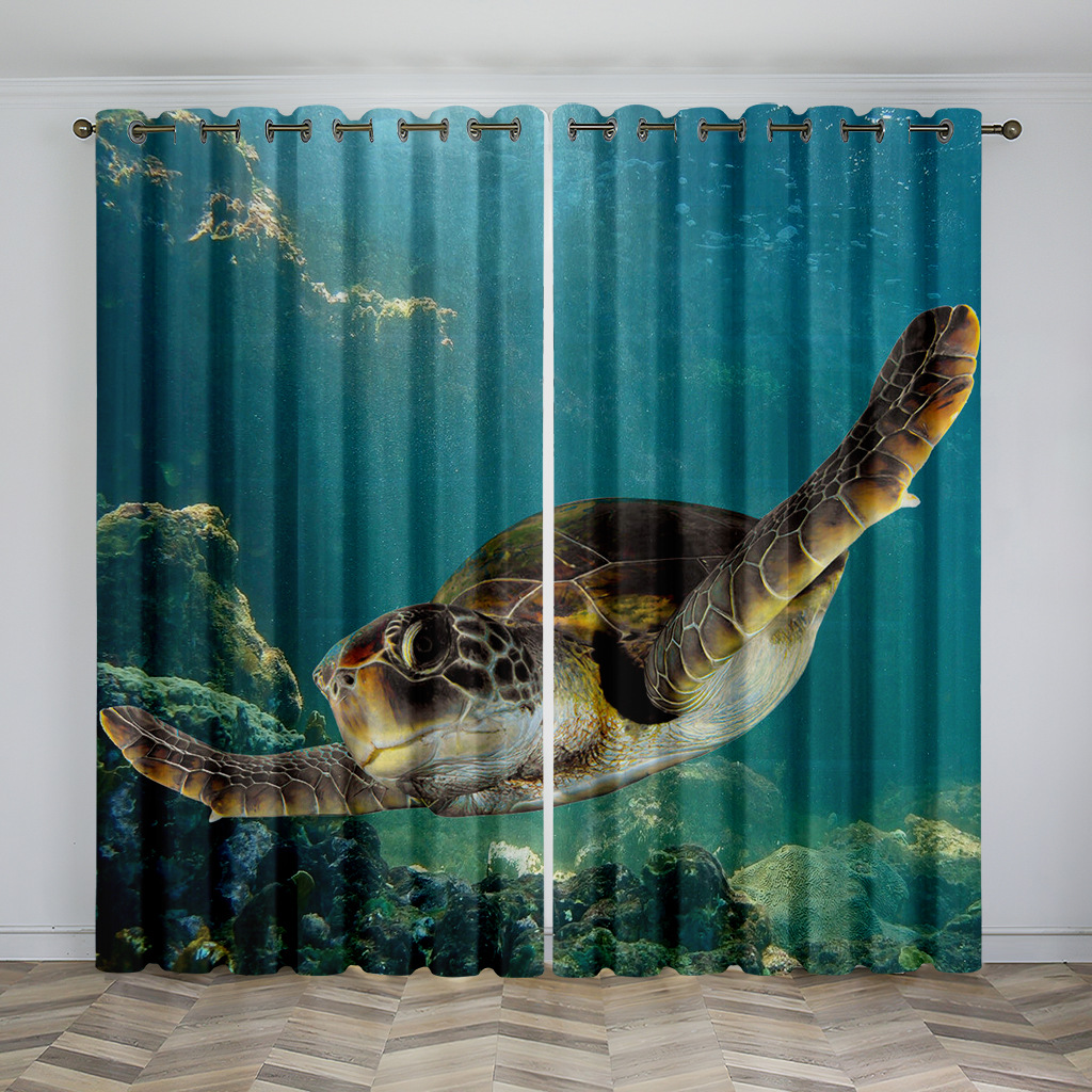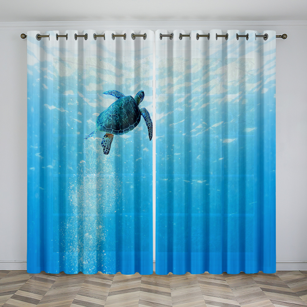마법의 수중 세계 돌고래 거북이 산호 디지털 인쇄 패턴 커튼 거실 발코니 국경 간 배송 사용자 정의
