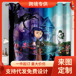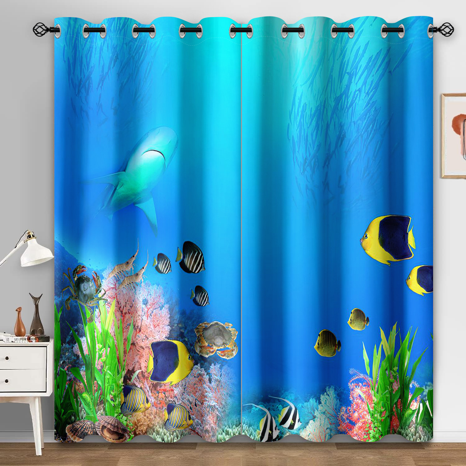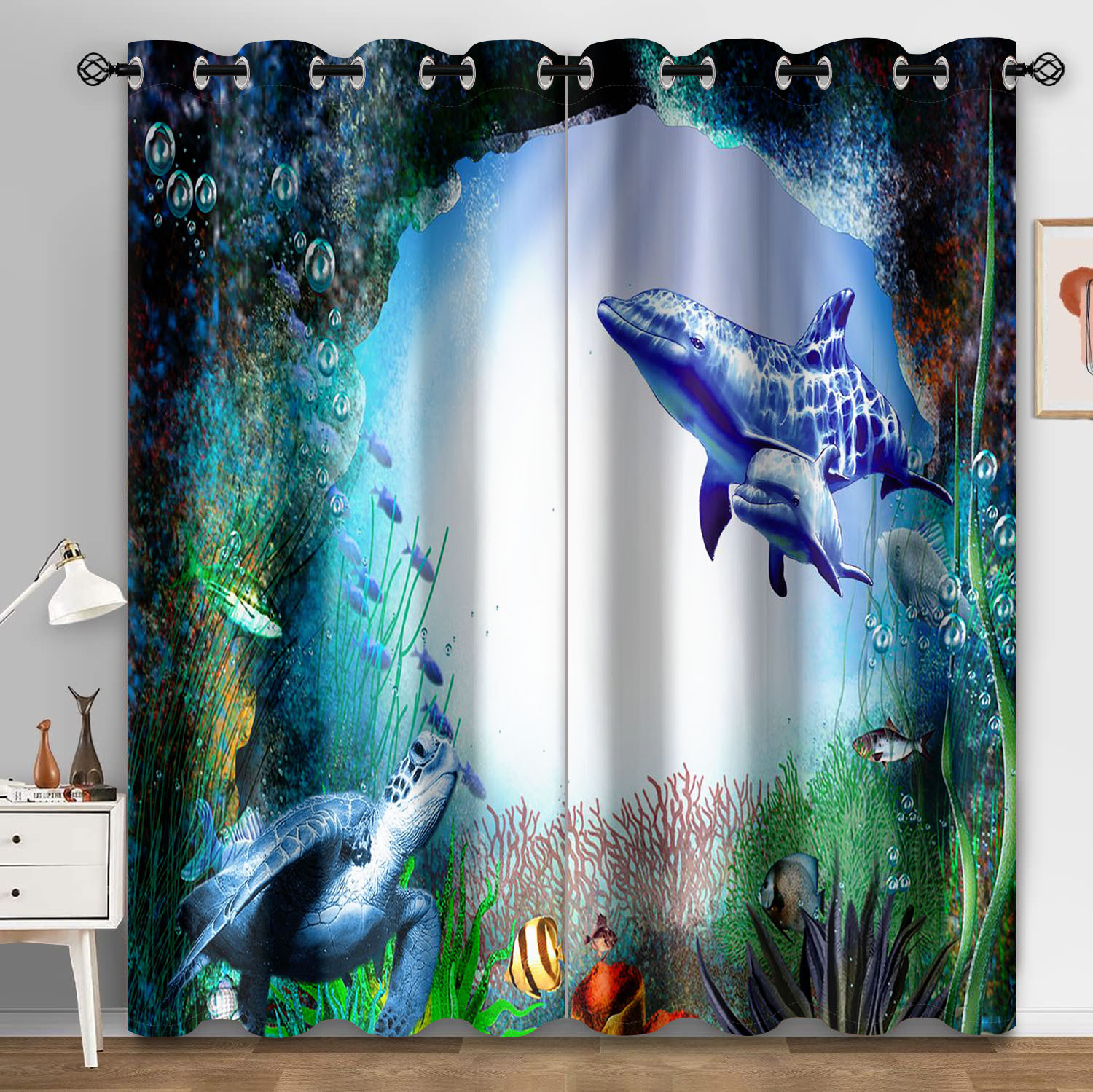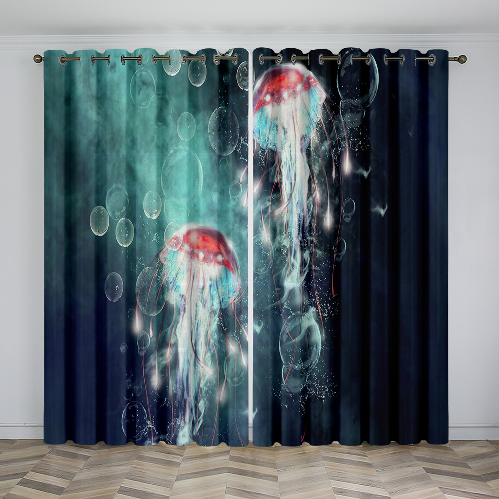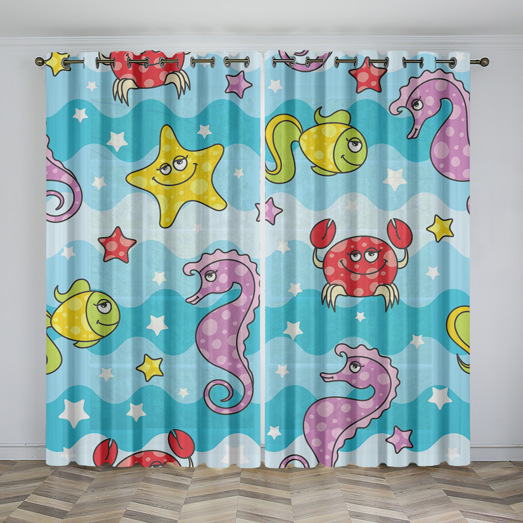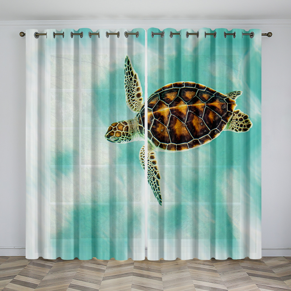 마법의 수중 세계 돌고래 거북이 산호 디지털 인쇄 패턴 커튼 거실 발코니 국경 간 배송 사용자 정의