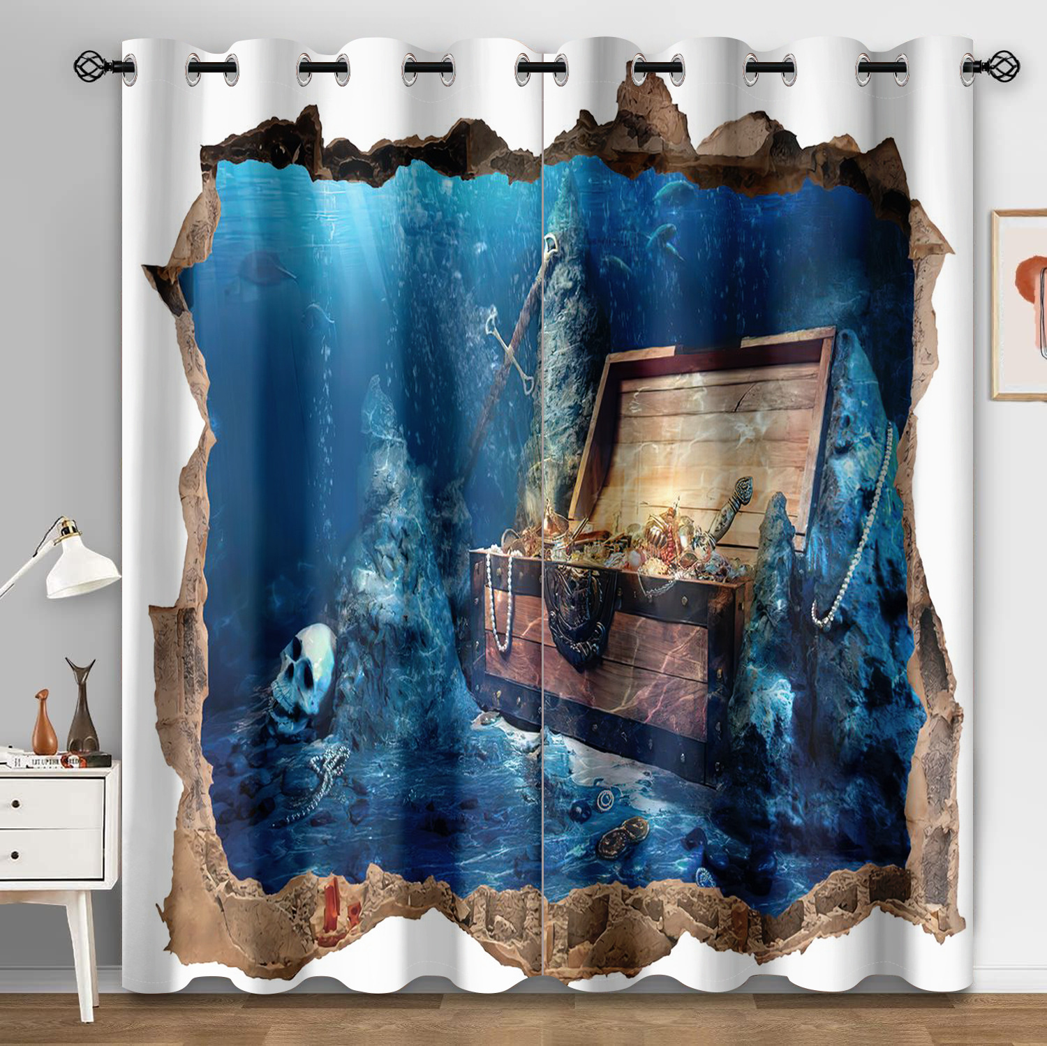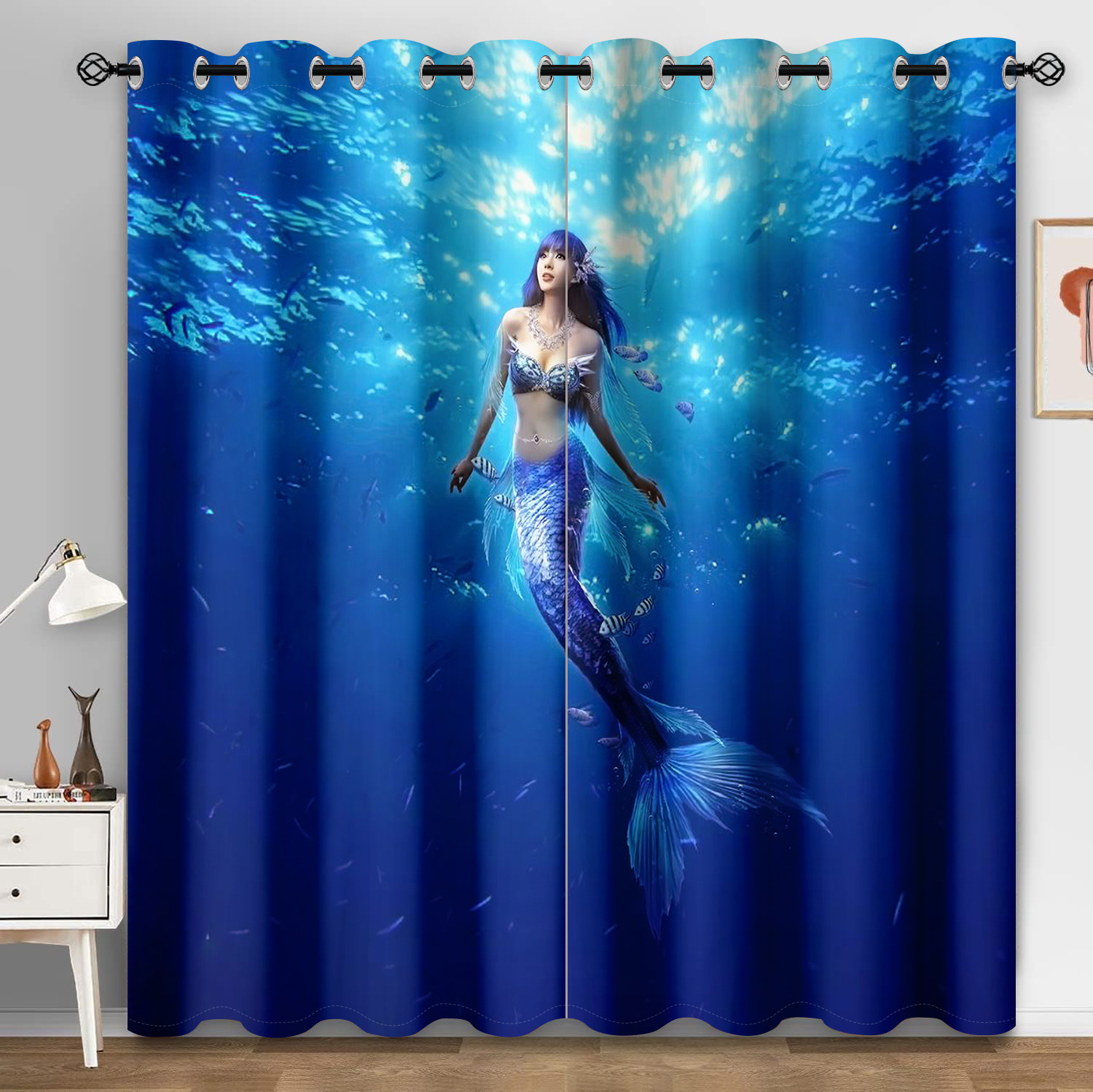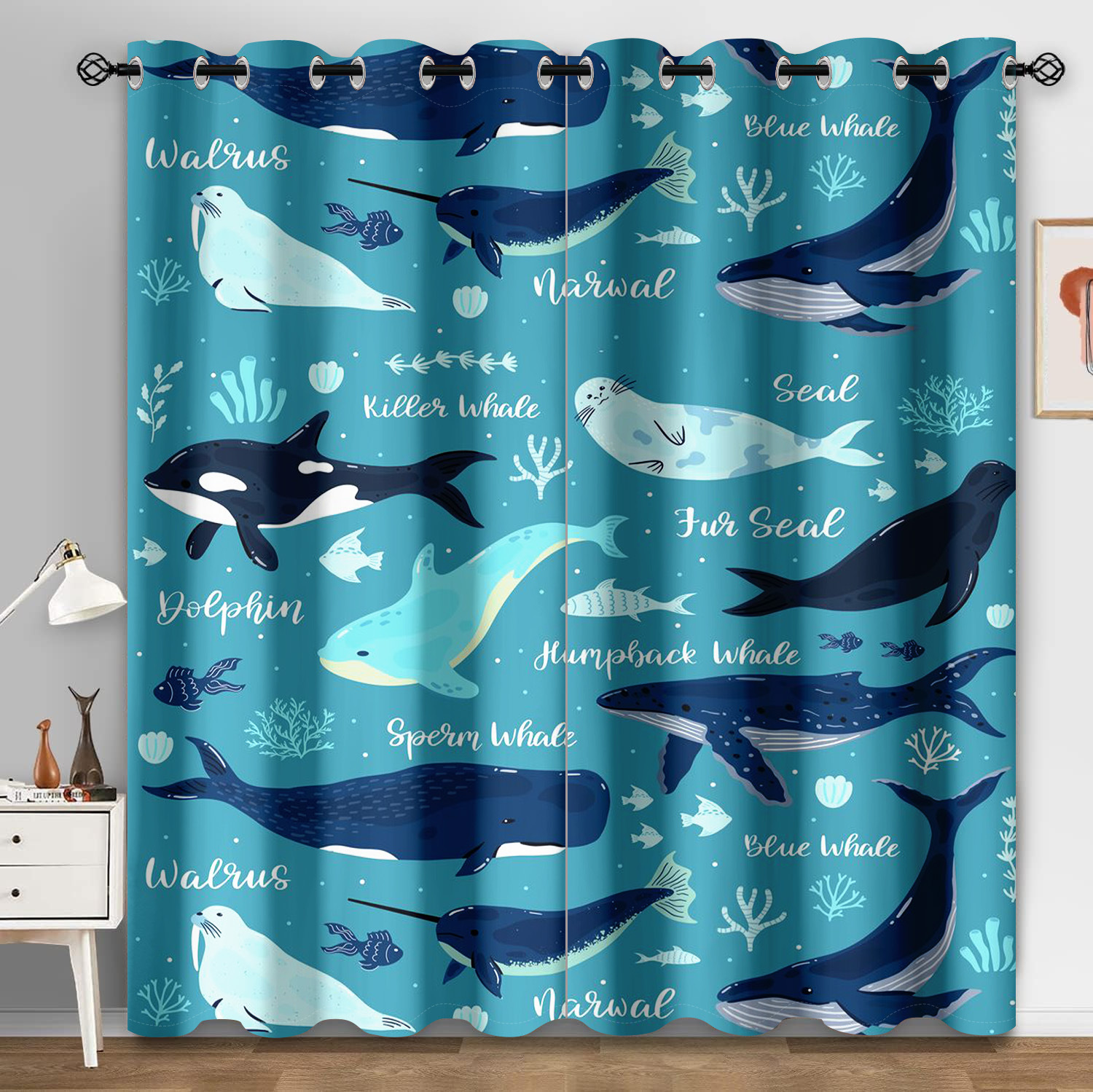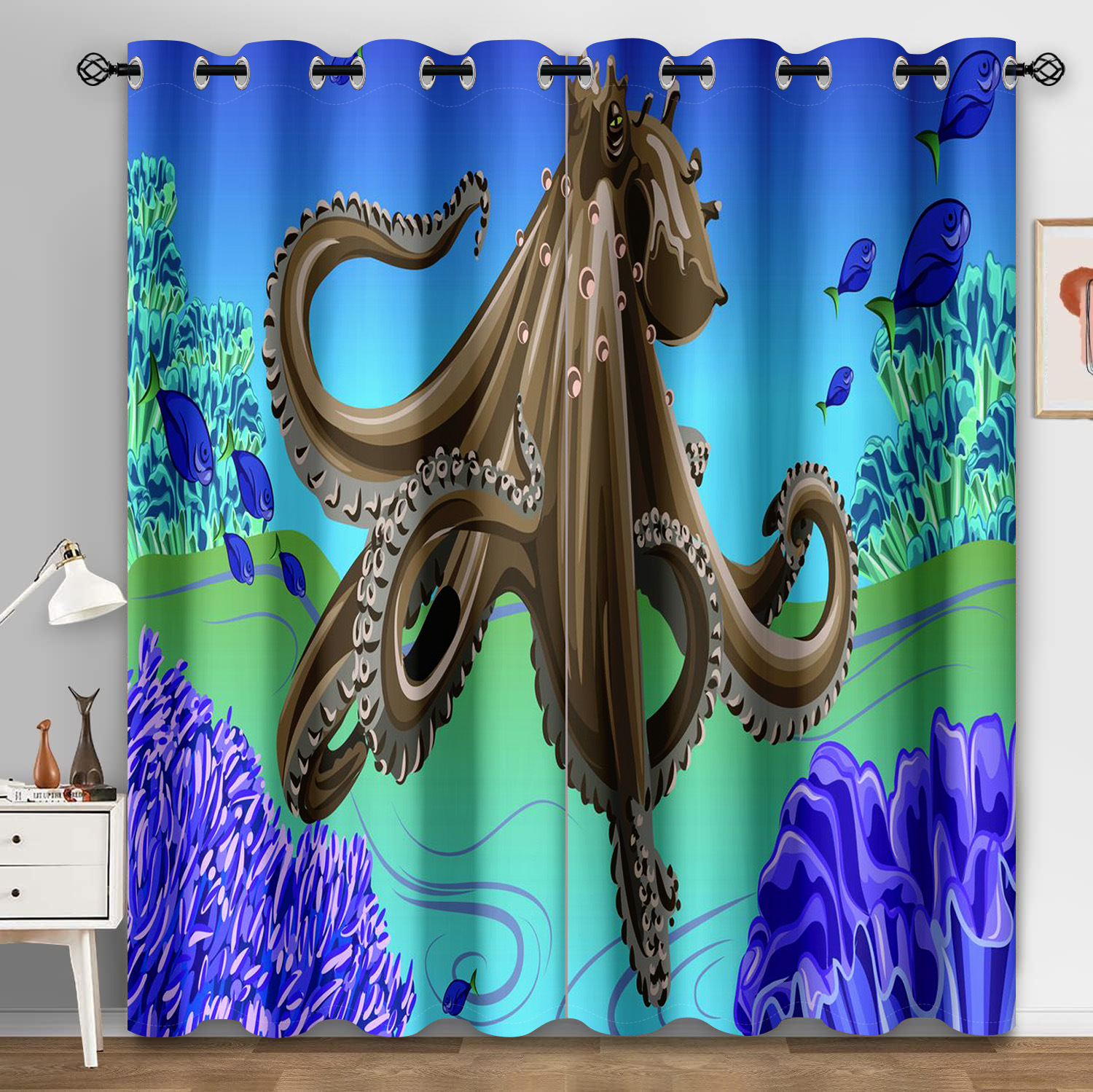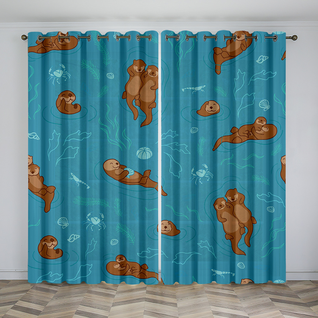 마법의 수중 세계 돌고래 거북이 산호 디지털 인쇄 패턴 커튼 거실 발코니 국경 간 배송 사용자 정의