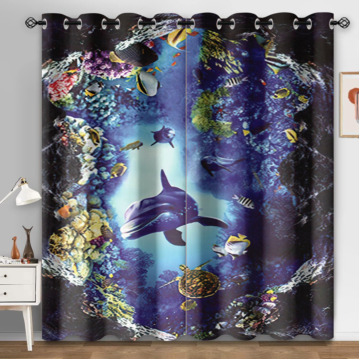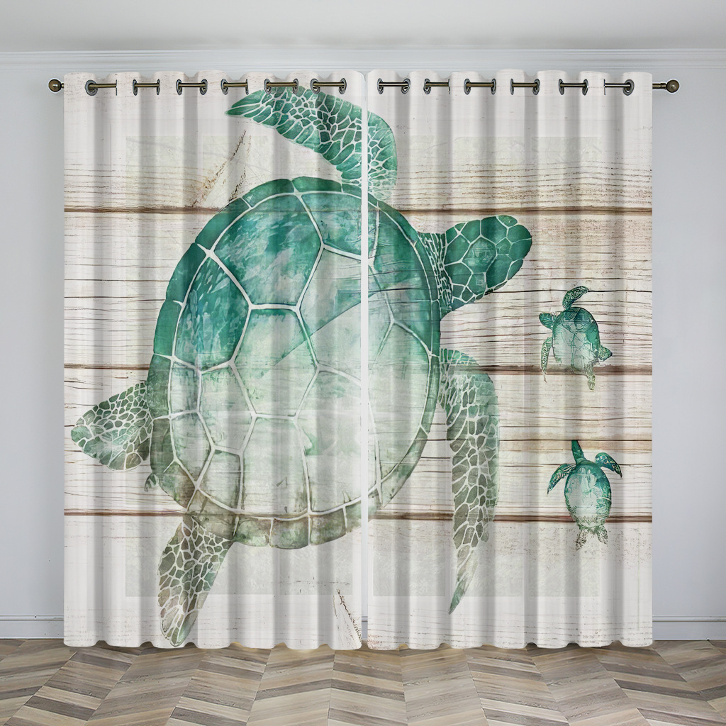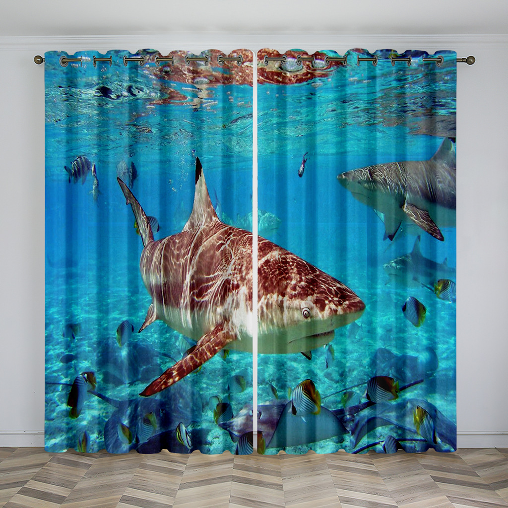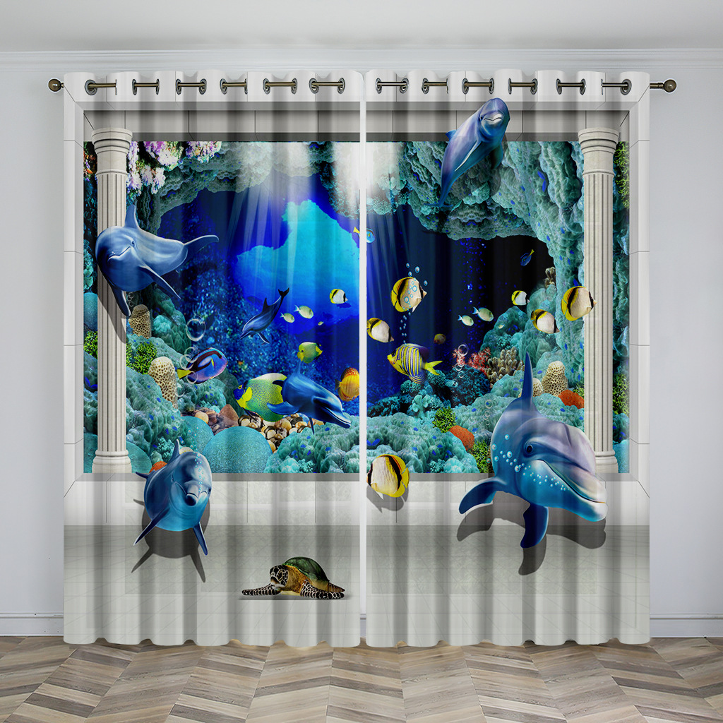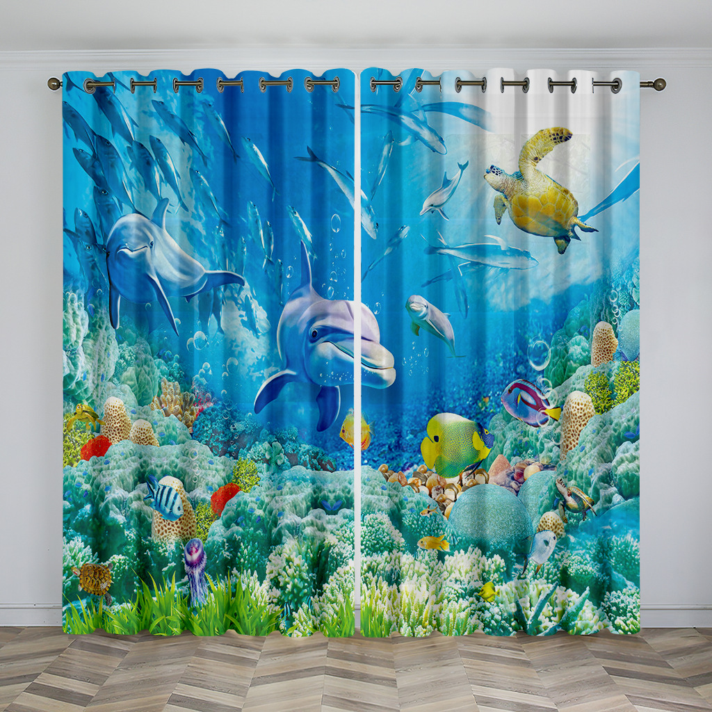 마법의 수중 세계 돌고래 거북이 산호 디지털 인쇄 패턴 커튼 거실 발코니 국경 간 배송 사용자 정의스토어 가기