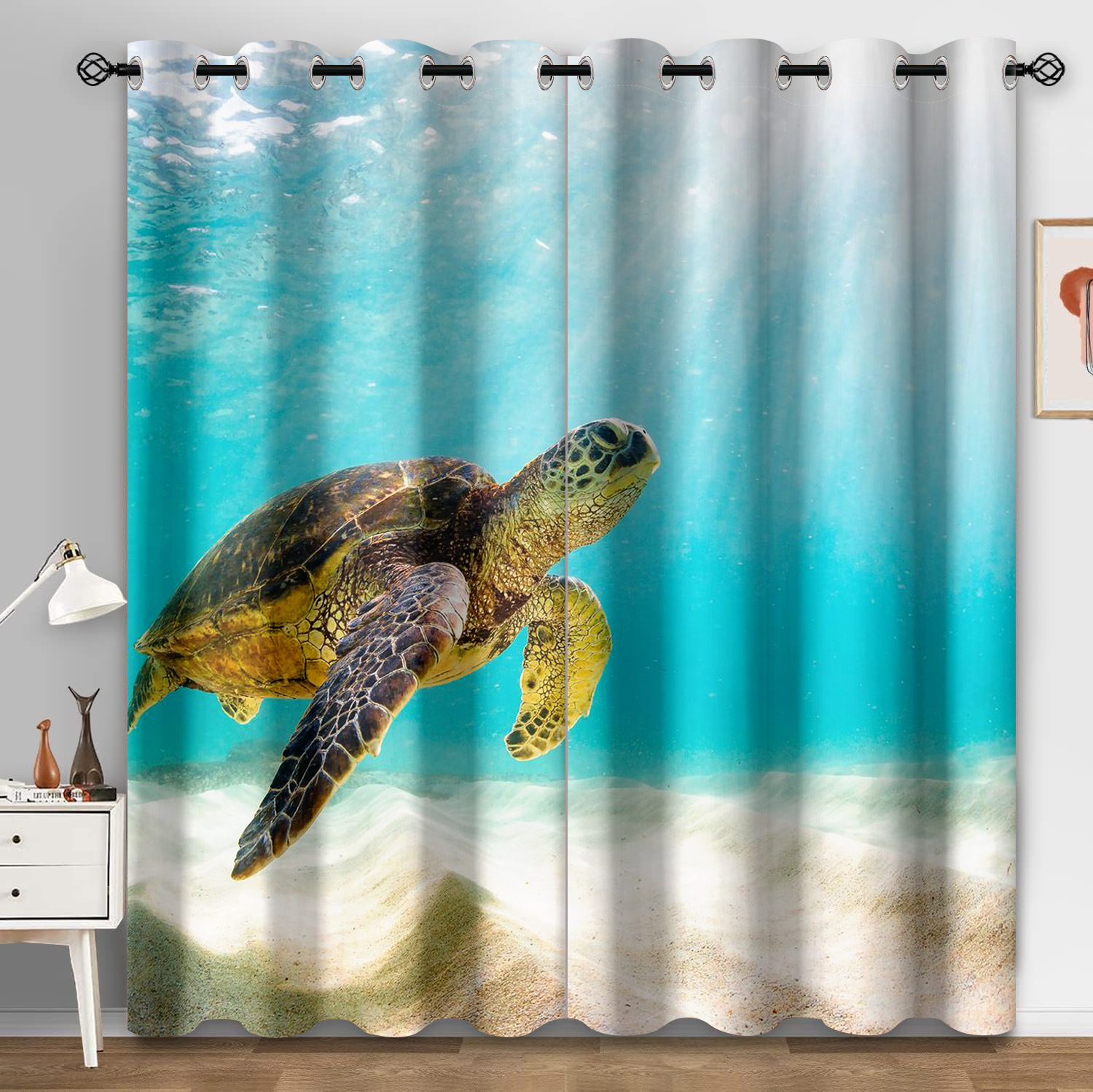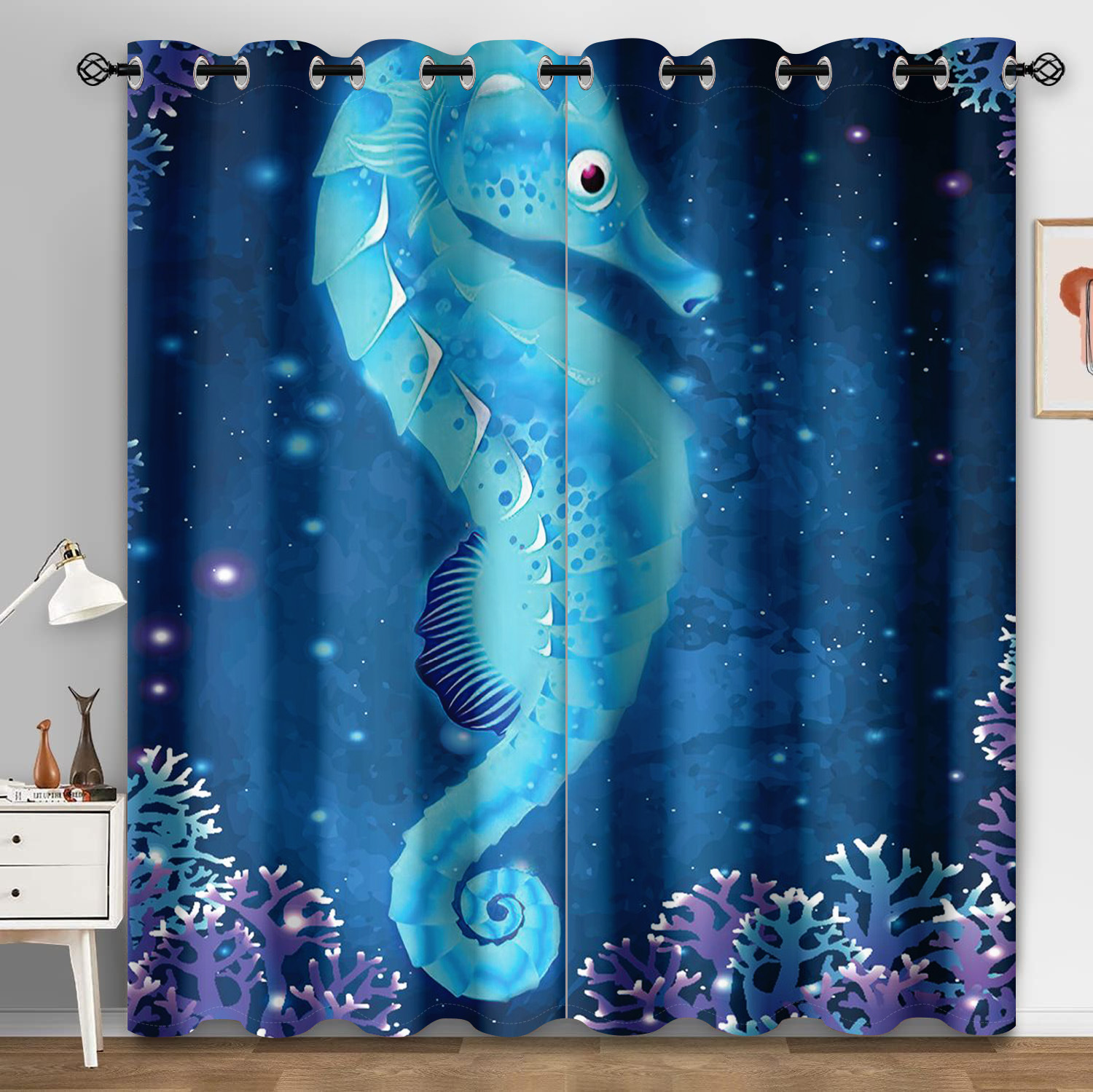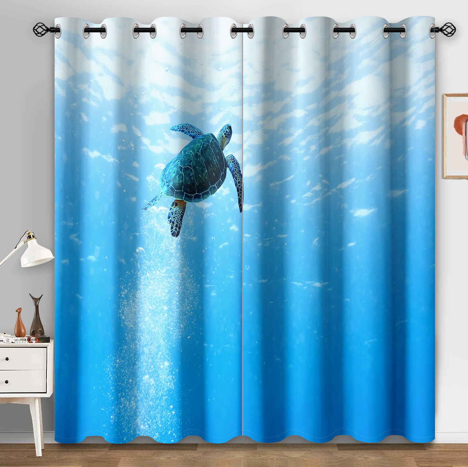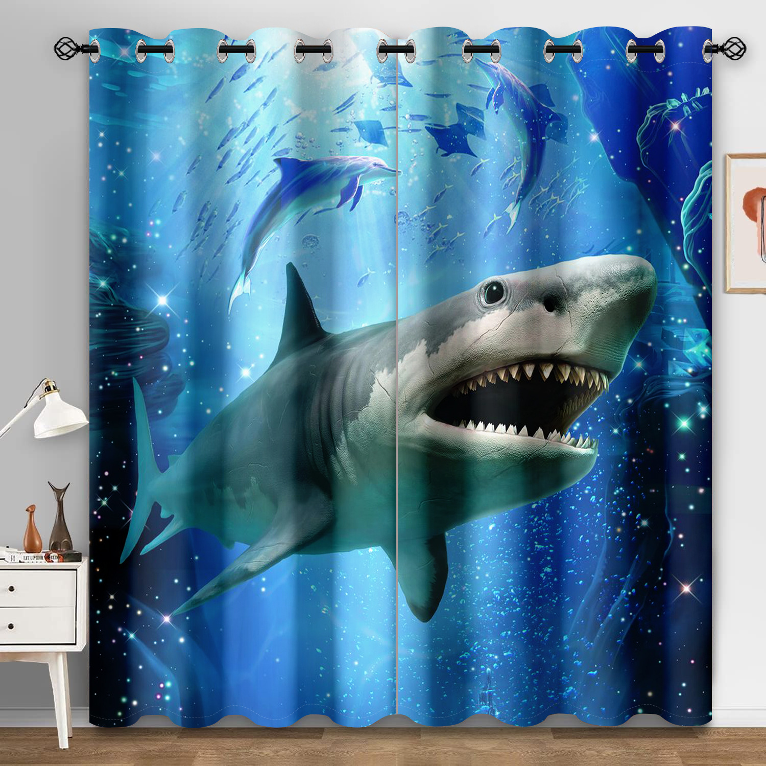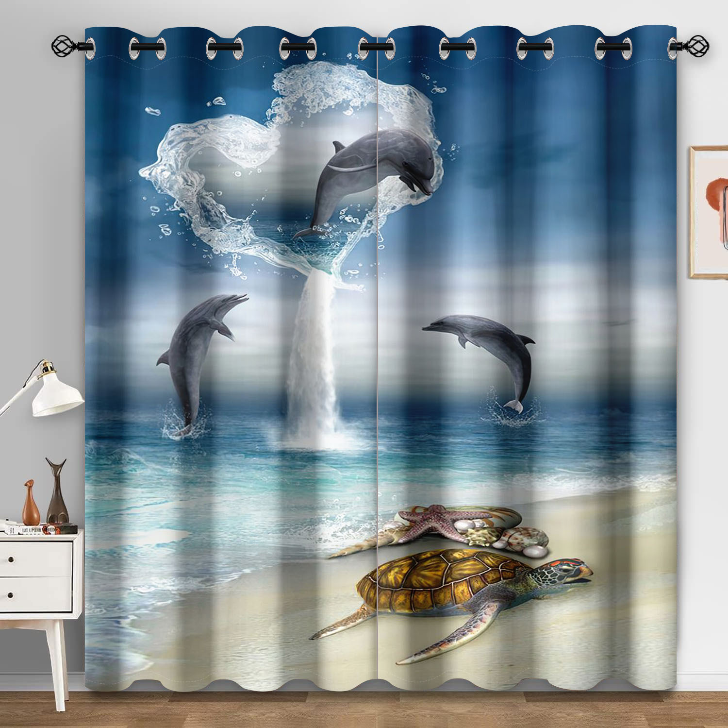 마법의 수중 세계 돌고래 거북이 산호 디지털 인쇄 패턴 커튼 거실 발코니 국경 간 배송 사용자 정의스토어 가기