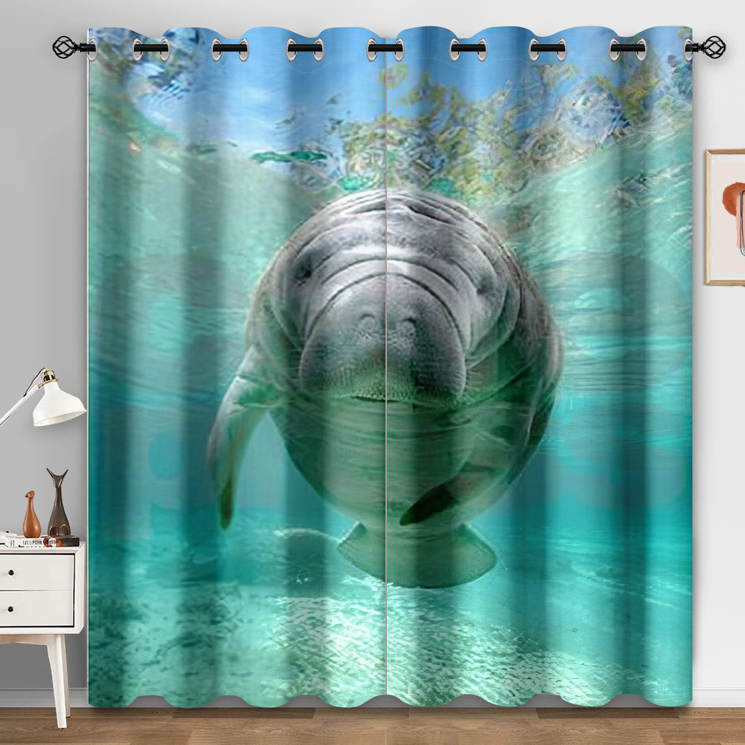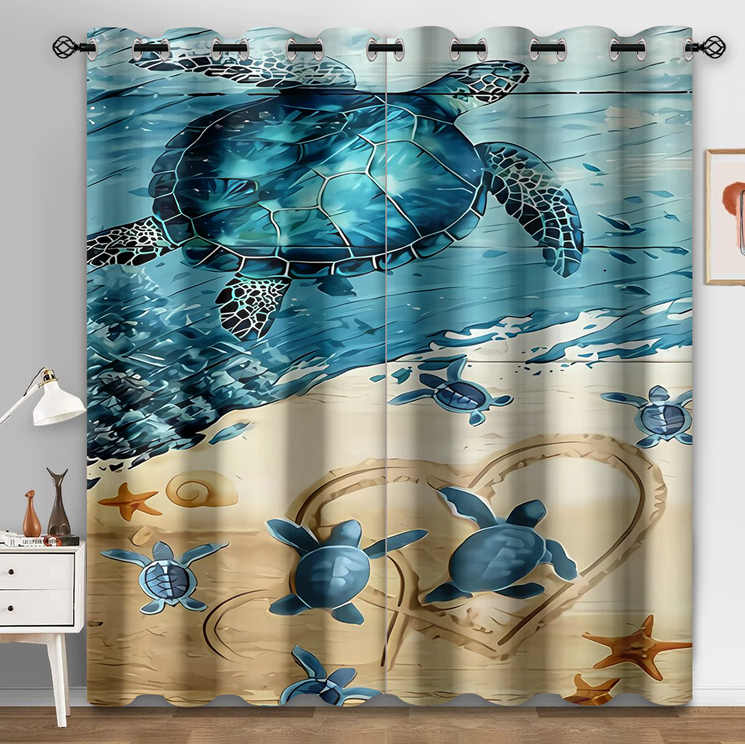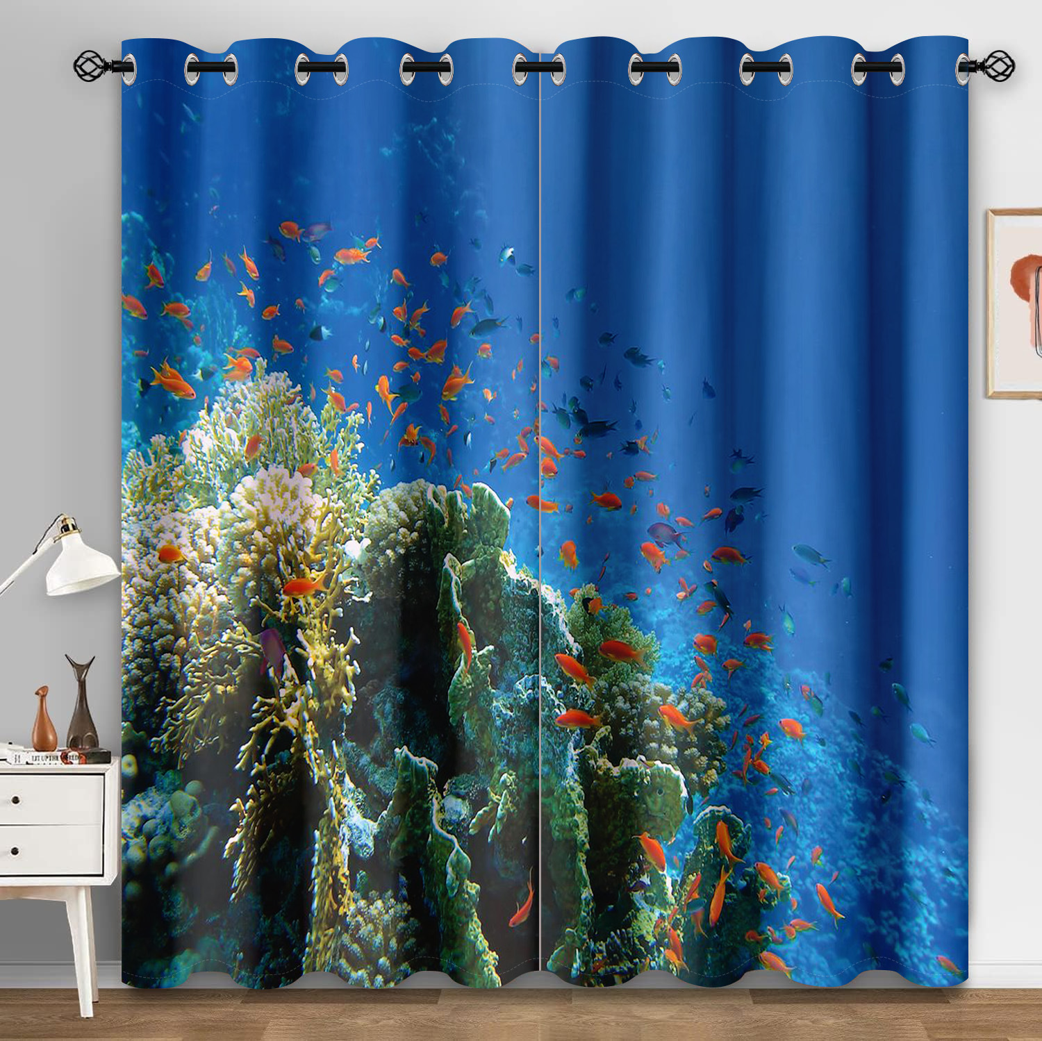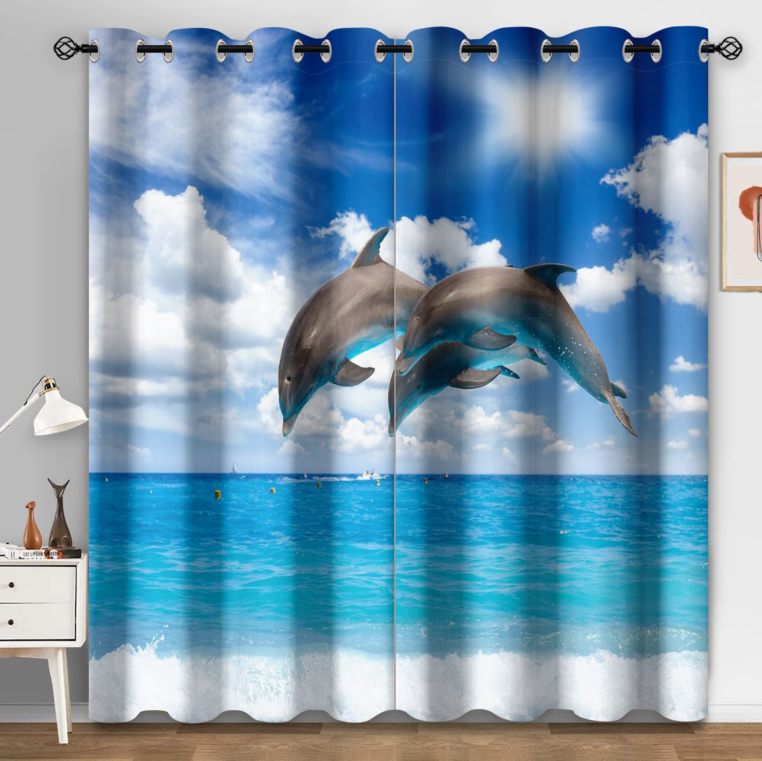마법의 수중 세계 돌고래 거북이 산호 디지털 인쇄 패턴 커튼 거실 발코니 국경 간 배송 사용자 정의스토어 가기