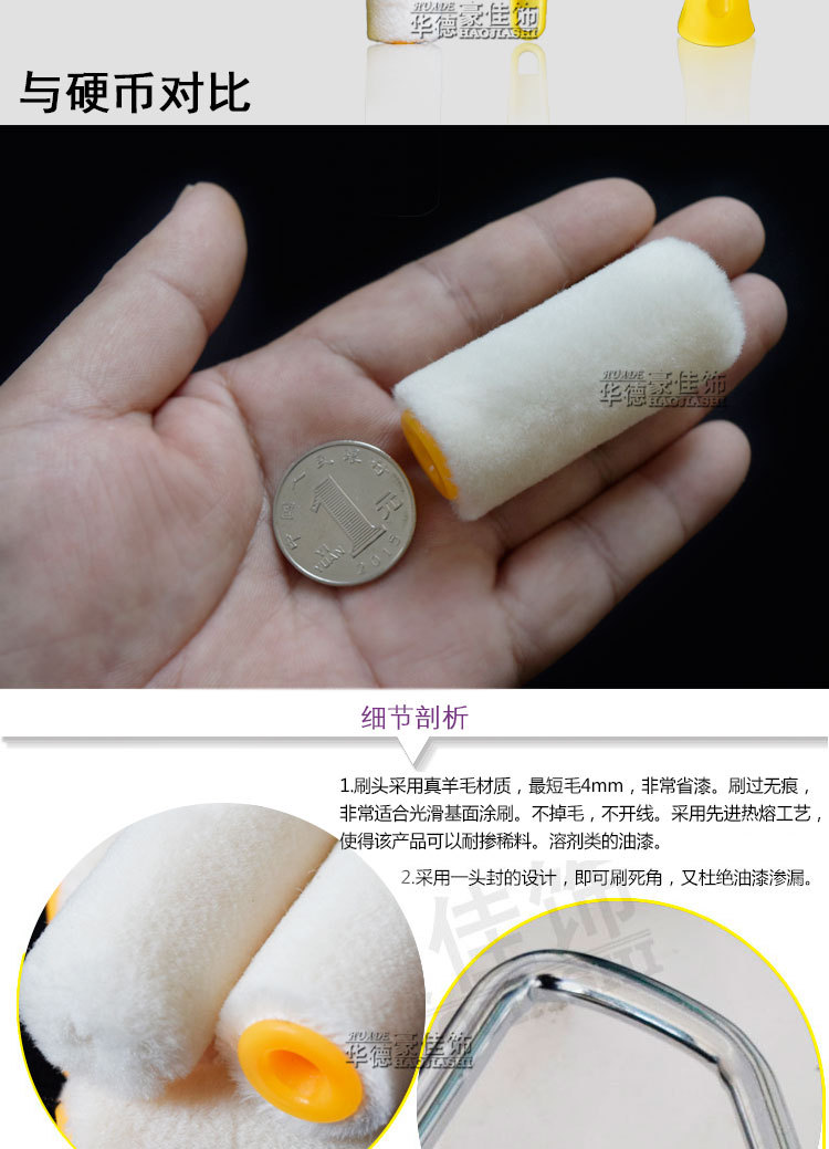 2 인치 울 작은 롤러 브러시 짧은 머리 미세 헤어 페인트 롤러 라텍스 페인트 수리 엄지 롤 코어 용제 방지스토어 가기
