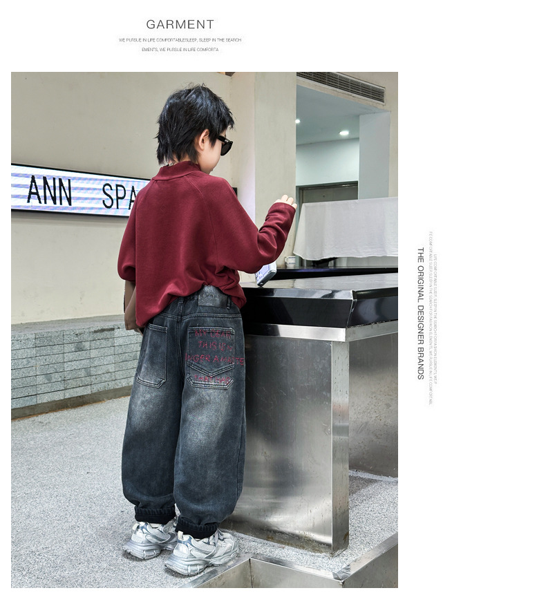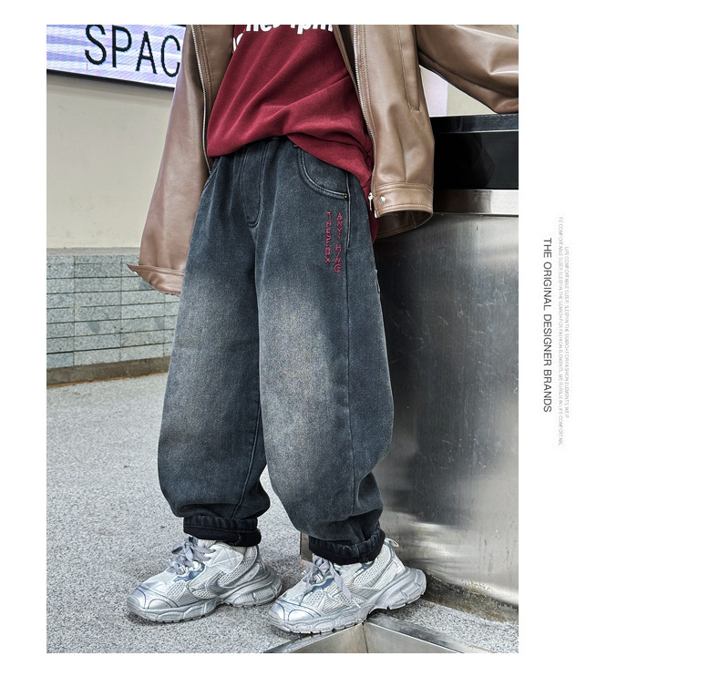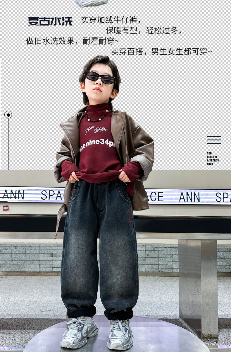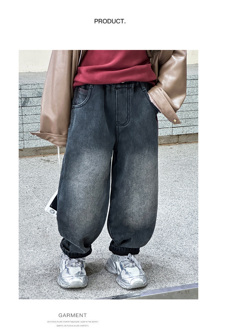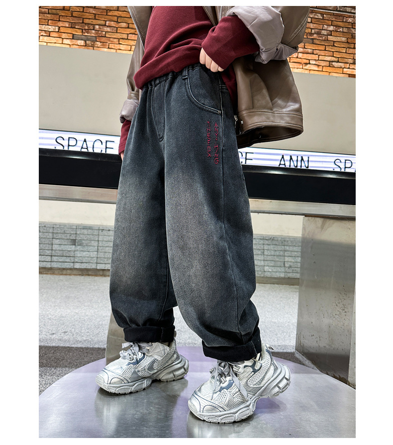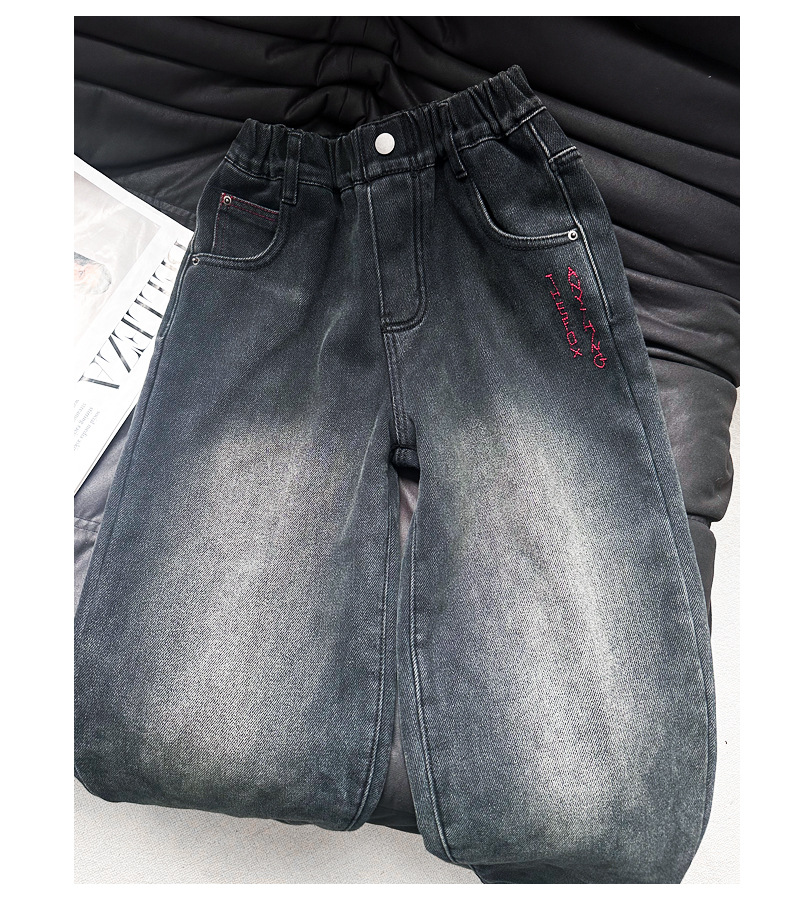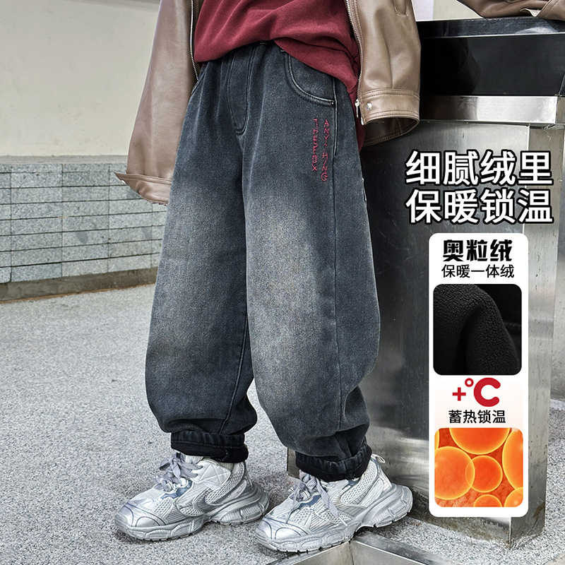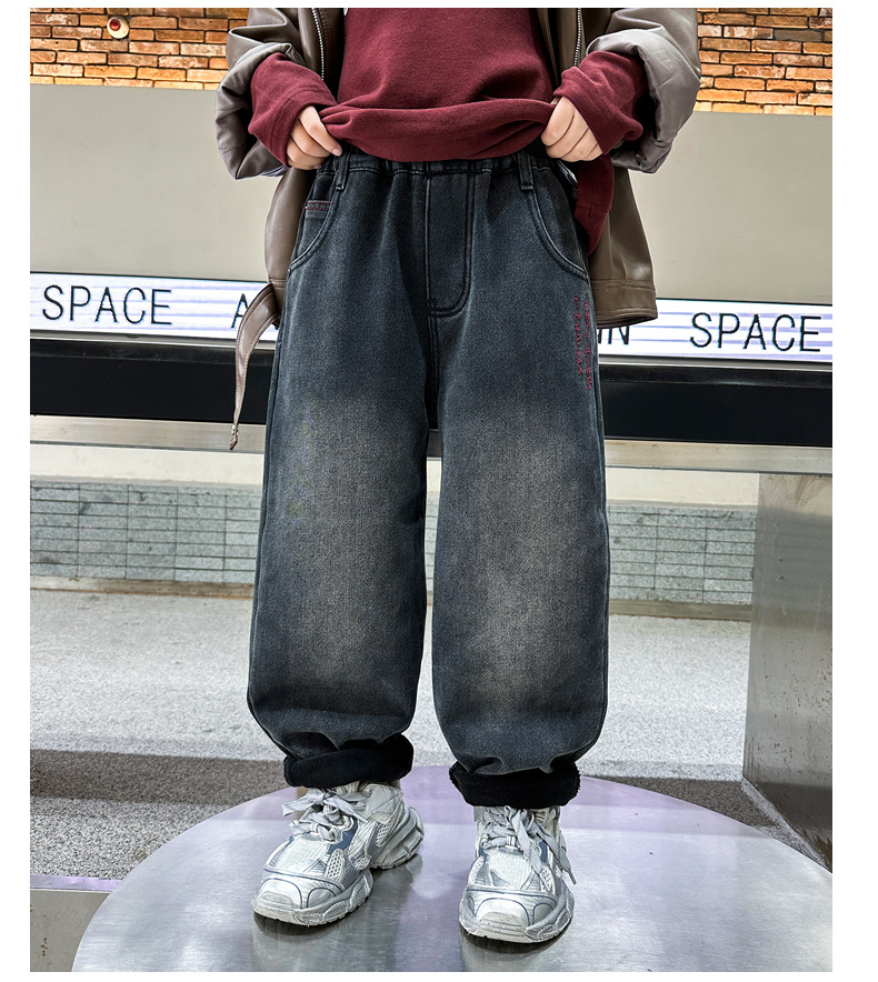 아동복 기모 바지 2024 년 가을과 겨울 새로운 도착 데님 중 · 빅 보이스 겨울옷 두꺼운 겨울 트렌디스토어 가기