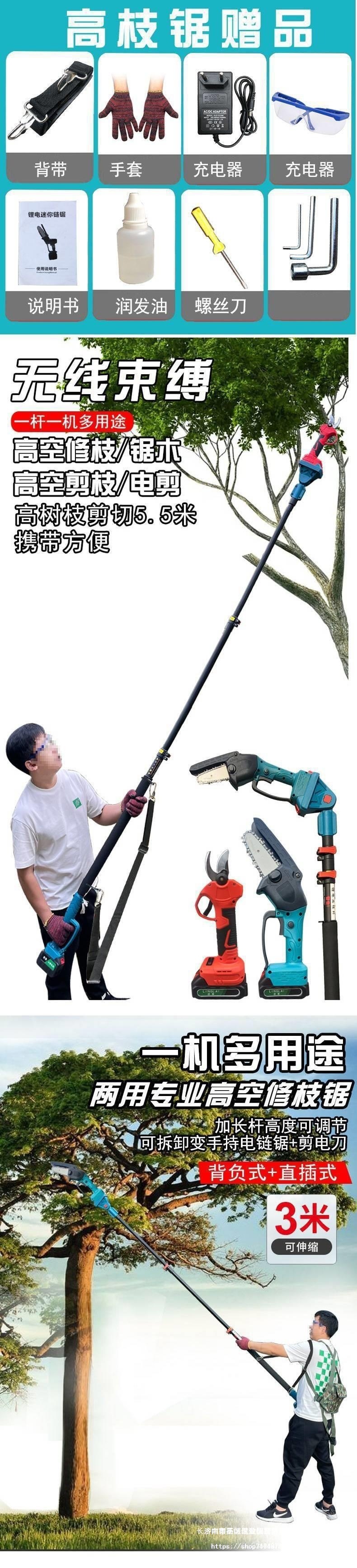 슈퍼 긴 고고도 전기 톱 나무 전기 보고 충전식 휴대용 로깅 톱 높은 지점 망원경 리튬 전기 톱