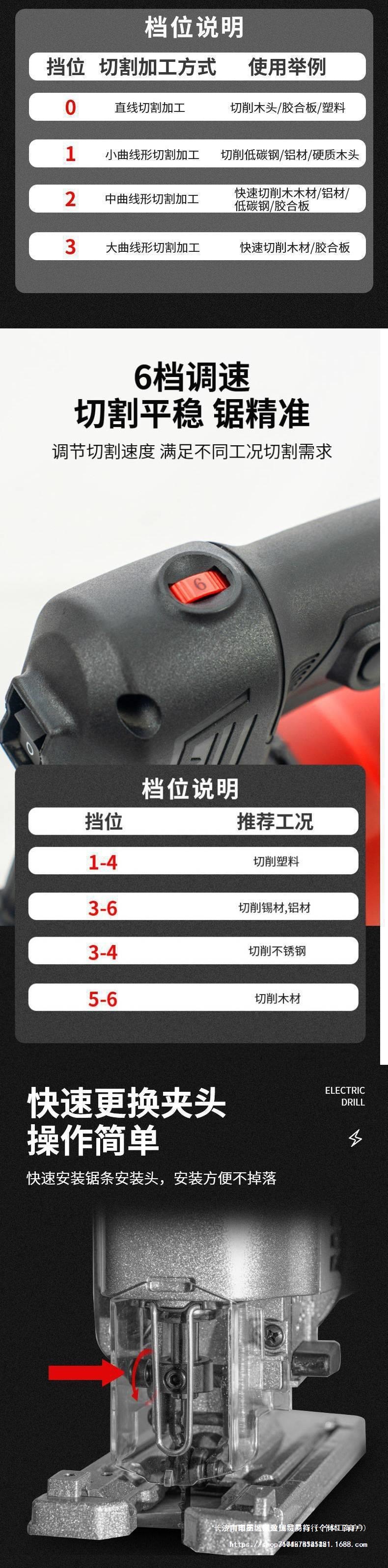 • 750W+6단 속도 조절-75 금속 톱날*10+75 목공 톱날*10