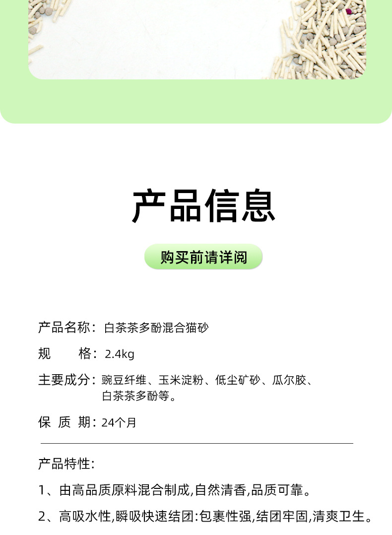 • [혼합 고양이 모래] 심플 코어 백차 두부 혼합 고양이 모래 2.4kg*1 봉지