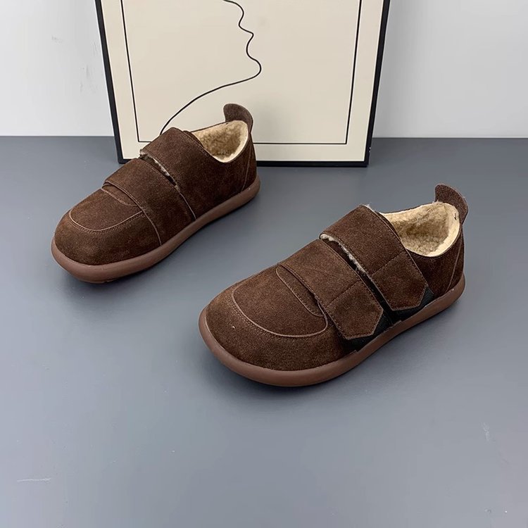 부드러운 가죽 버전 레트로 부드러운 밑바닥 Birkenth 신발 여성의 2024 겨울 새 라운드 발가락 벨크로 기모 따뜻한 캐주얼 소프트 슈즈
