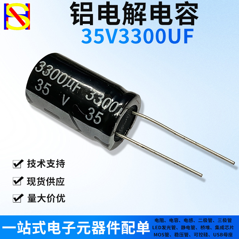 一站式电子元器件BOM配单35V3300UF 16X25mm直插件铝电解电容器 短脚 切脚 编带 排带 剪脚