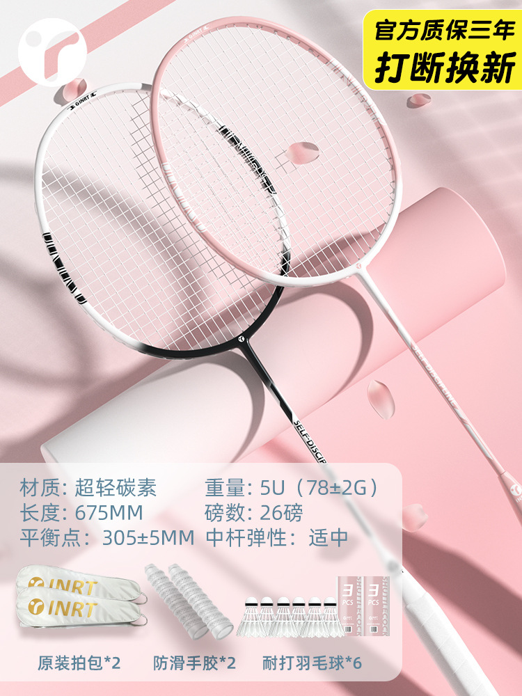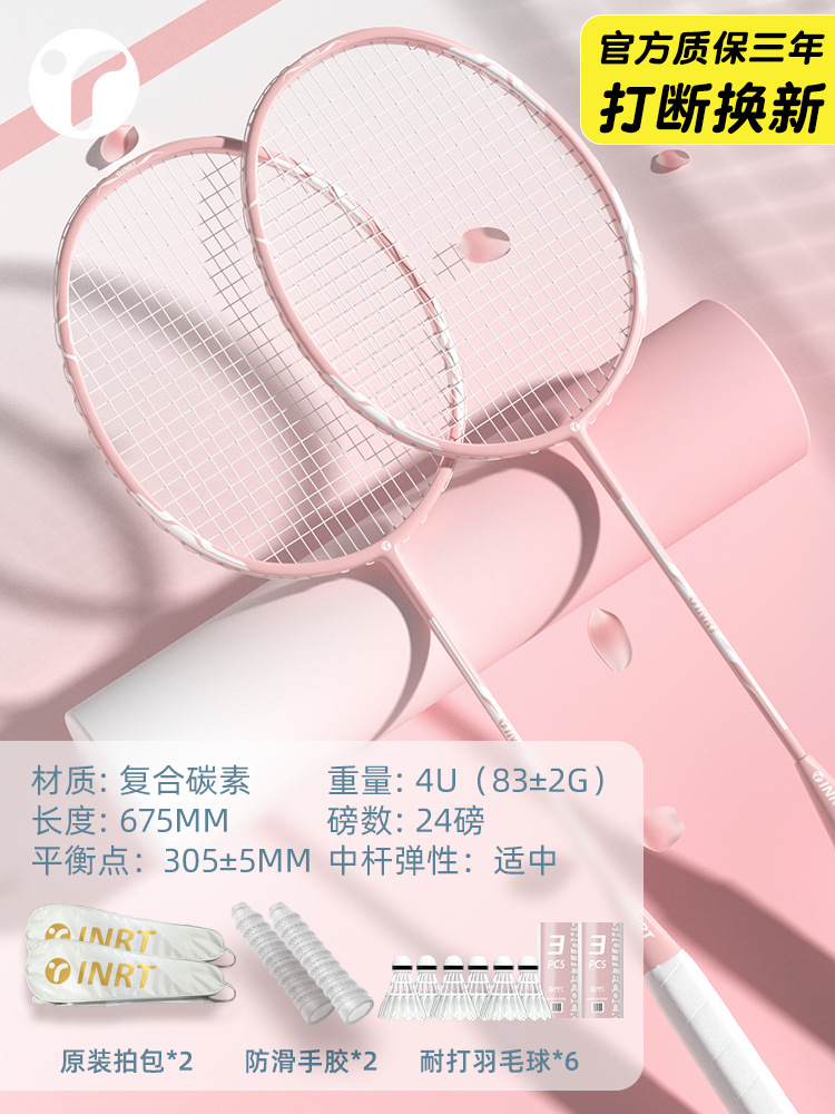 배드민턴 라켓 플래그십 스토어 싱글 및 더블 라켓 세트 전체 탄소 섬유 여성 초보자 전문 저항