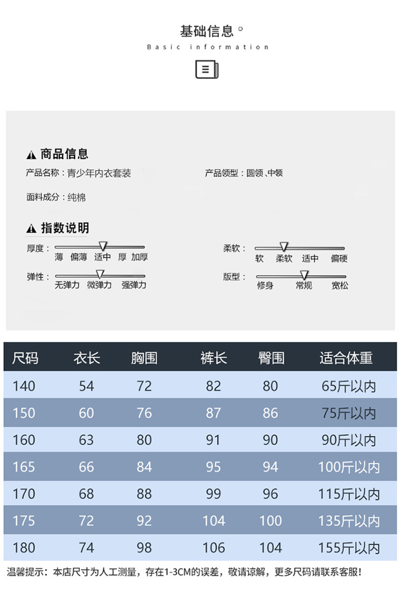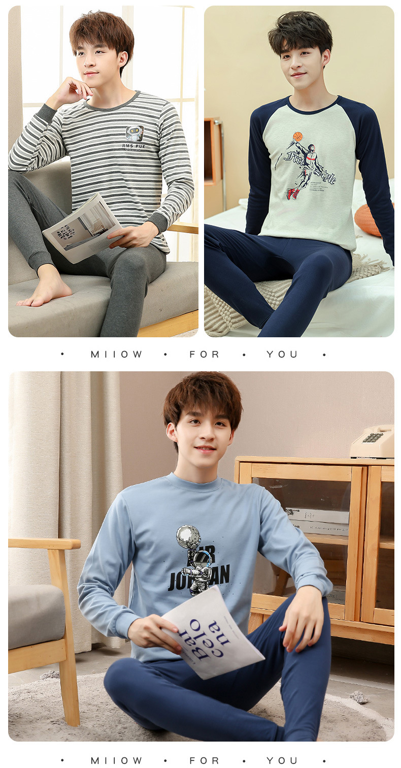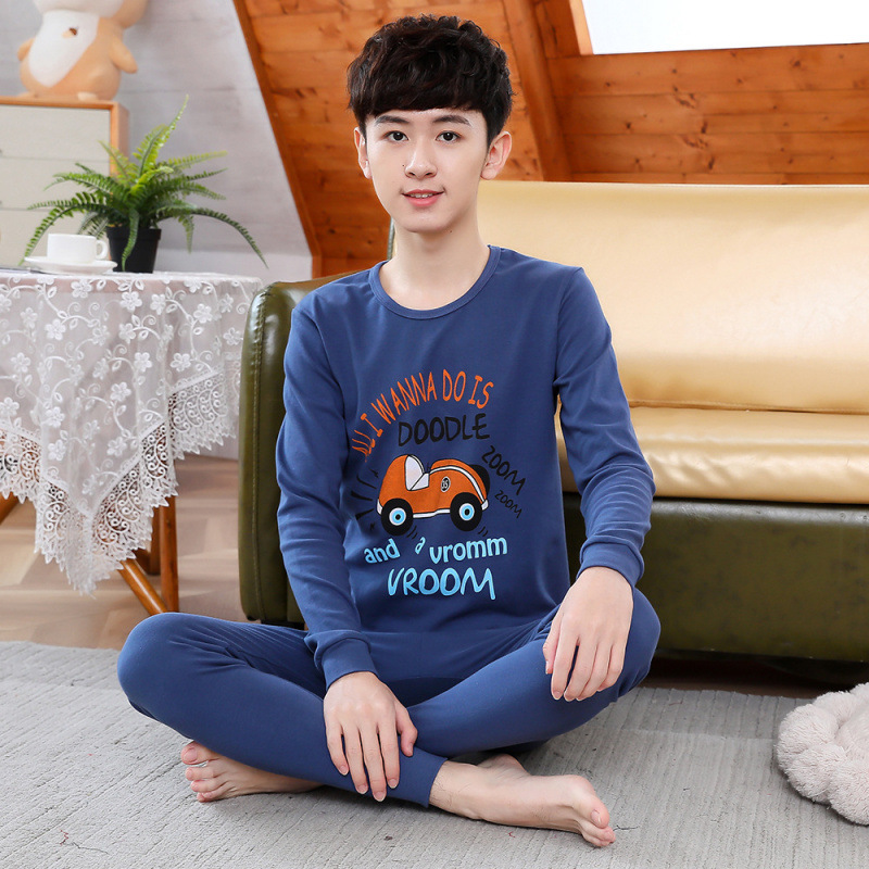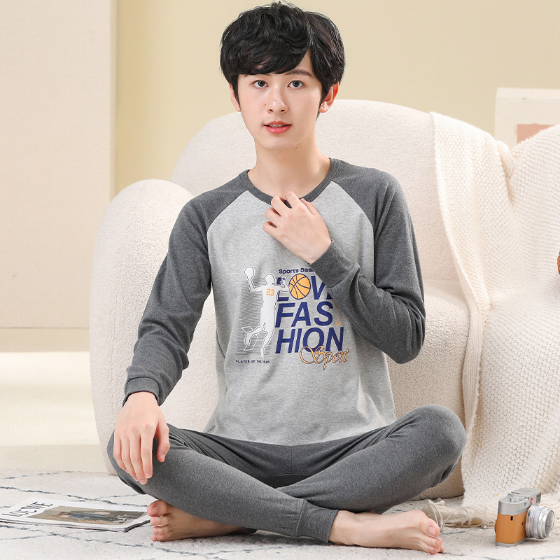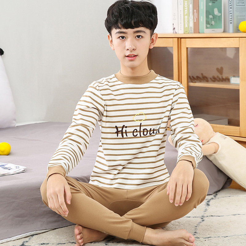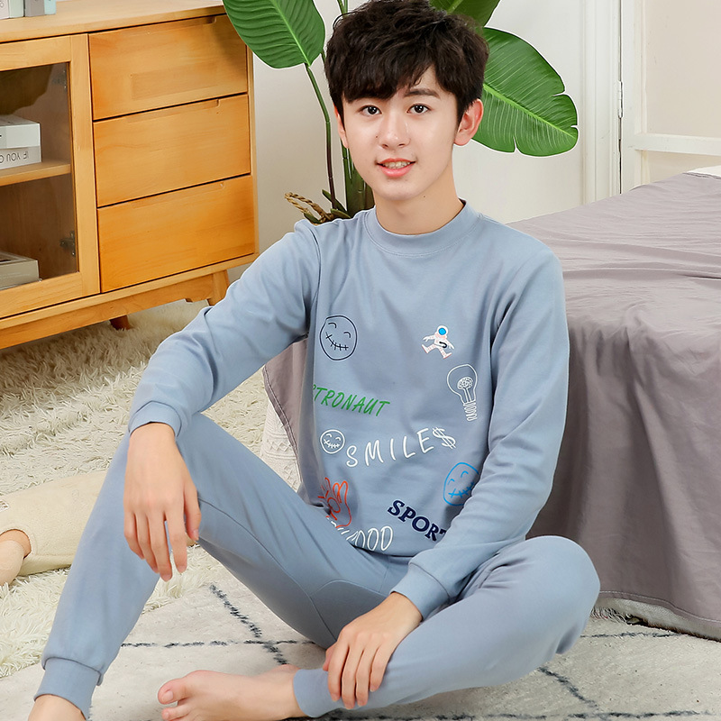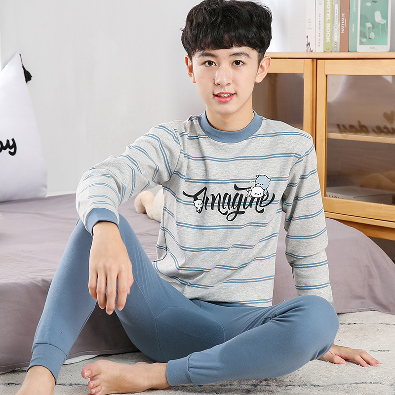 소년 가을 옷과 가을 바지 십대를위한 순수한면 열 속옷 세트 대학생베이스 면 스웨터 걸스 잠옷스토어 가기